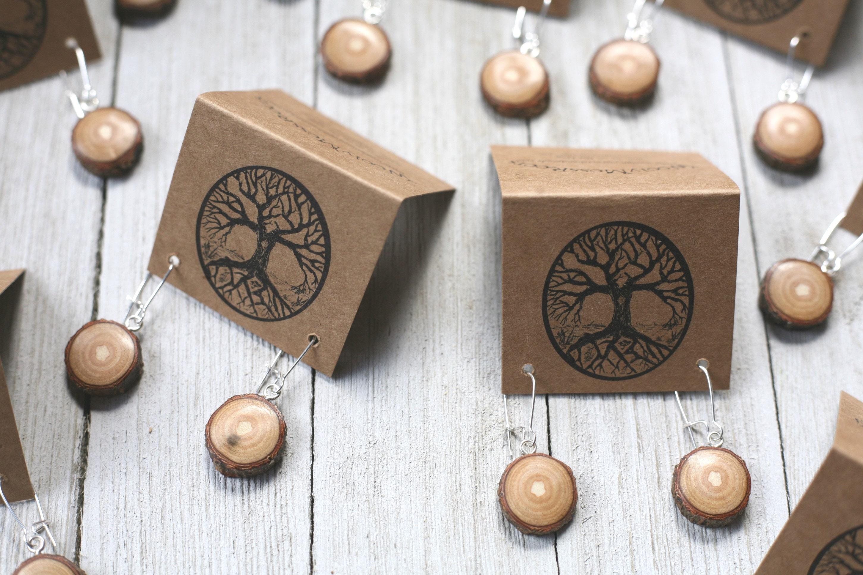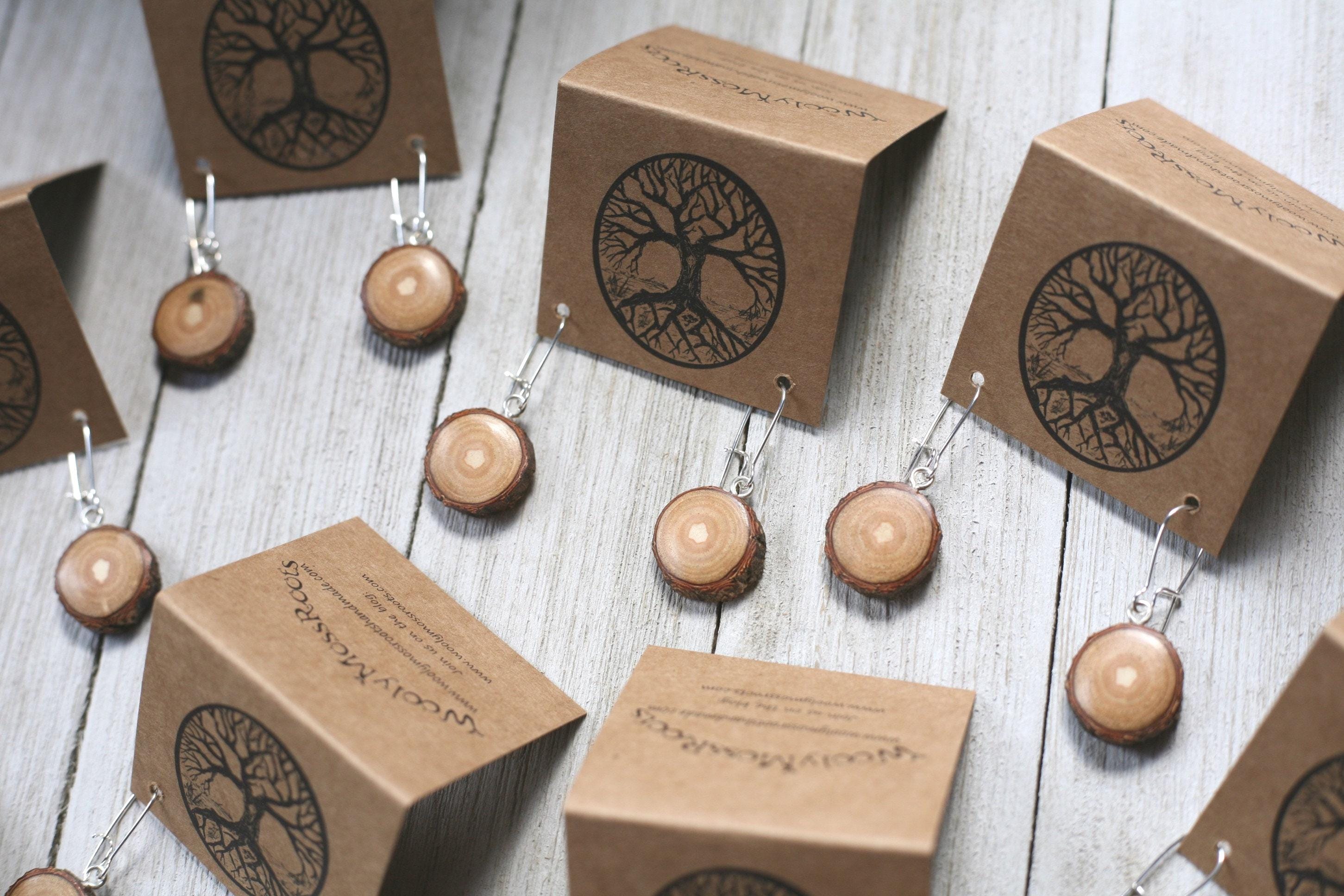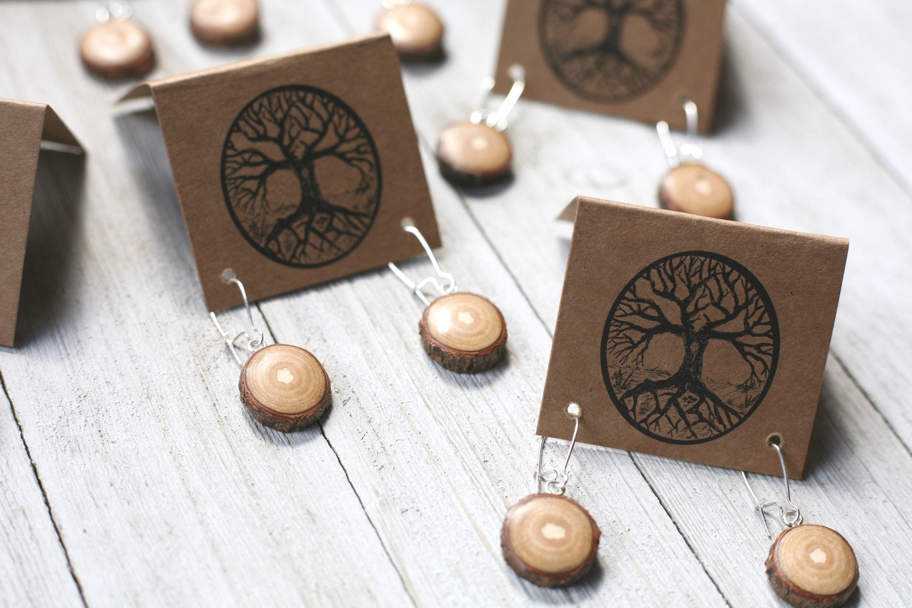 Our handmade earrings make wonderful gifts! These earrings were created by my husband Jeff in sassafras wood. I love the variety of colors in this wood, the textured bark around the edges, the rings of growth, and the bright spot in the center. He sands and polishes the earrings so smooth, you'll love the way they feel. All the sanding and polishing also brings out the beauty of the wood, and makes it glow. (They've gone through a process to help keep the bark on, more on that below.) These earrings are nice and lightweight and they come on silver plated ear wires.