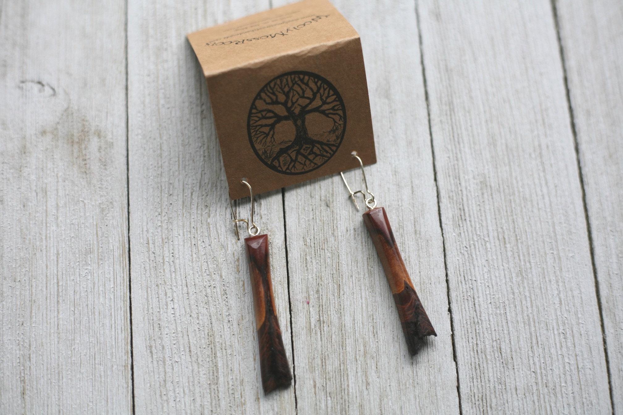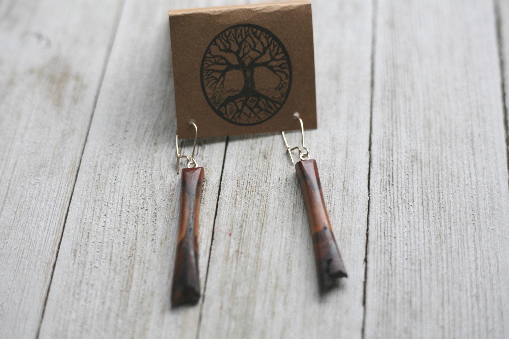 These earrings were created by my husband Jeff in one of our very favorite woods of all time- mountain mahogany. Mountain mahogany is just gorgeous. The colors can have such a wide range and some pieces Jeff and I think look like sunsets over the desert.