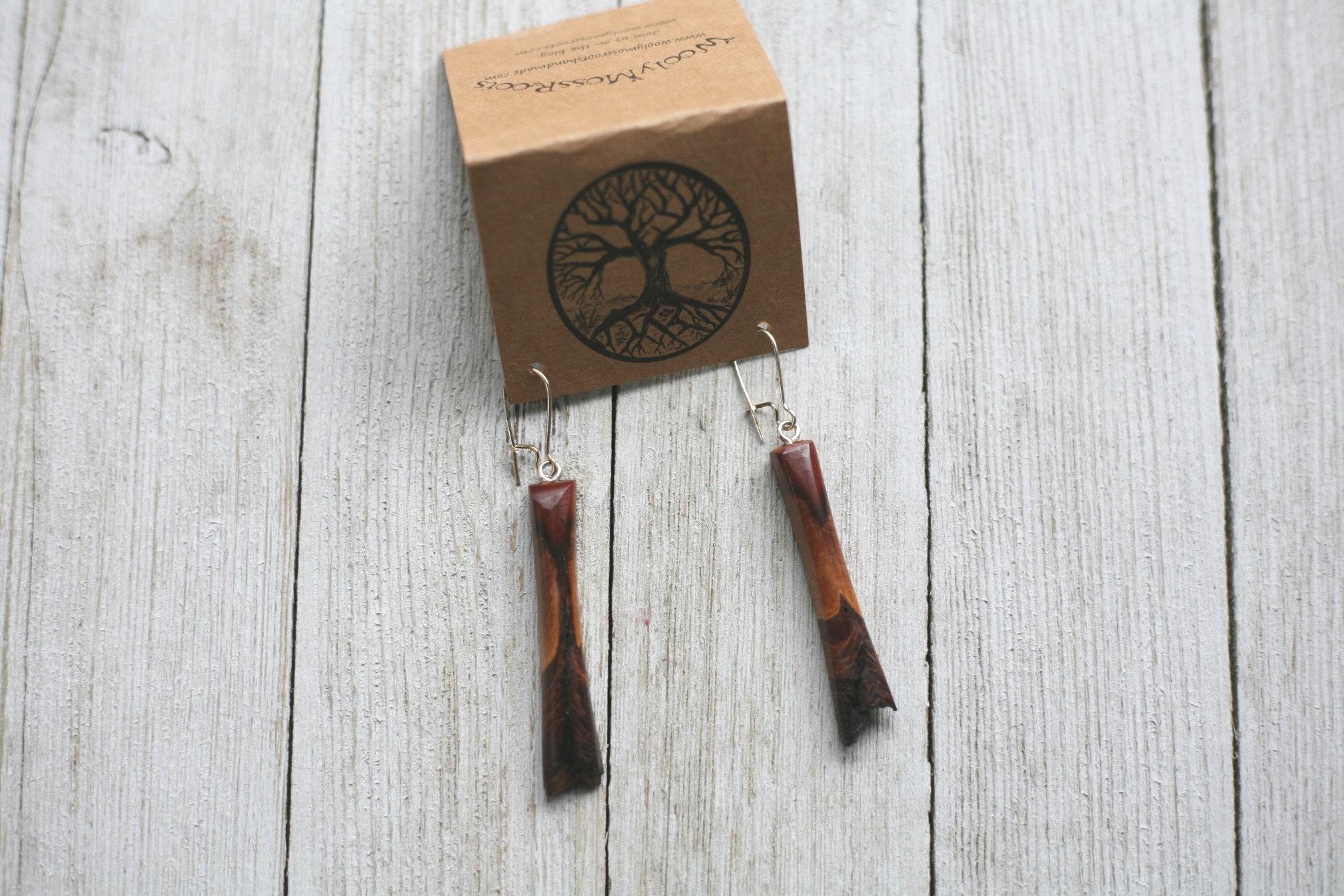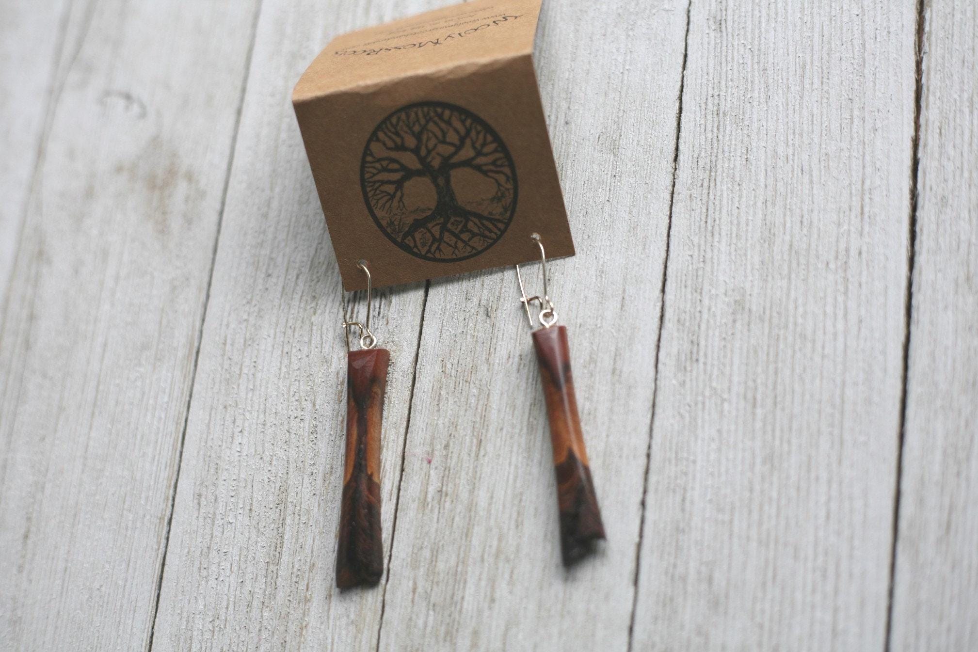 Beautiful wood + lots of sanding + natural oil finish + polishing on the buffing wheel + a whole lotta love = some gorgeous and unique jewelry for you to enjoy. With so many fun designs and variations to choose from, we hope you'll find something you'll love!
