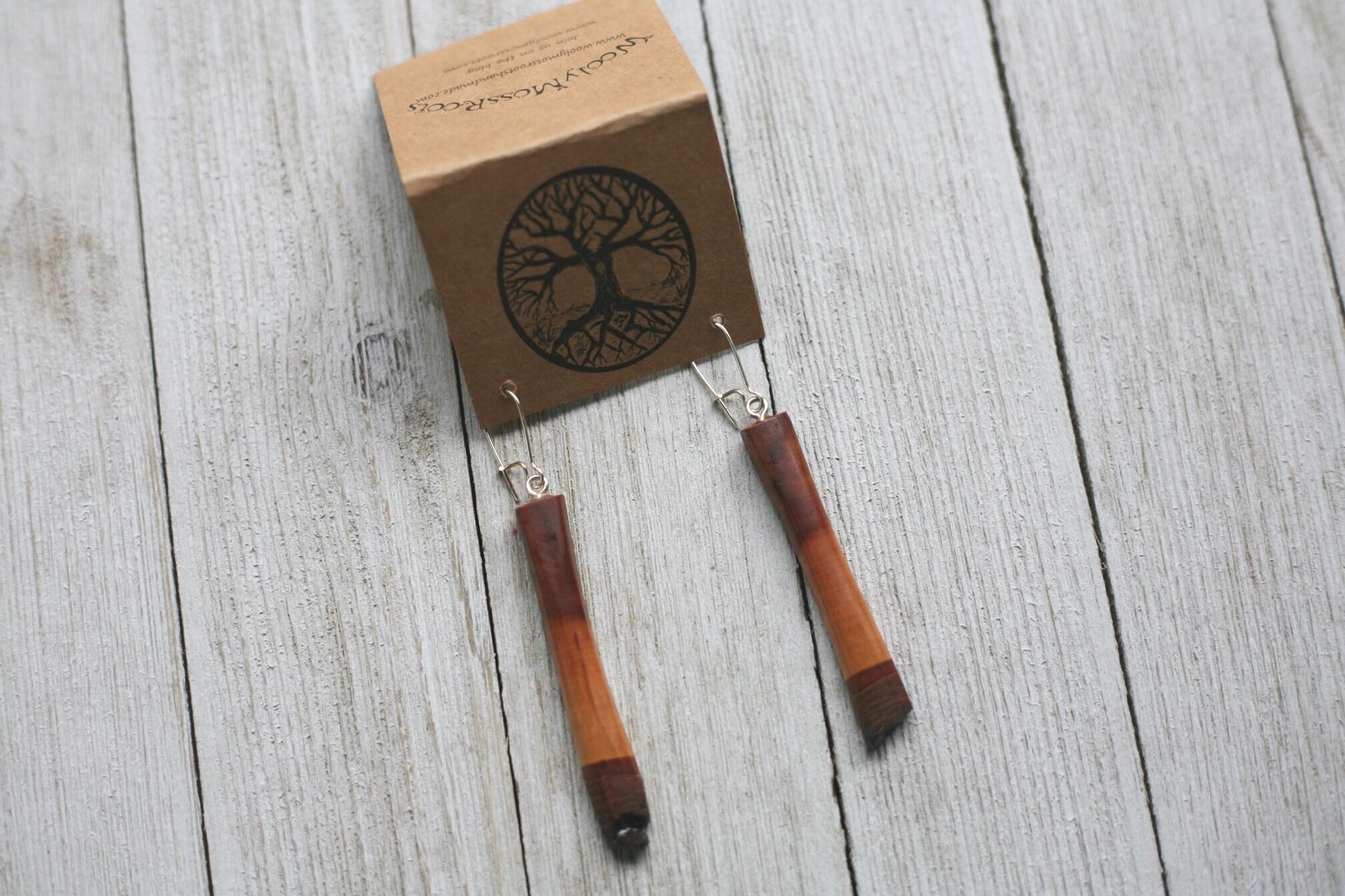 (Our mountain mahogany earrings are not our most lightweight earrings, so if you are looking for our most lightweight earrings- cedar is the best choice.) They come on sterling silver plated ear wires.