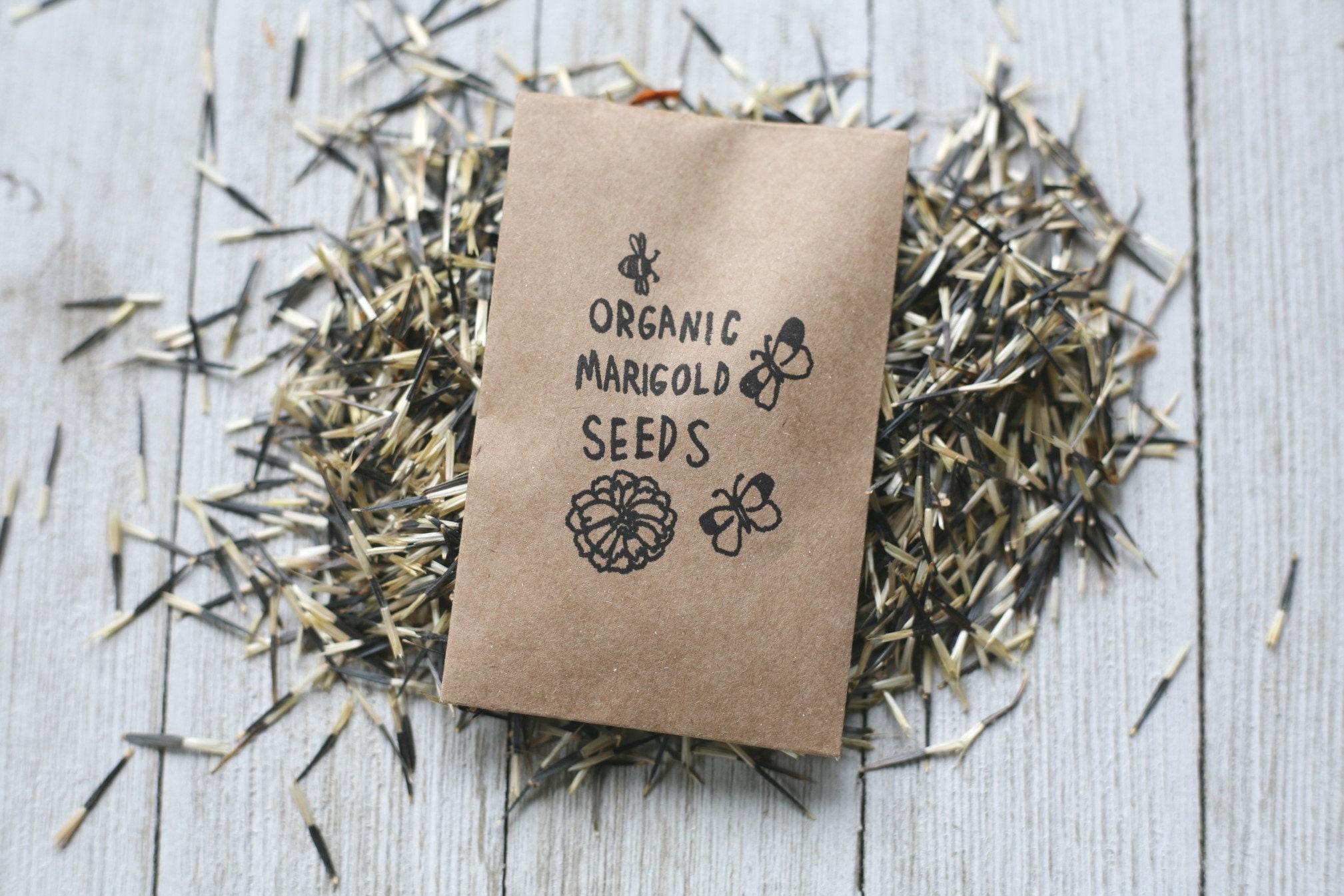 Our son B has been planting and collecting seeds since he was a toddler. He decided to start his own seed business, called Bee's Organic Seeds, with marigold seeds being the first he offered for sale.