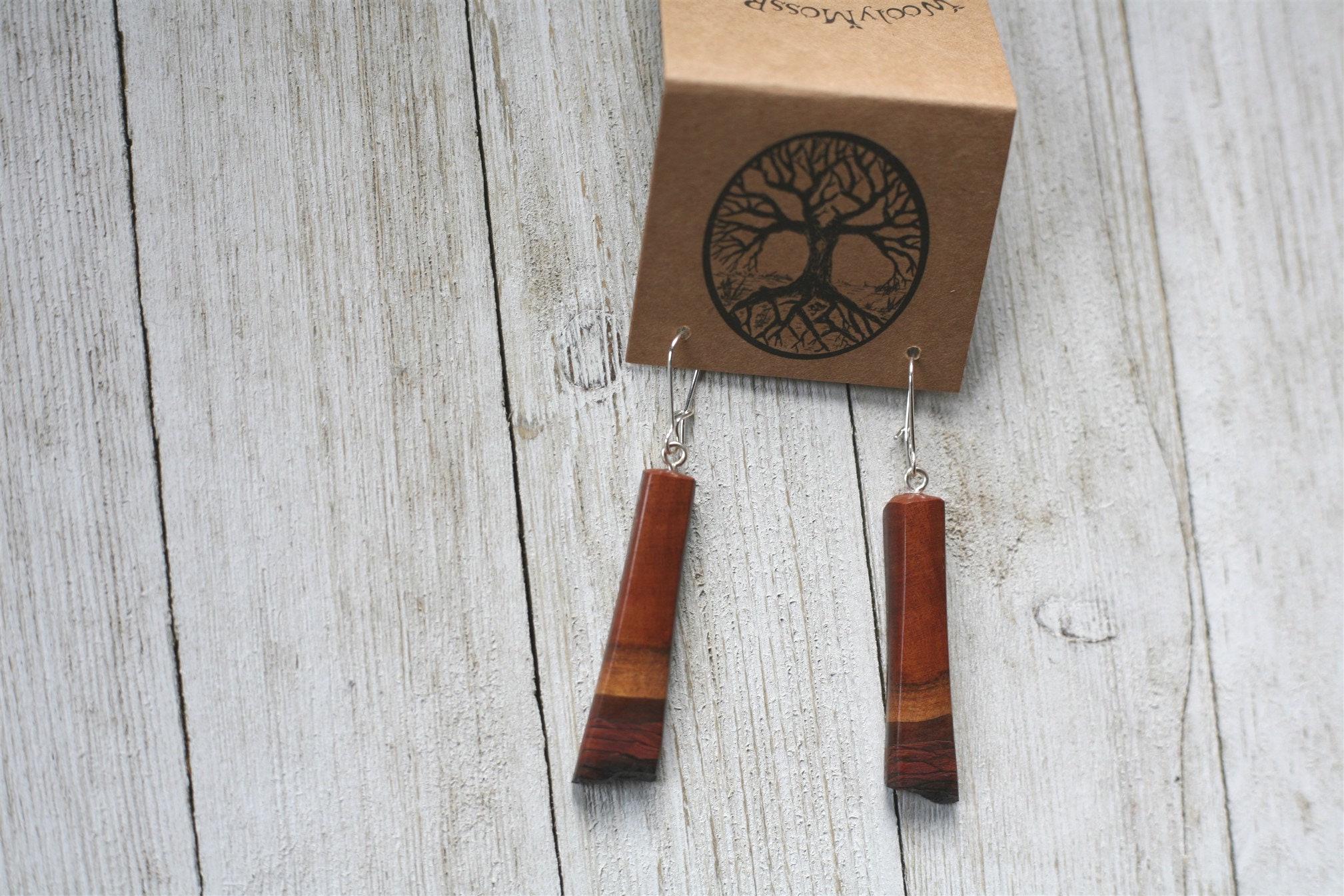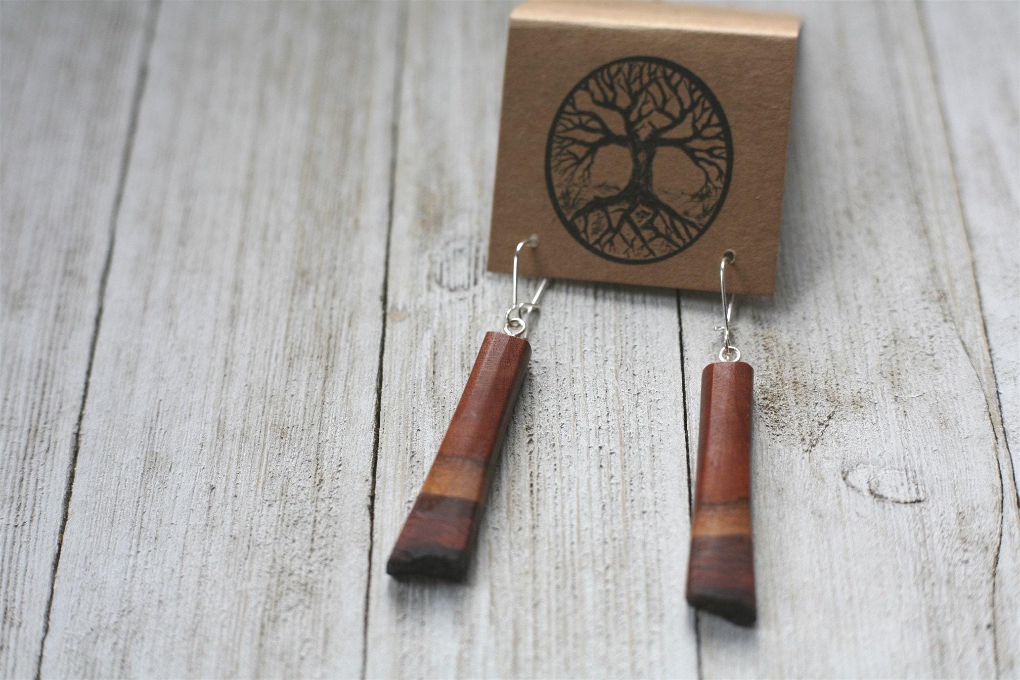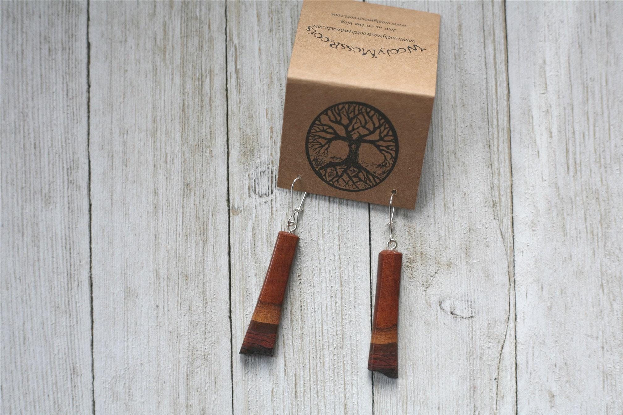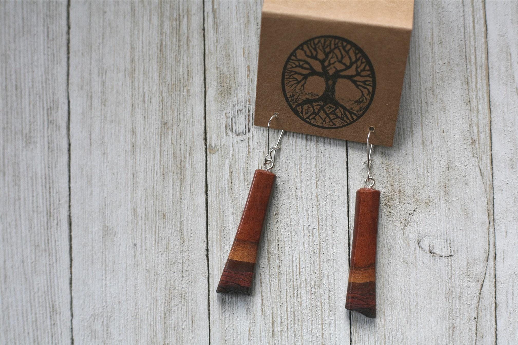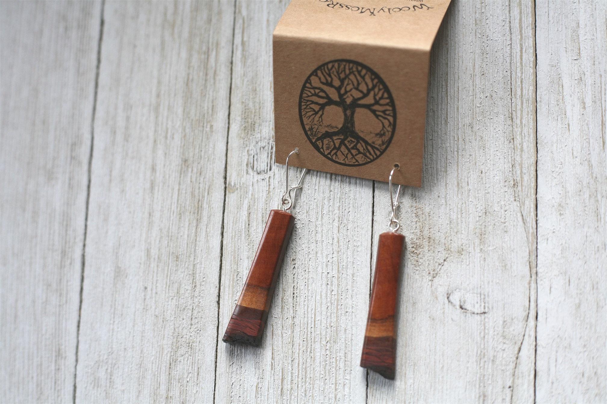 Beautiful wood + lots of sanding + natural oil finish + polishing on the buffing wheel + a whole lotta love = some gorgeous and unique jewelry for you to enjoy. With so many fun designs and variations to choose from, we hope you'll find something you'll love!