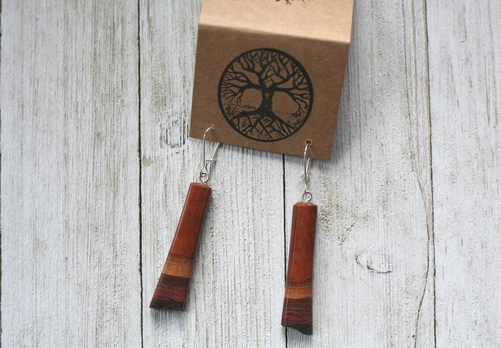 These earrings were created by my husband Jeff in one of our very favorite woods of all time- mountain mahogany. Mountain mahogany is just gorgeous! The colors can have such a wide range and some pieces (like this) remind us of desert scenes. I love the different colors in the grain of these earrings, and the natural bark along the bottom. These earrings are unique works of art! I love the size and shape of these too.