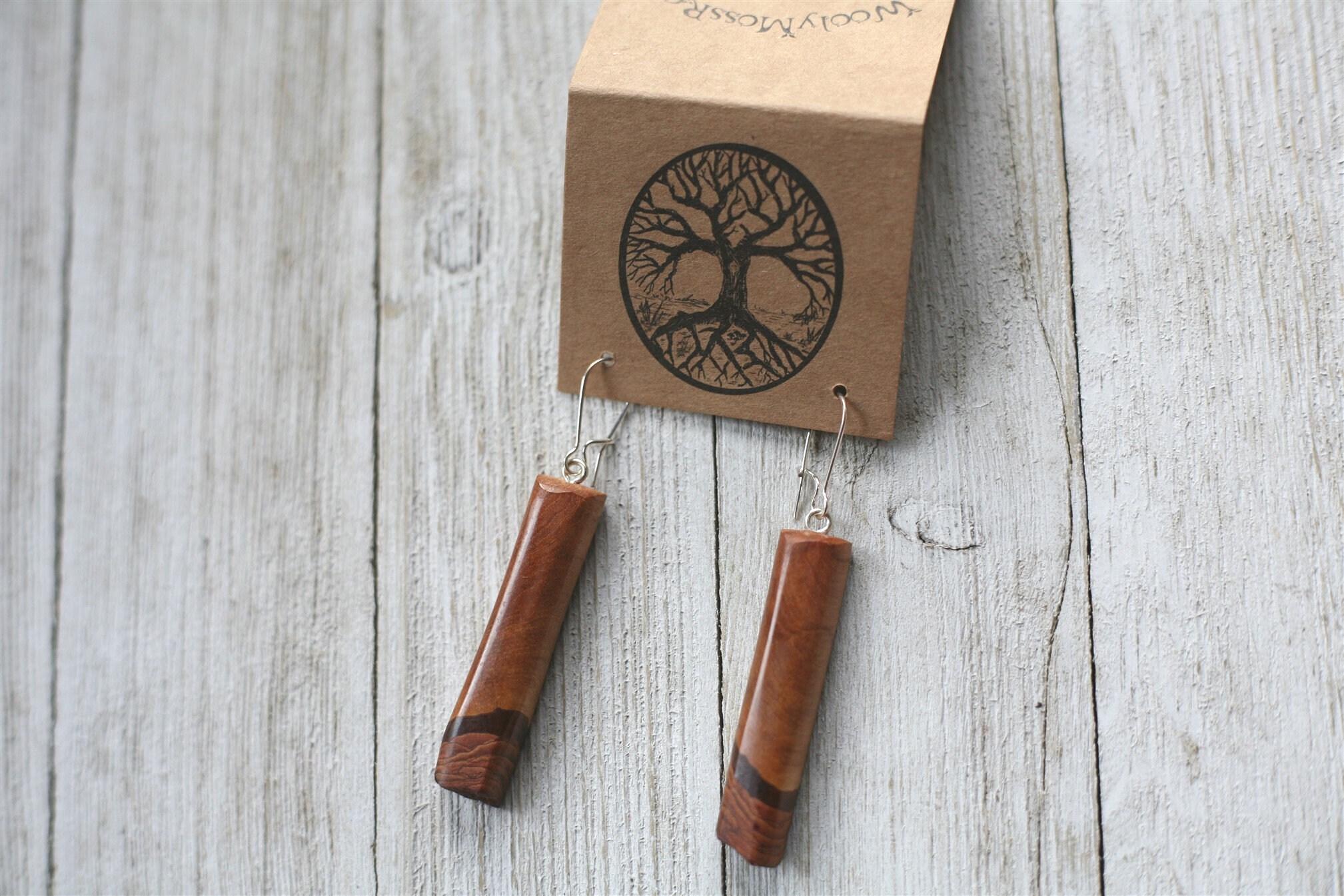 Beautiful wood + lots of sanding + natural oil finish + polishing on the buffing wheel + a whole lotta love = some gorgeous and unique jewelry for you to enjoy. With so many fun designs and variations to choose from, we hope you'll find something you'll love!