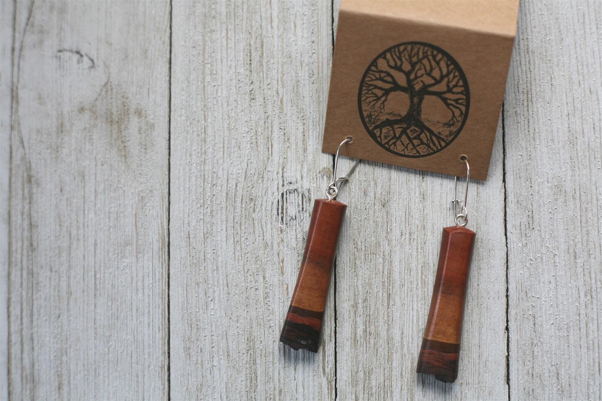 (Many of our earrings are surprisingly lightweight, even in the denser woods, but our earrings in mountain mahogany are not our most lightweight earrings. If you are looking for our most lightweight earrings, the smaller size earrings and earrings in cedar wood are a good option.) These earrings come on sterling silver plated ear wires.