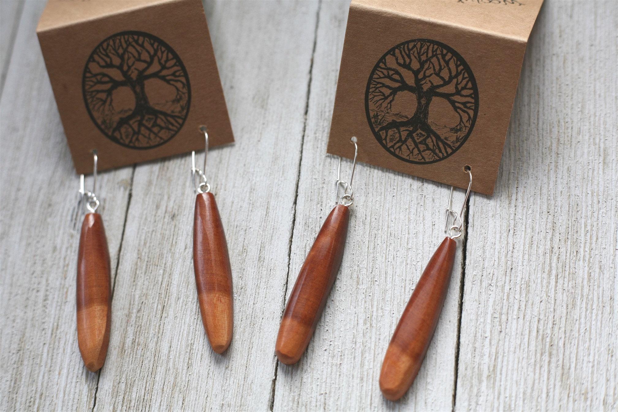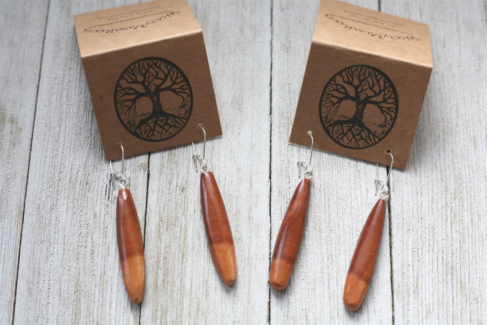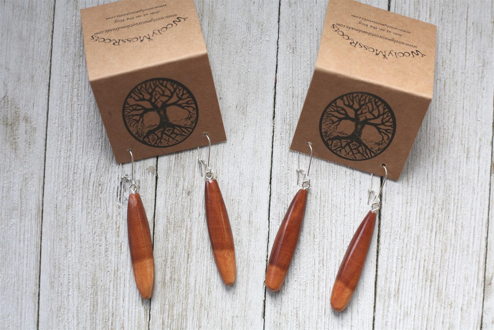 Beautiful wood + lots of sanding + natural oil finish + polishing on the buffing wheel + a whole lotta love = some gorgeous and unique jewelry for you to enjoy. With so many fun designs and variations to choose from, we hope you'll find something you'll love!
