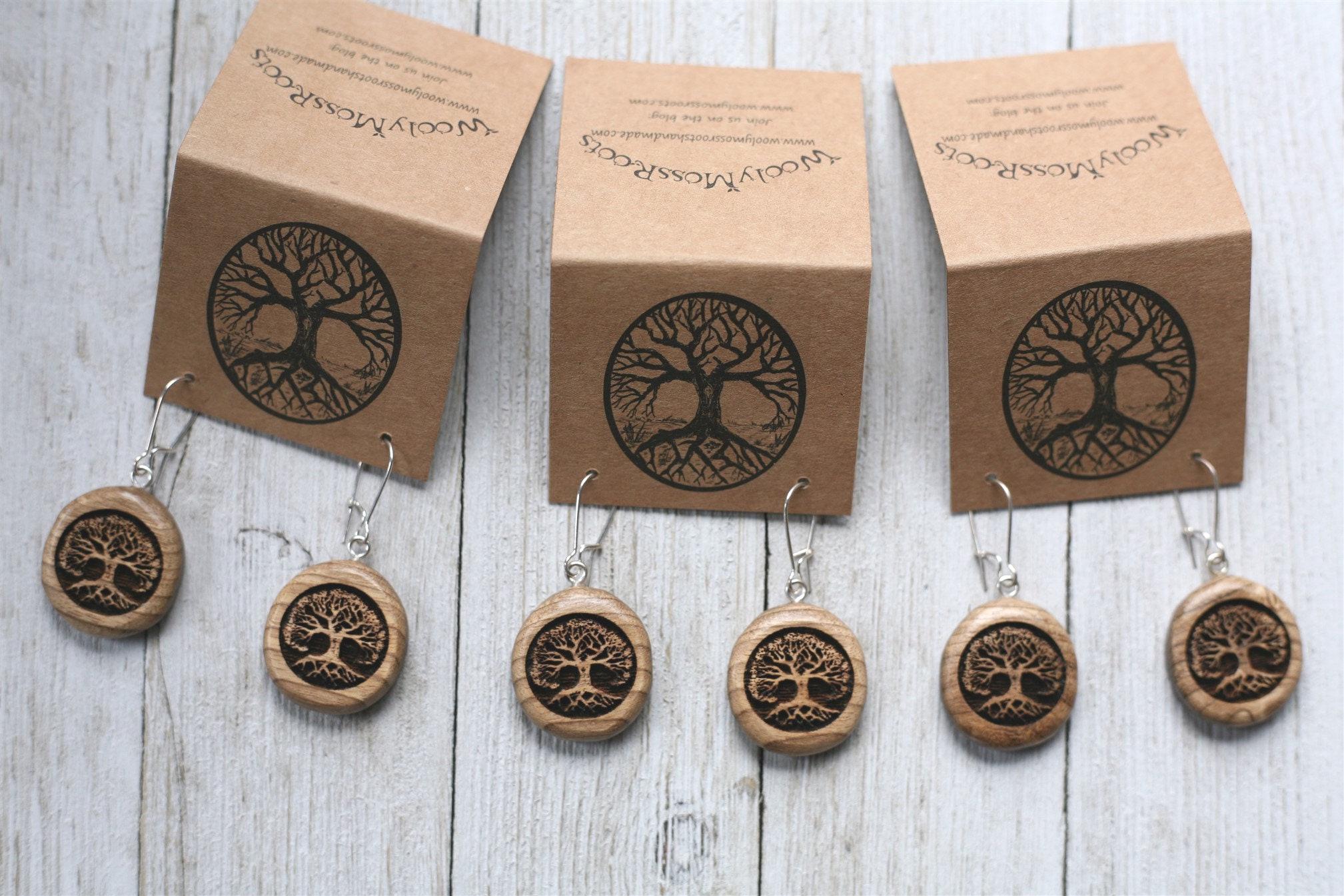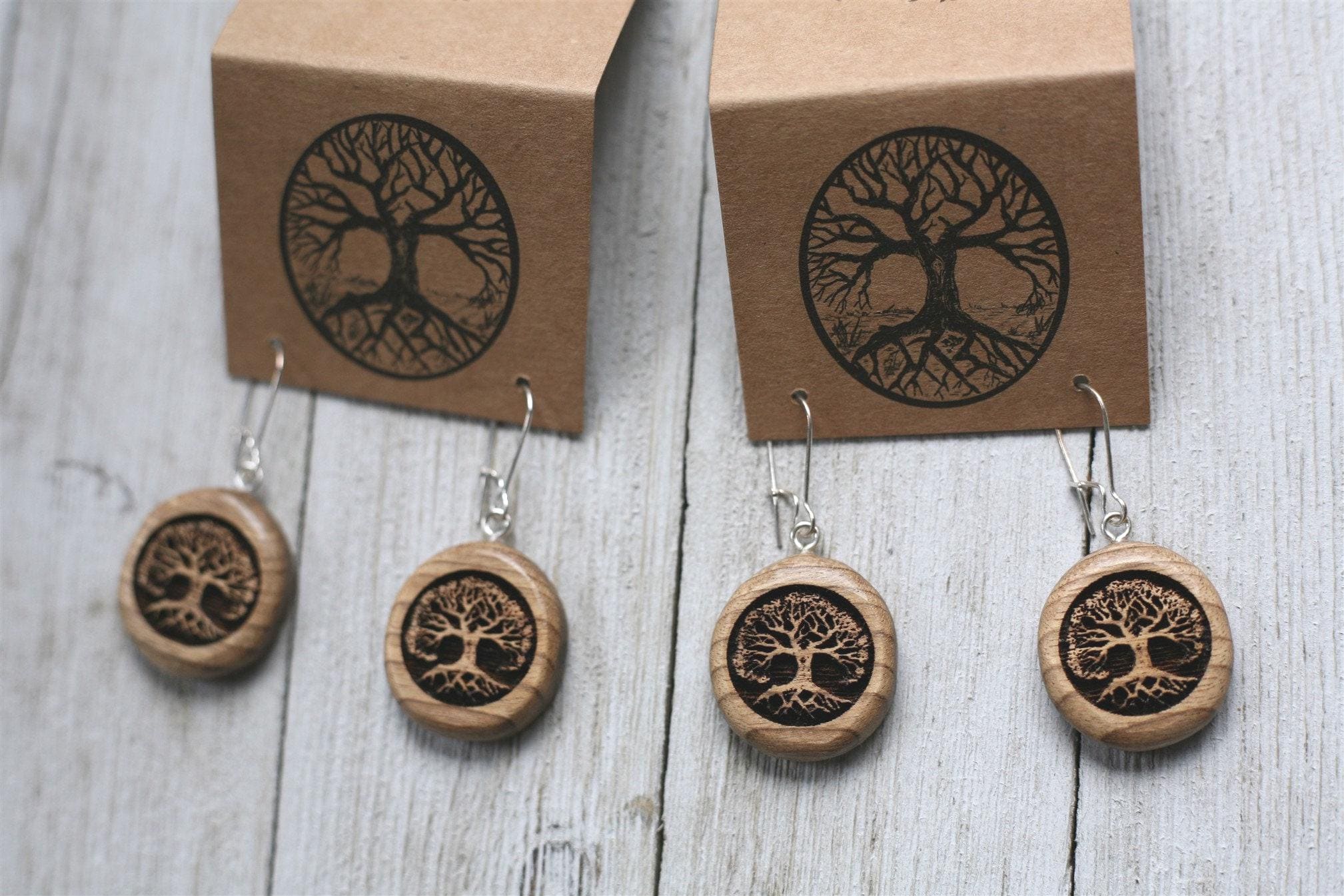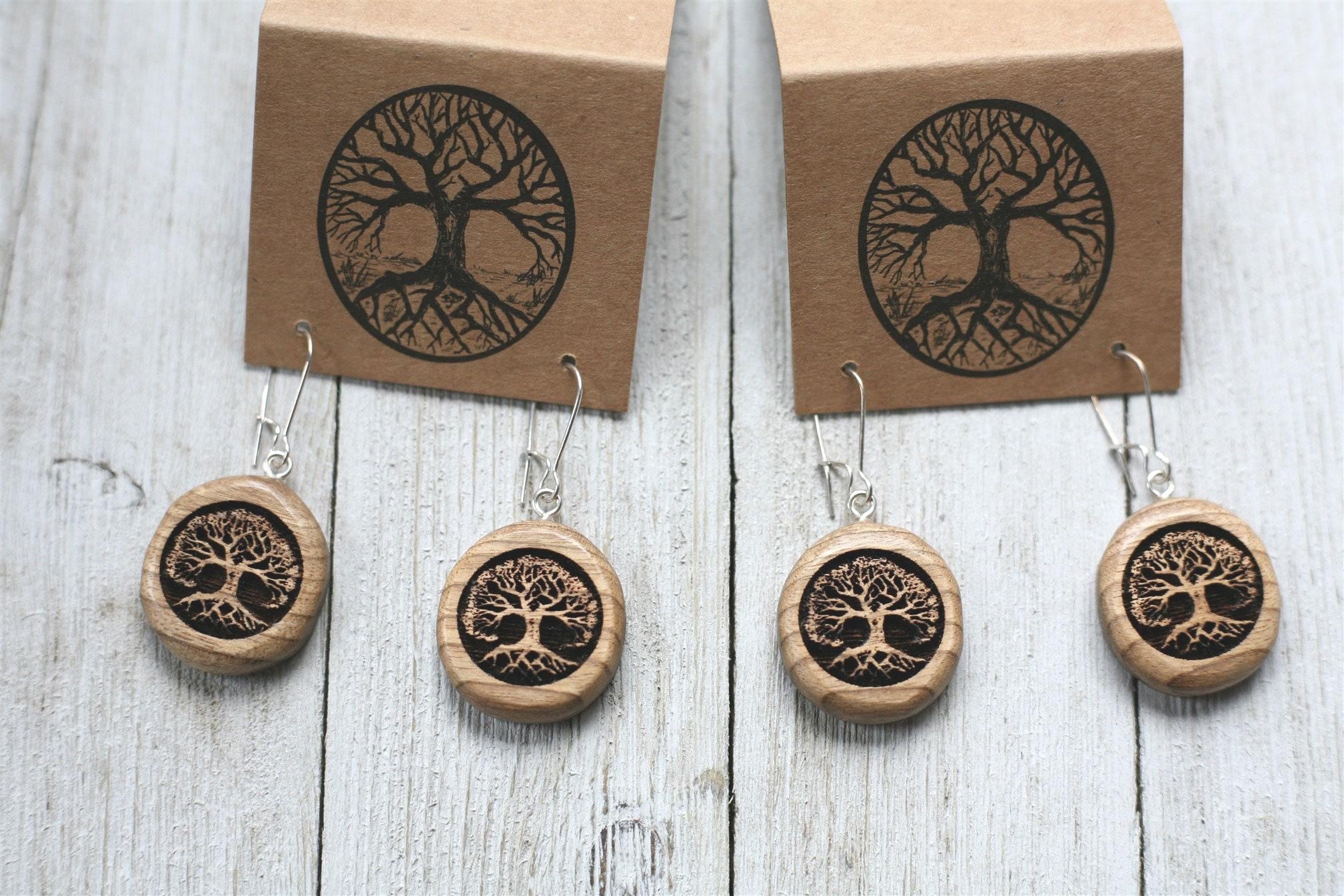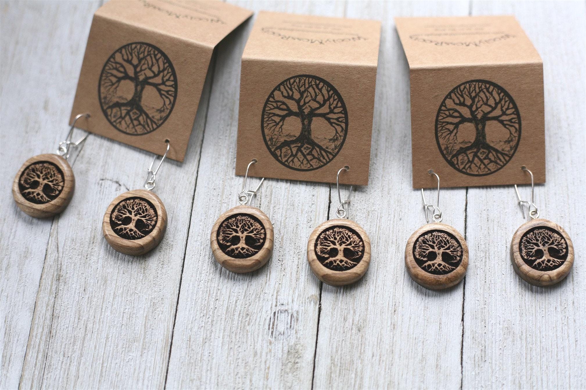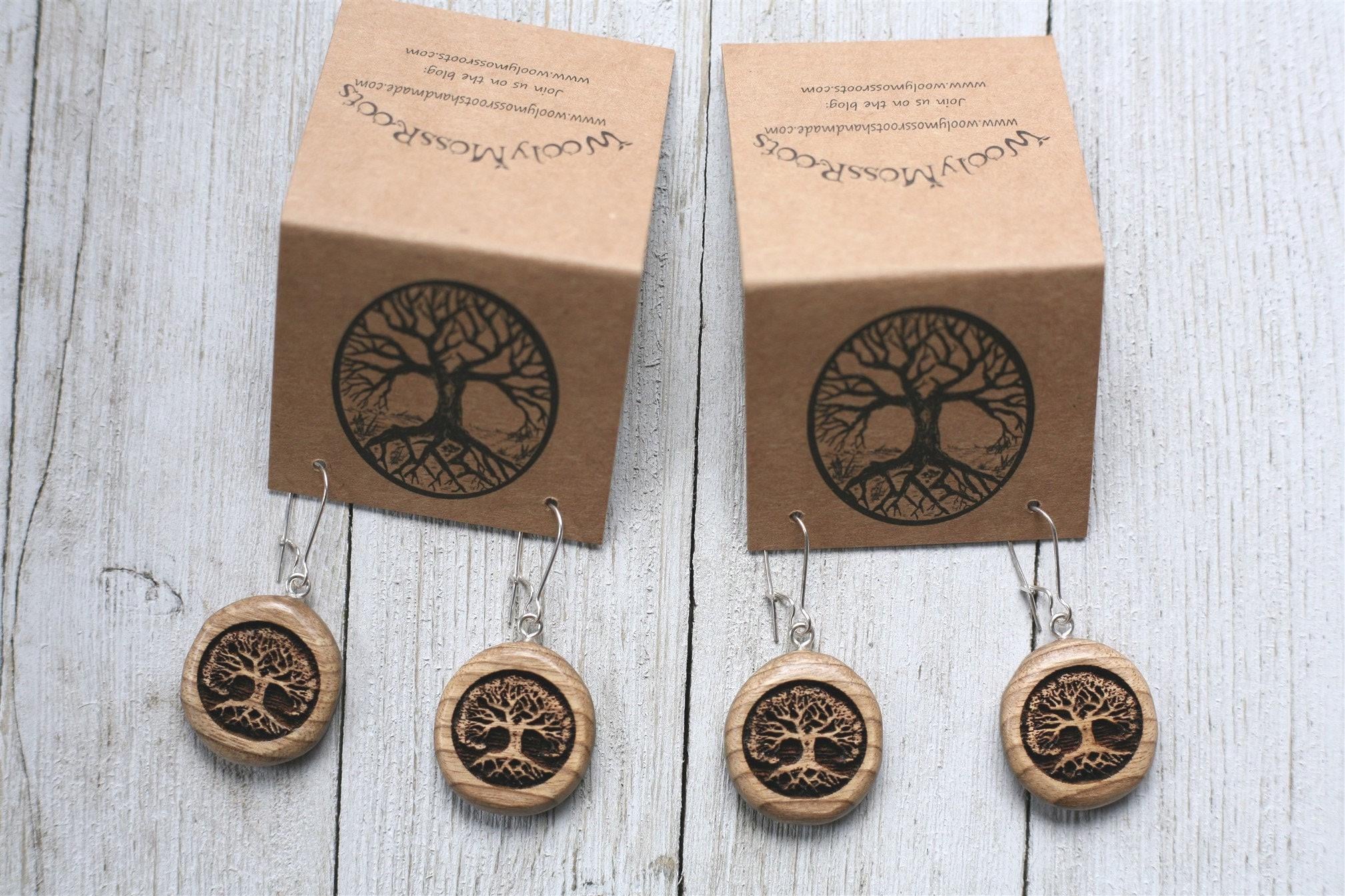 (Many of our earrings are surprisingly lightweight, even in the denser woods. If you are looking for our most lightweight earrings, the smaller size earrings and earrings in cedar wood are a good option.) These earrings come on sterling silver plated ear wires.