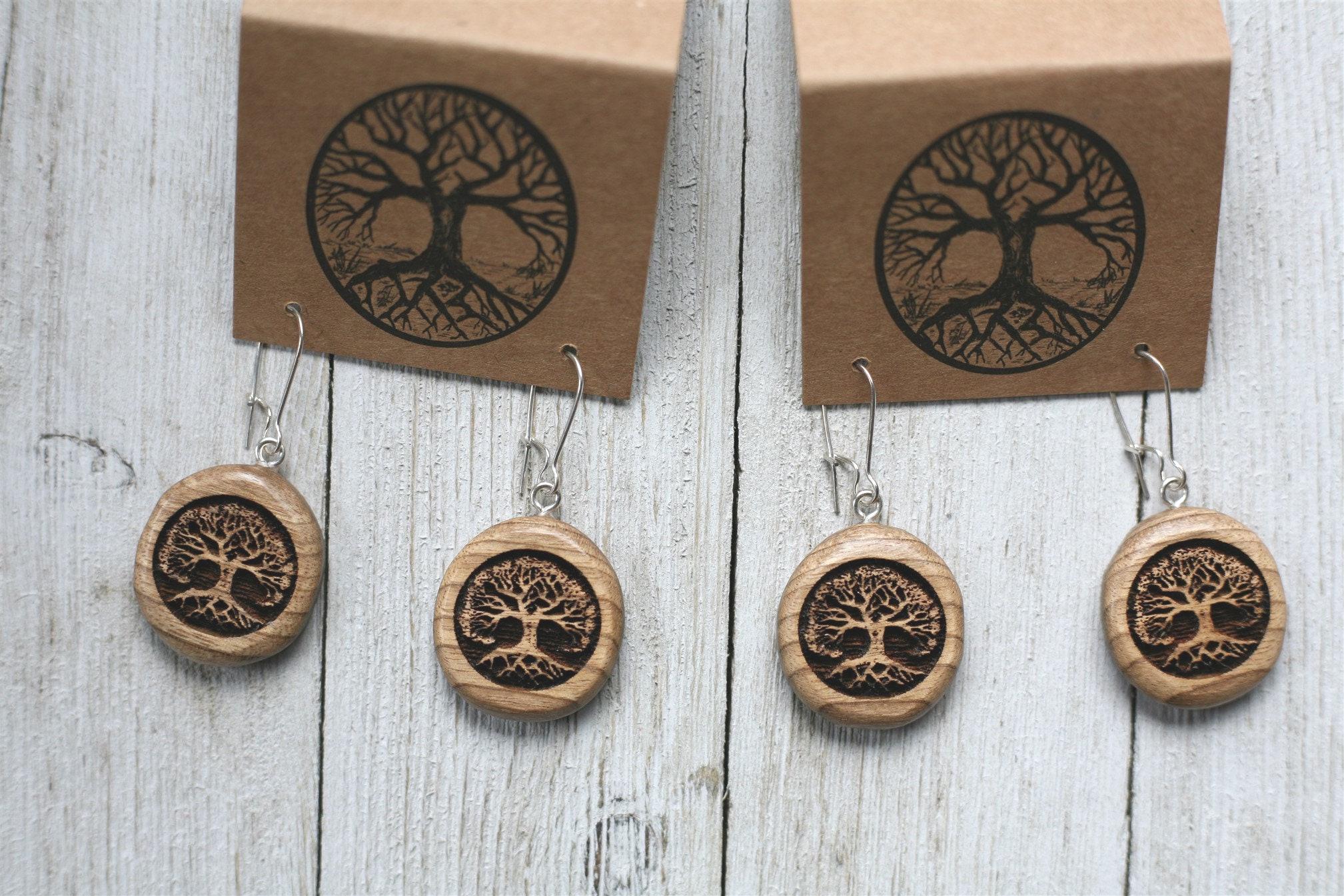 Jeff created this gorgeous tree design, which I adore. He sanded these earrings and burned his original tree design onto each one. Jeff sands and polishes the earrings so smooth, you'll love the way they feel. All the sanding and polishing also brings out the beauty of the wood, and makes it glow. He puts so much love into creating these unique works of art for people to enjoy wearing!