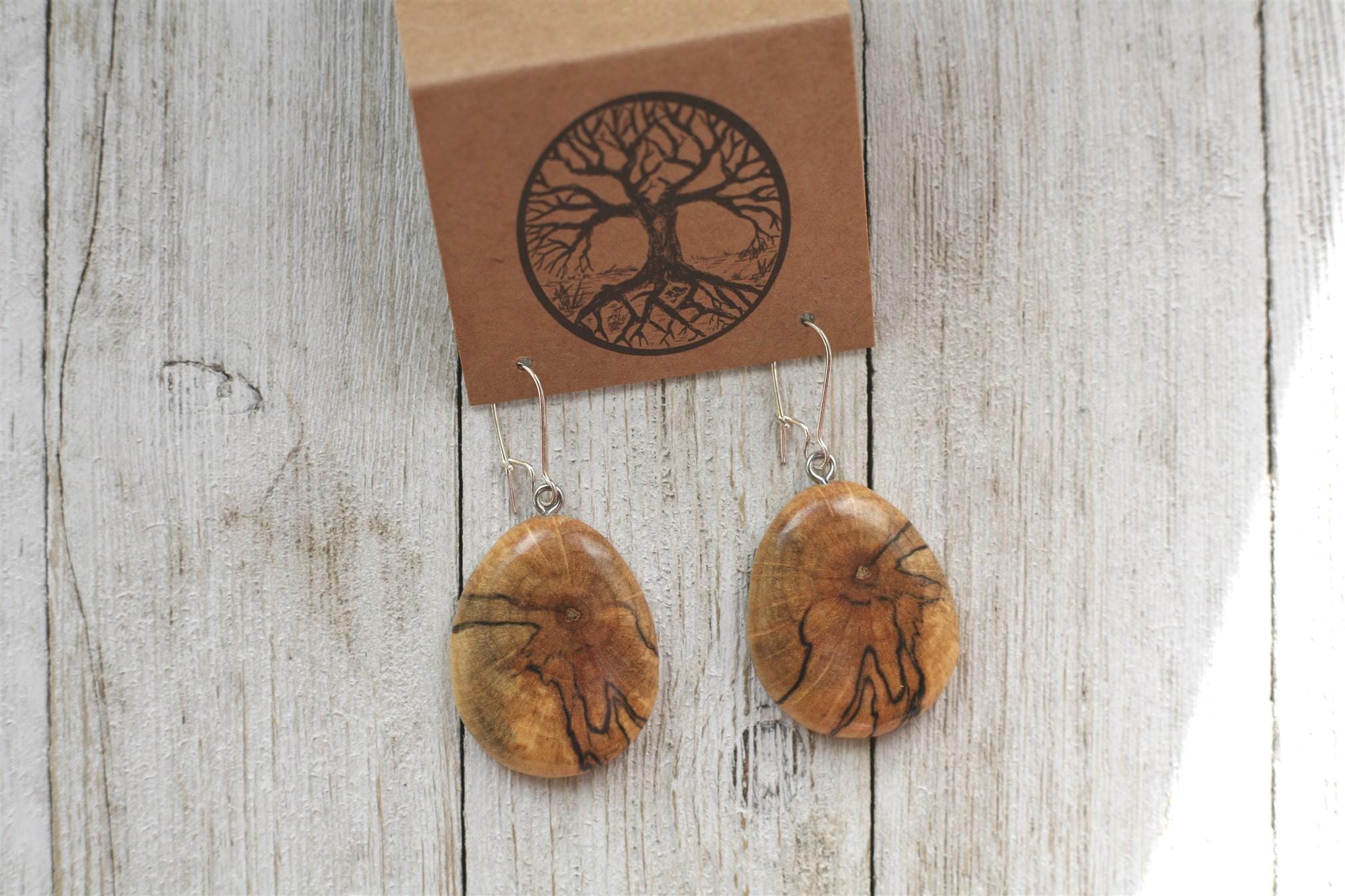 Sometimes the spalted wood needs to be stabilized. These earrings have gone through a process to stabilize the spalted wood, more on that below.