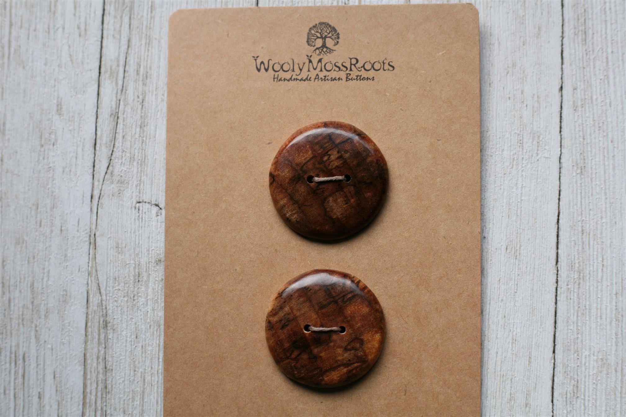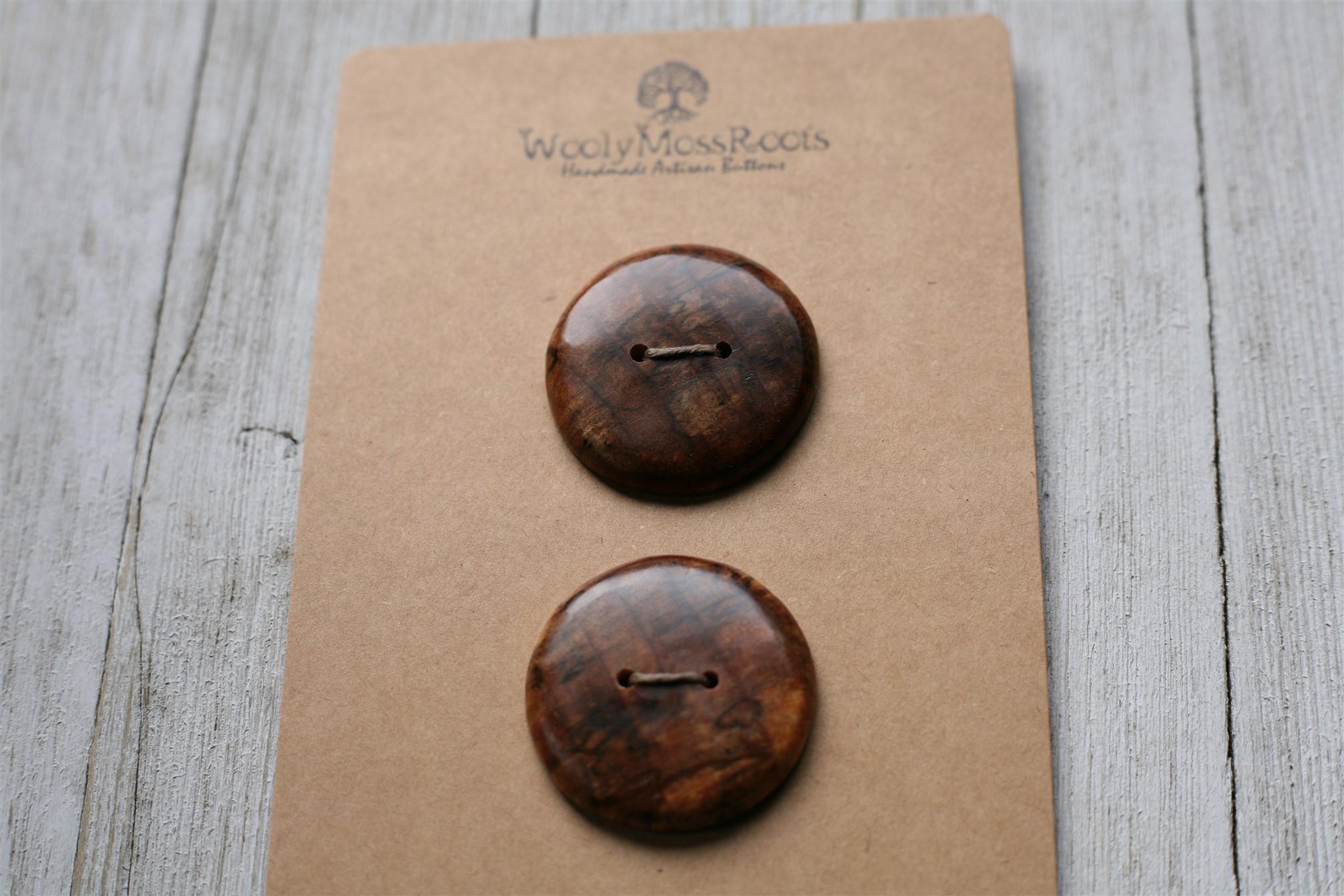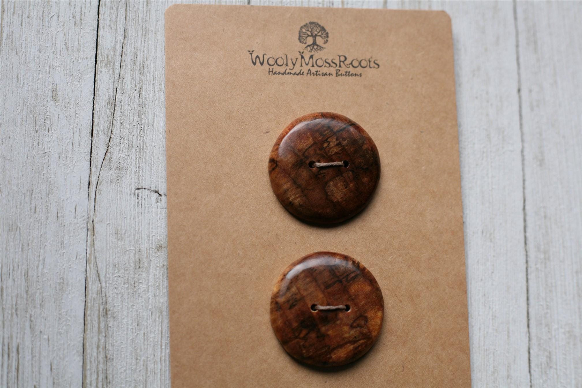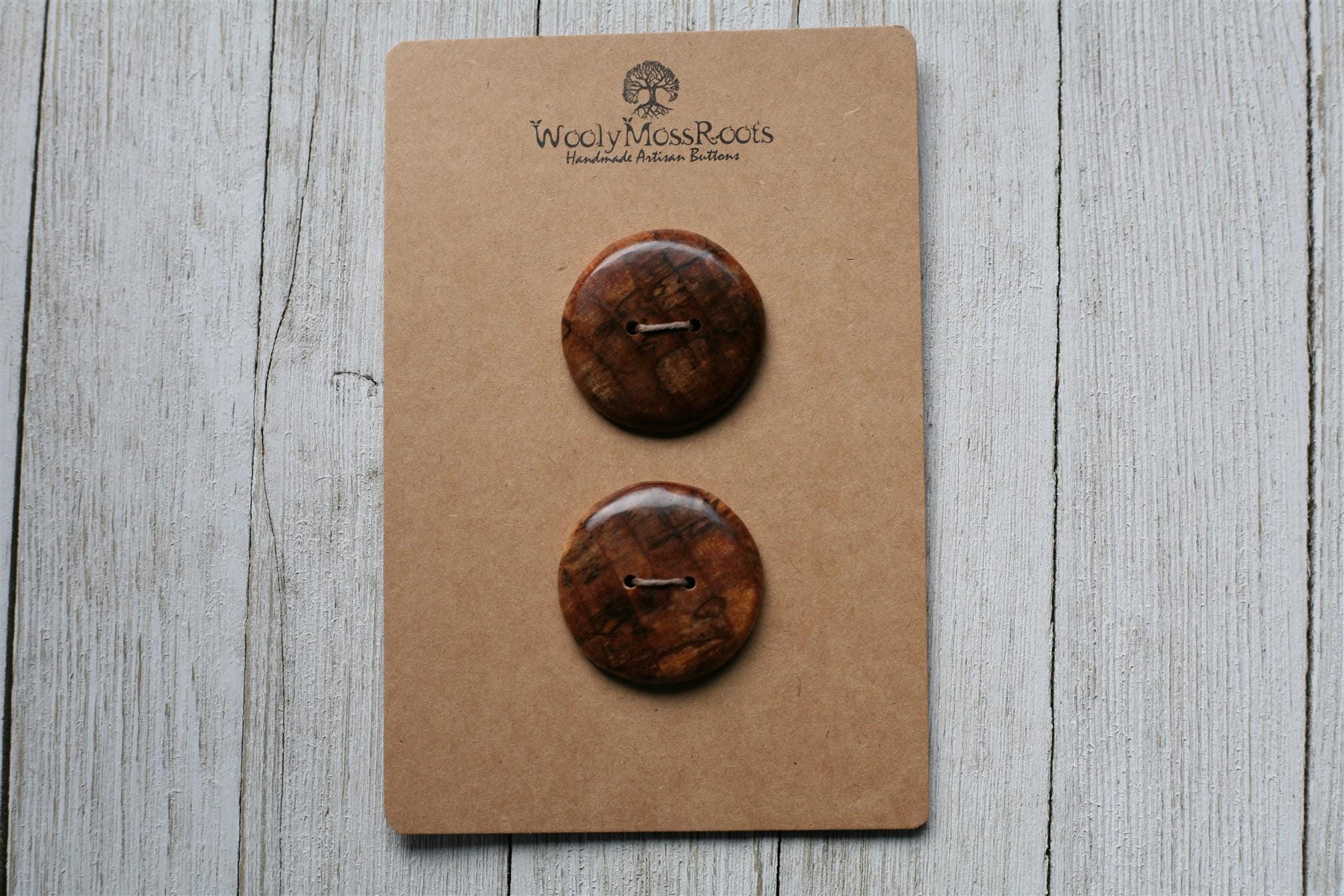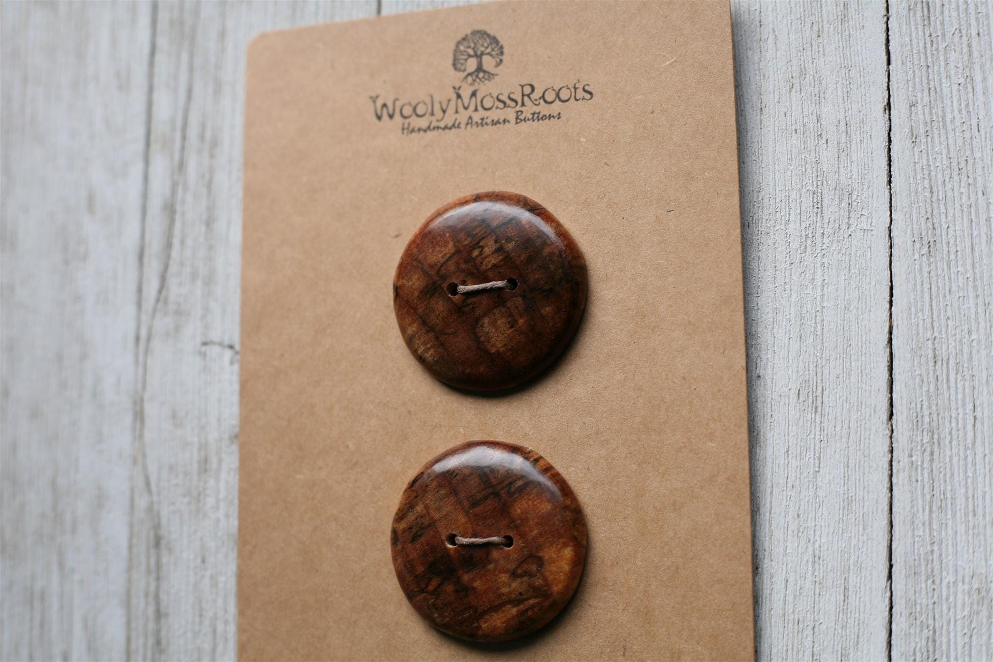 These buttons were created by my husband Jeff in spalted maple wood. Spalted wood is just amazing, and this spalted maple is really something! The design in the grain of each piece of spalted wood is so unique- every one a rare beauty.