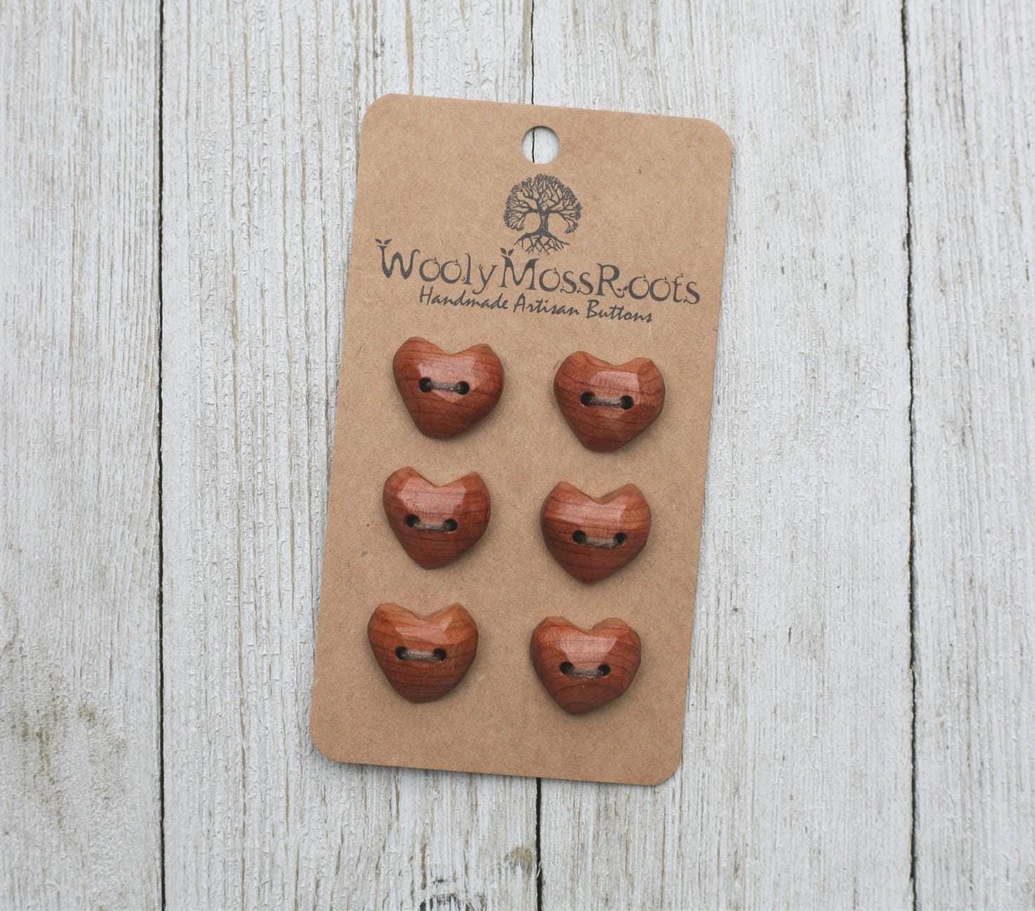 If you are looking for unique, handmade buttons for your next project, you've found them! These handmade wooden heart buttons were created by my husband Jeff in red cedar wood. I love cedar wood, and especially red cedar with it's rosy hue!