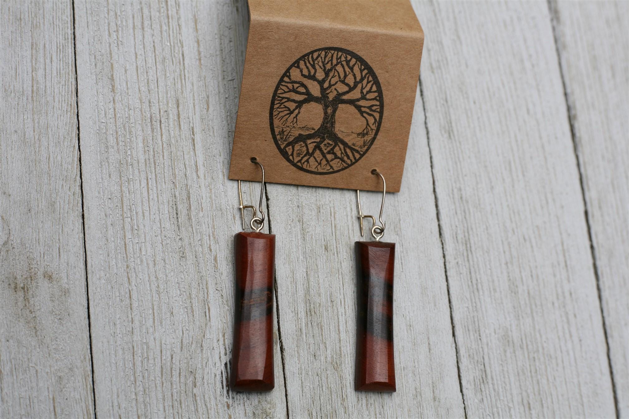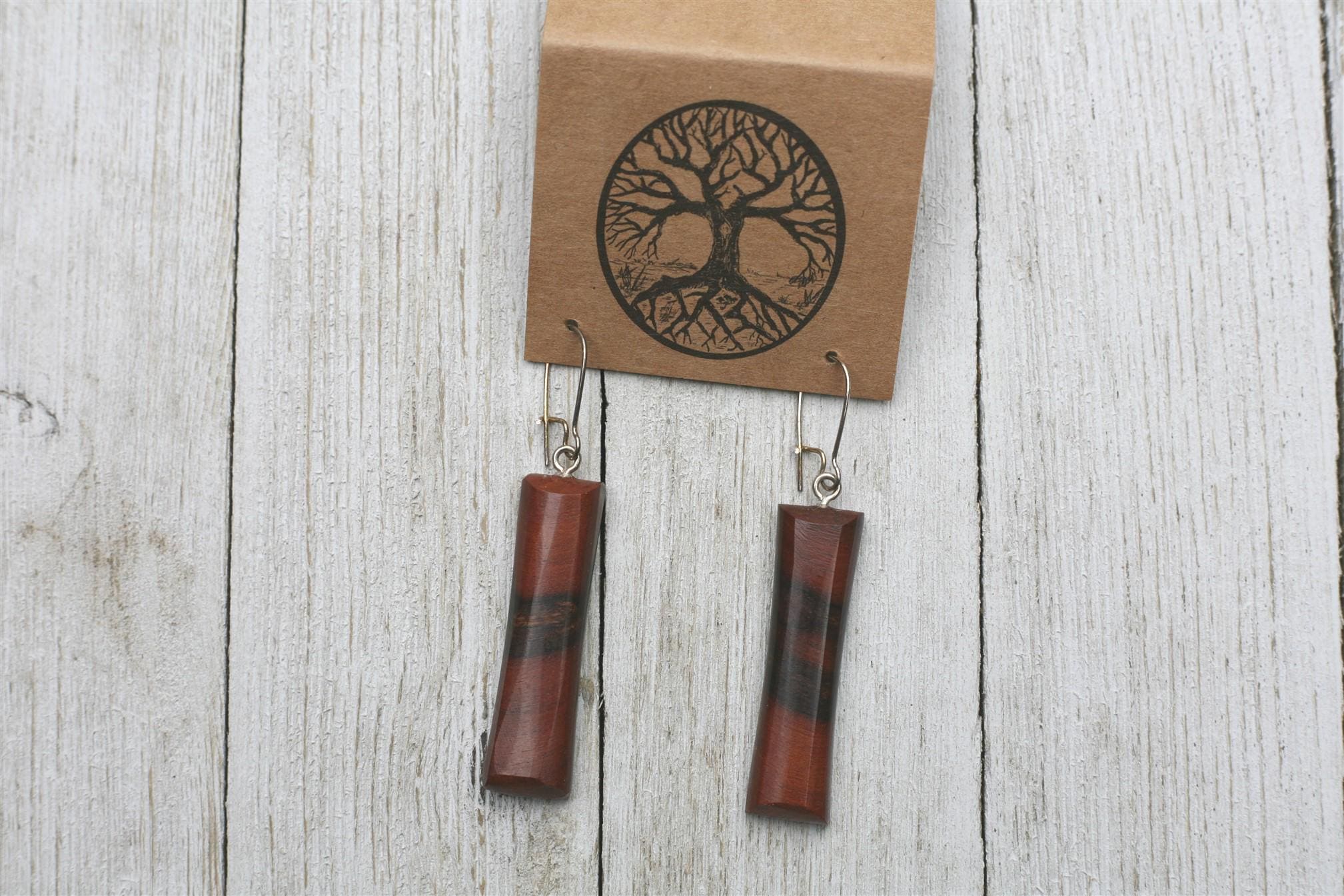 These earrings feel like polished stone. Jeff sands and polishes the earrings so smooth, you'll love the way they feel. All the sanding and polishing also brings out the beauty of the wood, and makes it glow.