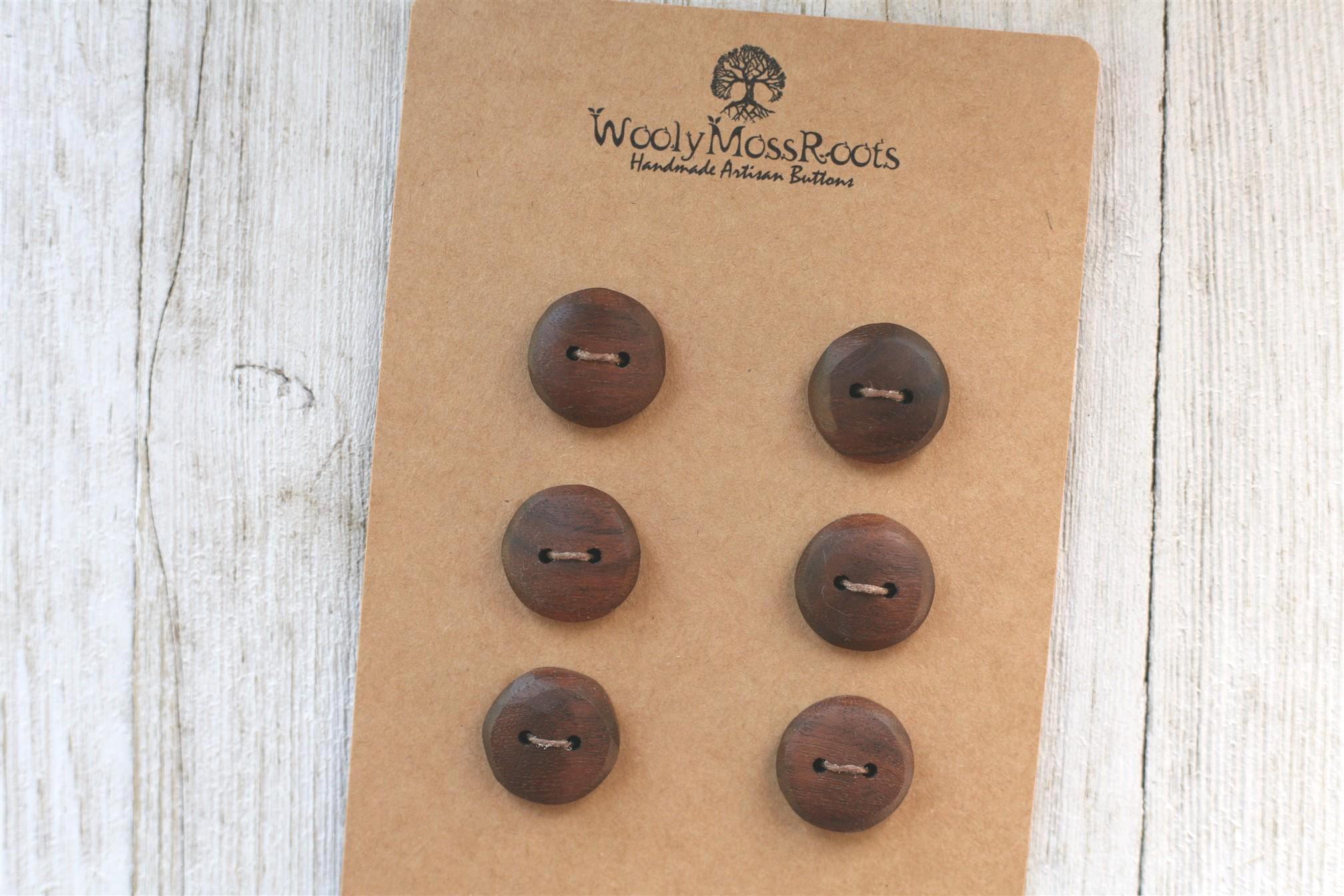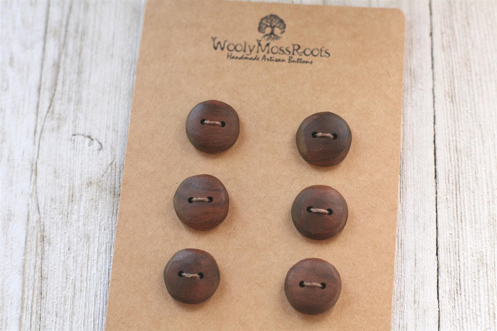 These wooden buttons were created by my husband Jeff in black walnut wood. Isn't the deep hue of the black walnut beautiful?