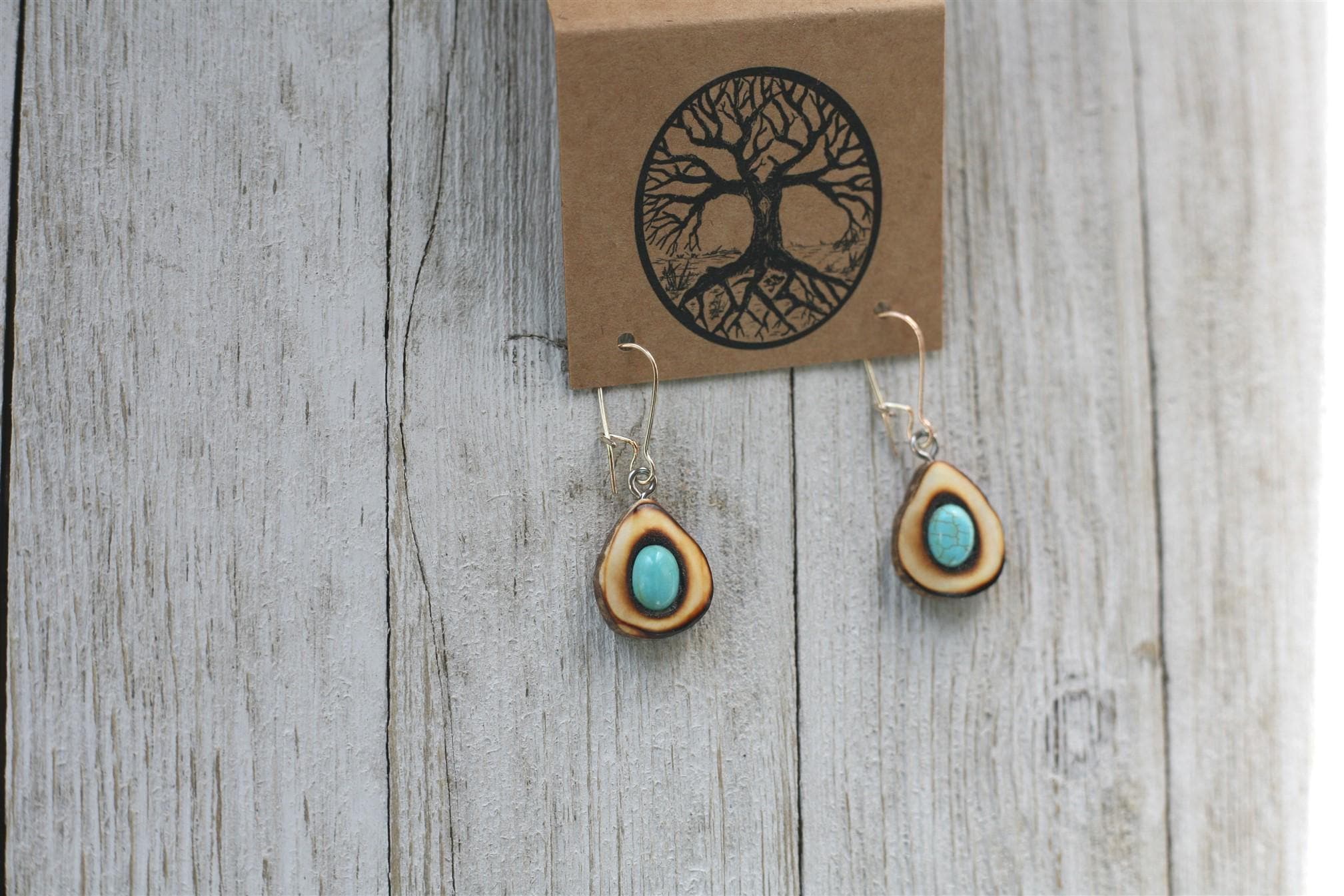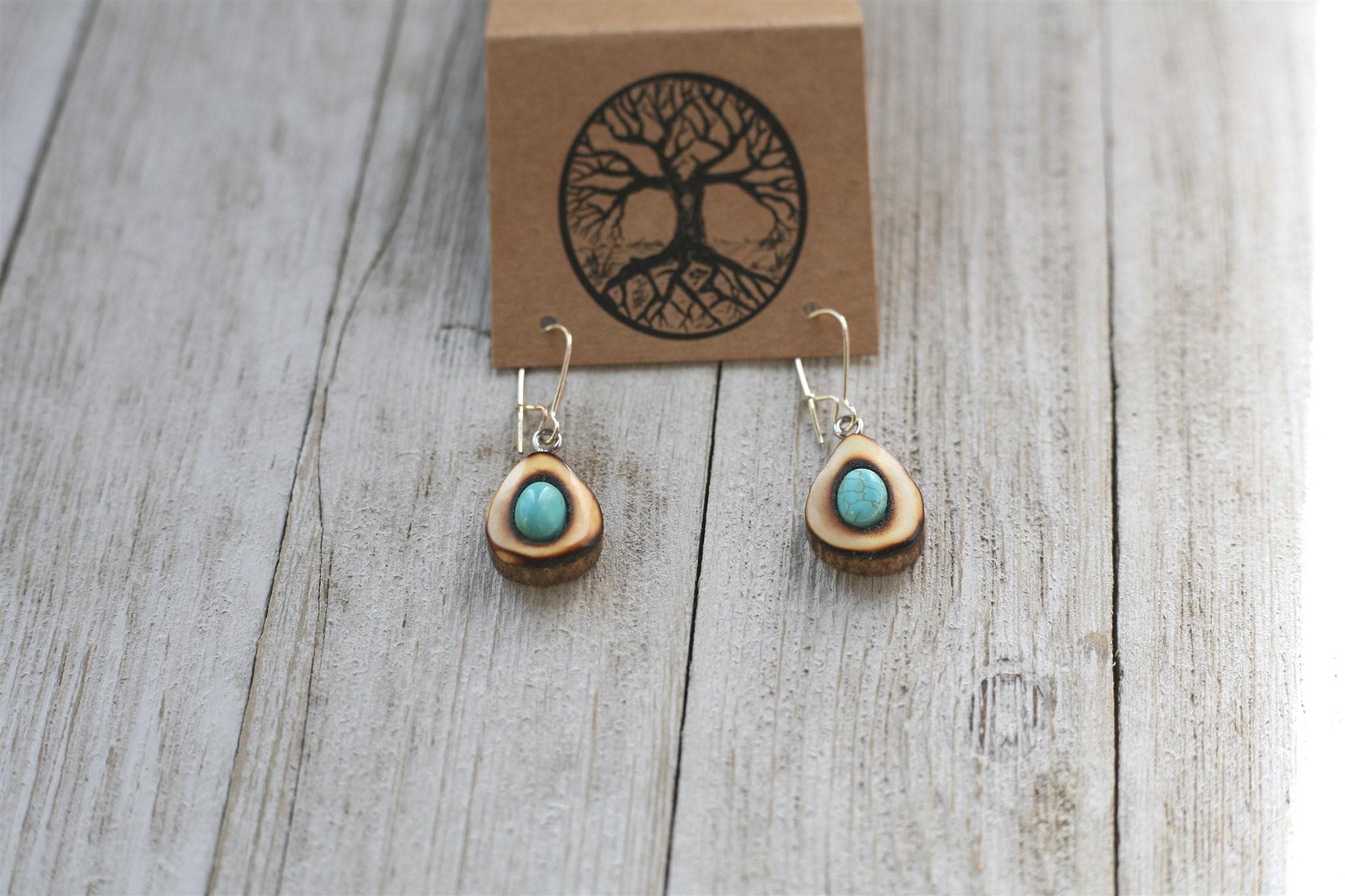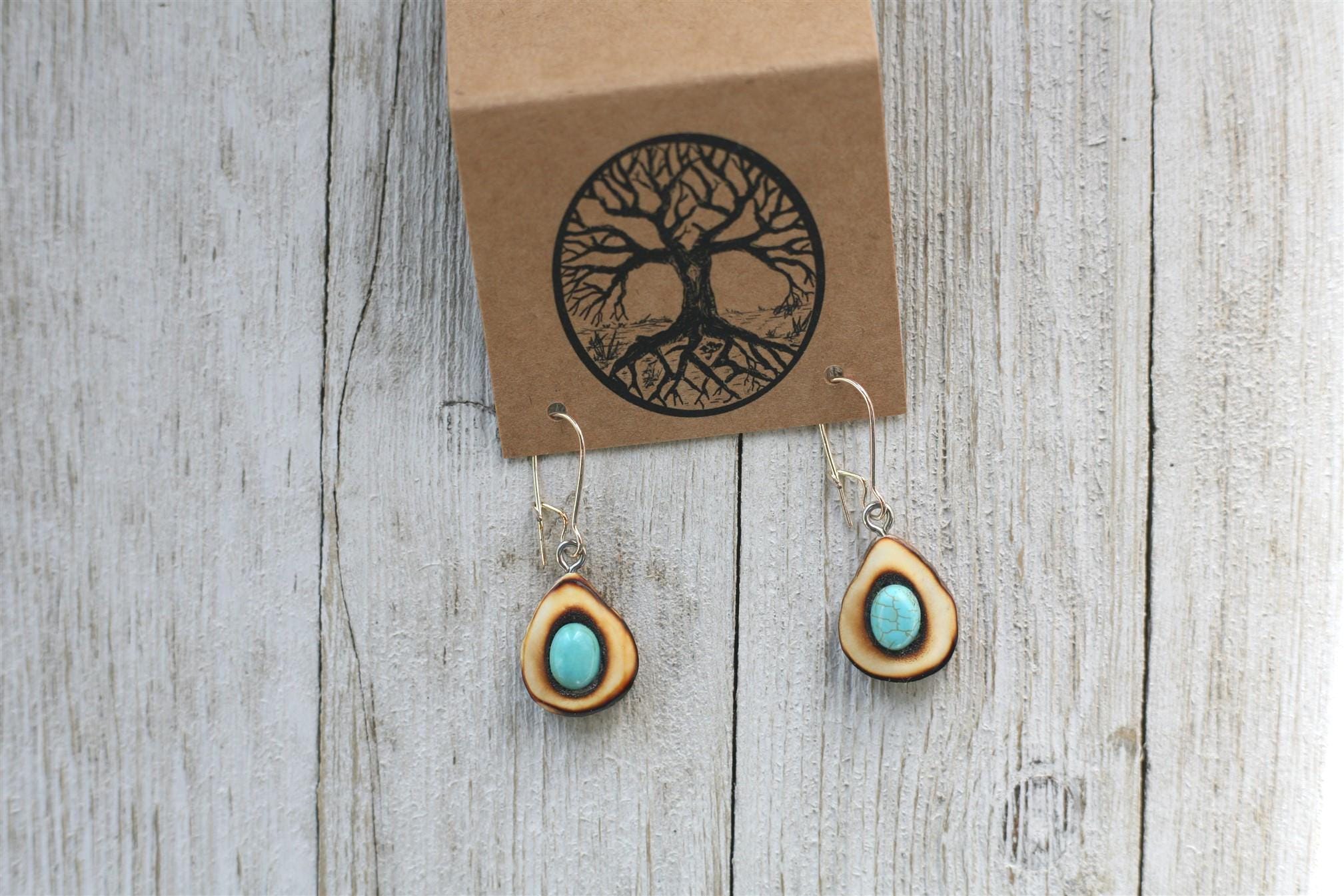 (Many of our earrings are surprisingly lightweight, even in the denser woods and antler, but if you are looking for our most lightweight earrings, the smaller size earrings and earrings in cedar wood are a good option.) These earrings come on sterling silver plated ear wires.