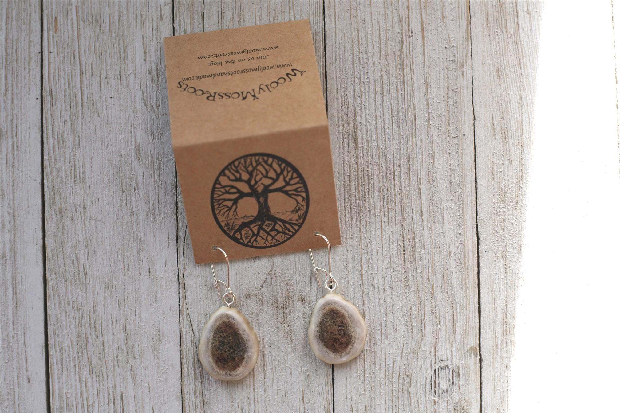These earrings were created by my husband Jeff in shed deer antler. The shed antler feels so special to work with.