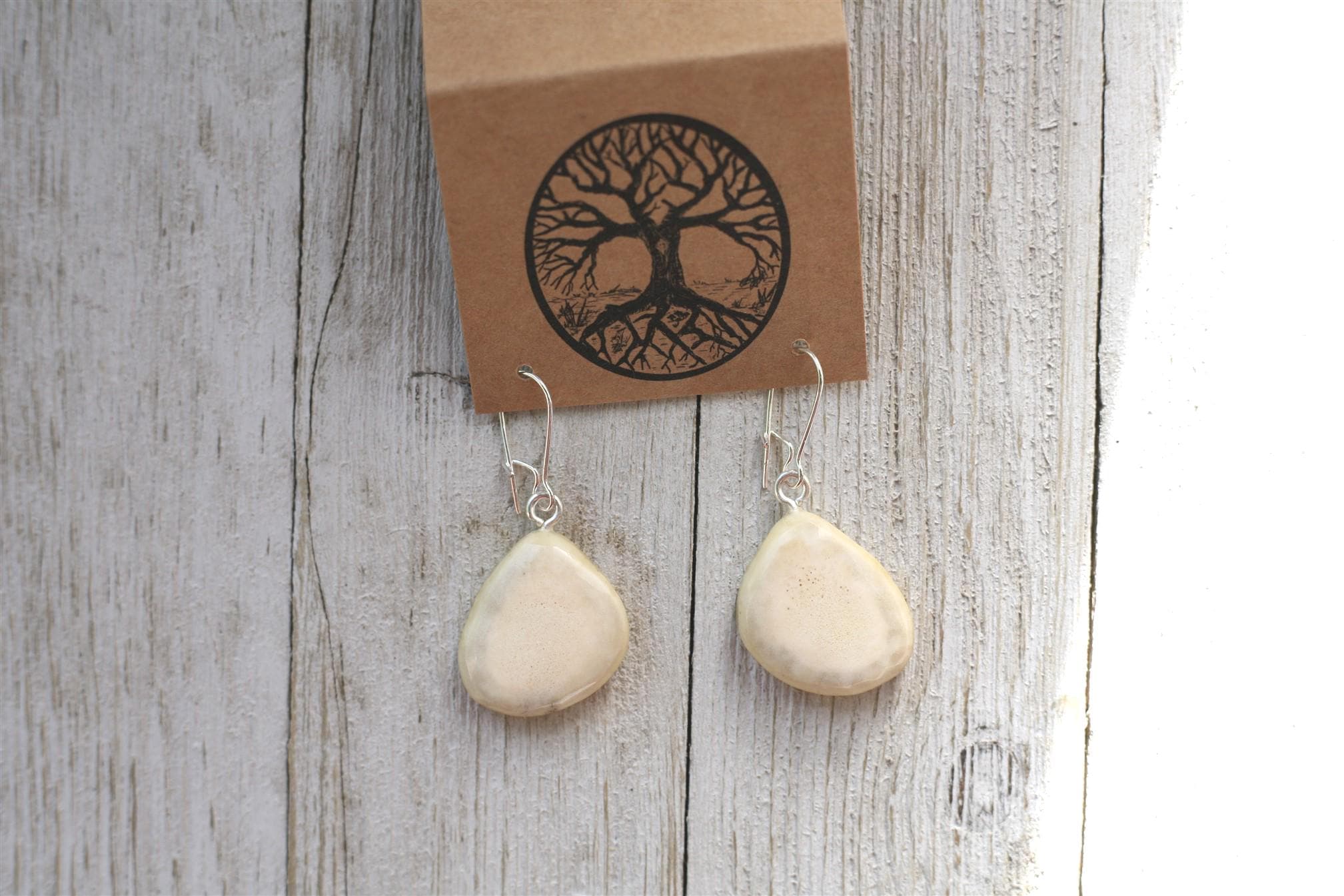 (Many of our earrings are surprisingly lightweight, even in the denser woods and antler, but if you are looking for our most lightweight earrings, the smaller size earrings and earrings in cedar wood are a good option.) These earrings come on sterling silver plated ear wires.