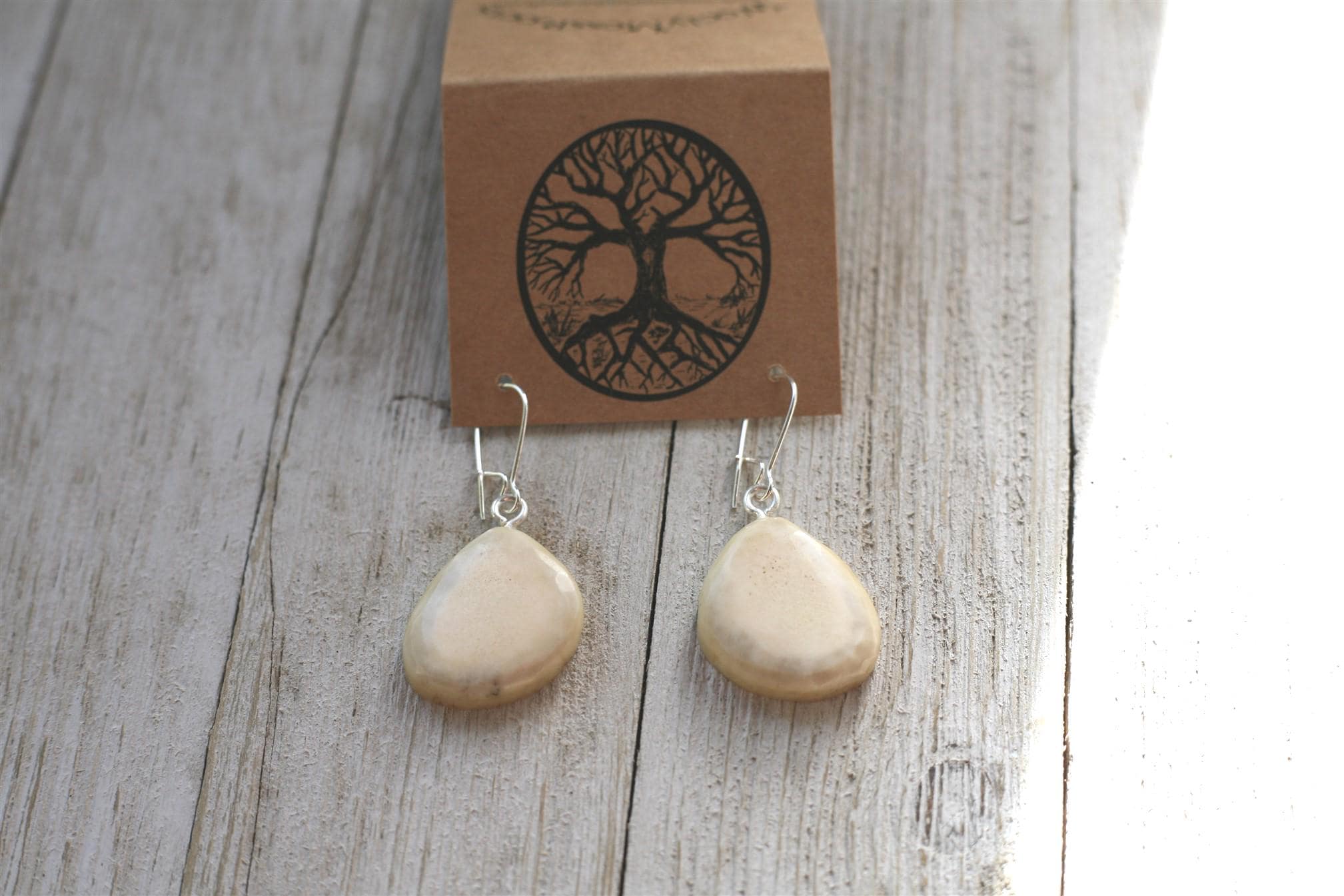 These earrings were created by my husband Jeff in shed deer antler. The shed antler feels so special to work with. The natural colors in the antler are so beautiful!