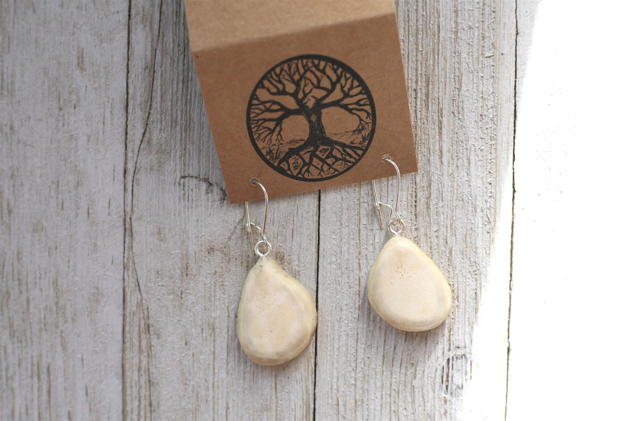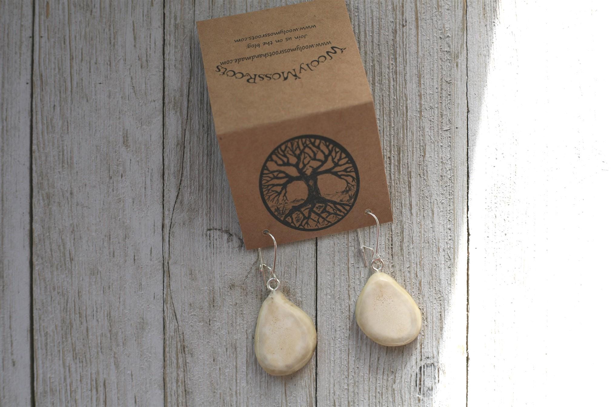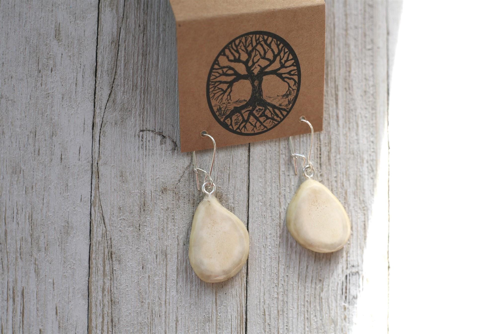 These earrings were created by my husband Jeff in shed deer antler. The shed antler feels so special to work with. The natural colors in the antler are so beautiful!