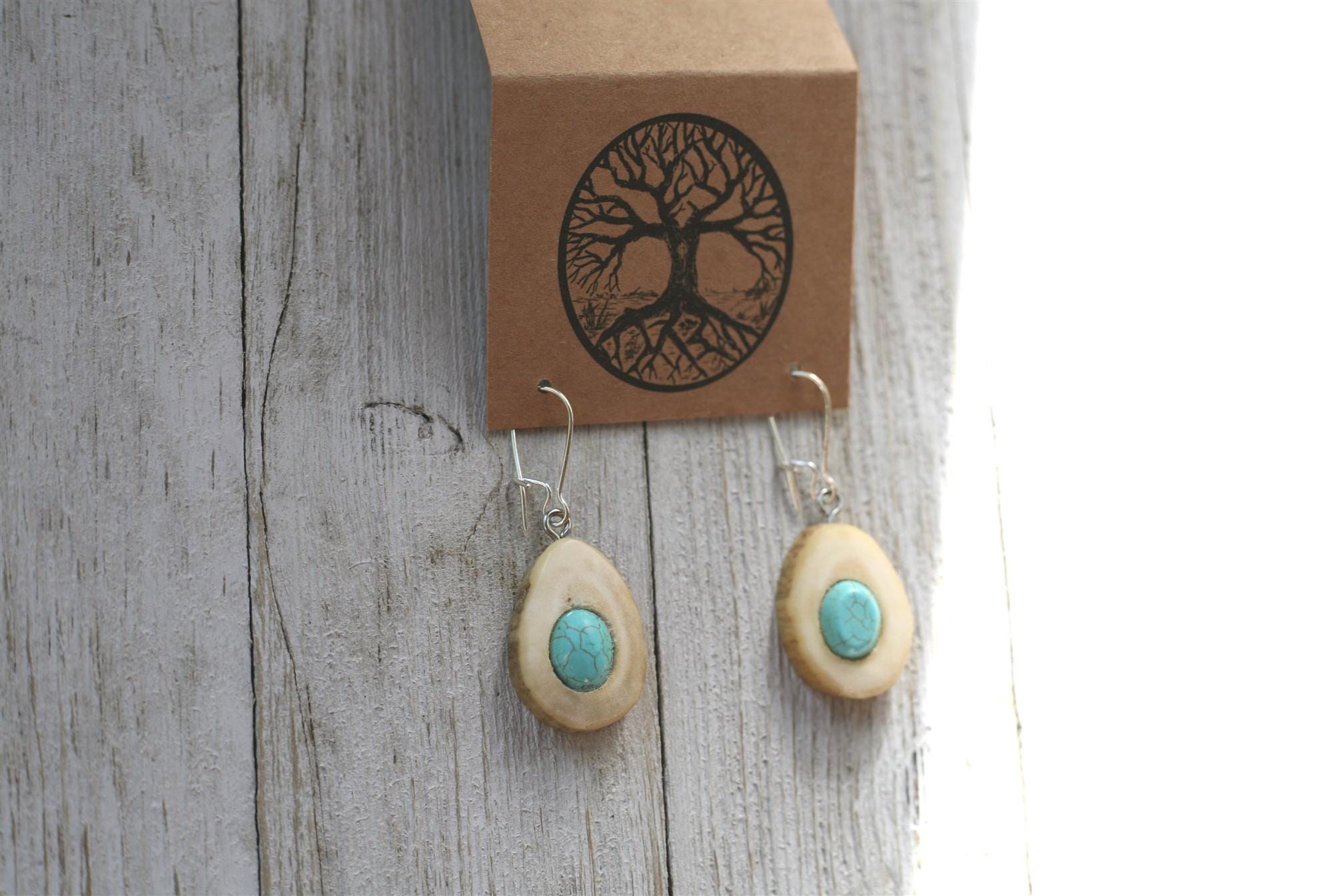 (Many of our earrings are surprisingly lightweight, even in the denser woods and antler, but if you are looking for our most lightweight earrings, the smaller size earrings and earrings in cedar wood are a good option.) These earrings come on sterling silver plated ear wires.
