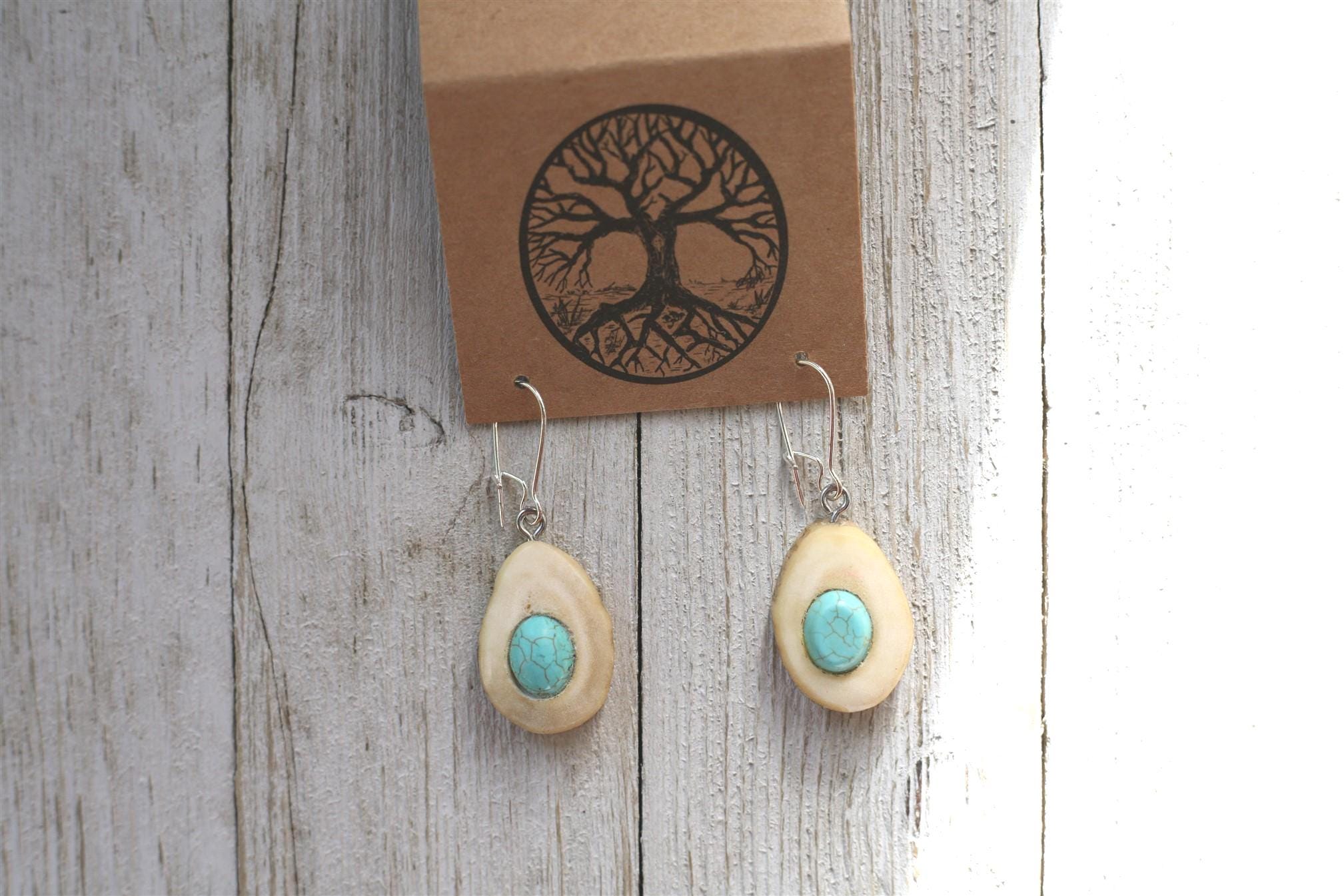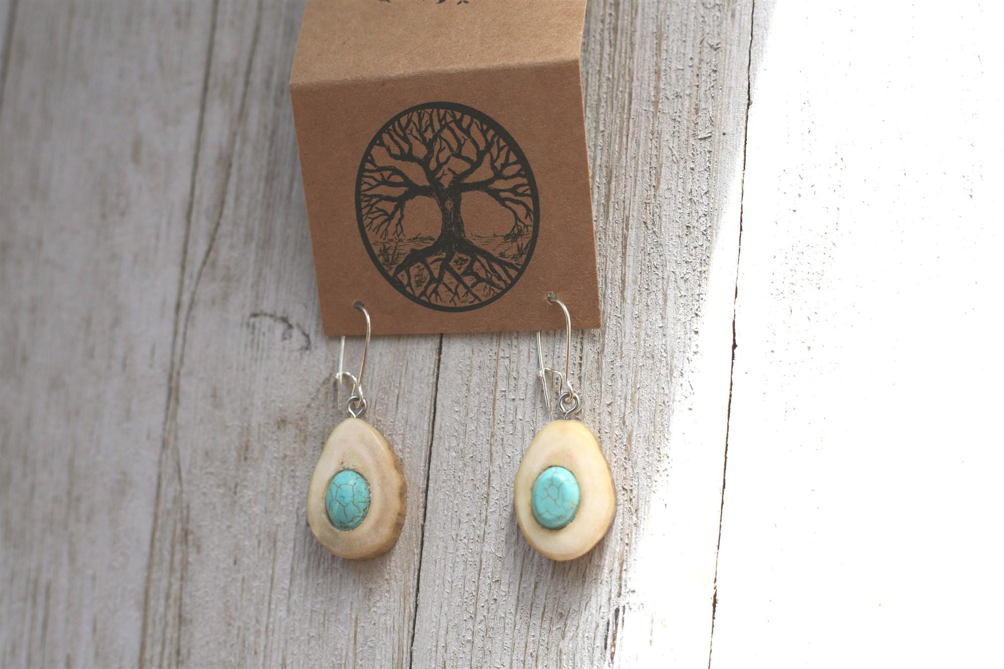 These earrings were created by my husband Jeff in shed deer antler. The shed antler feels so special to work with.