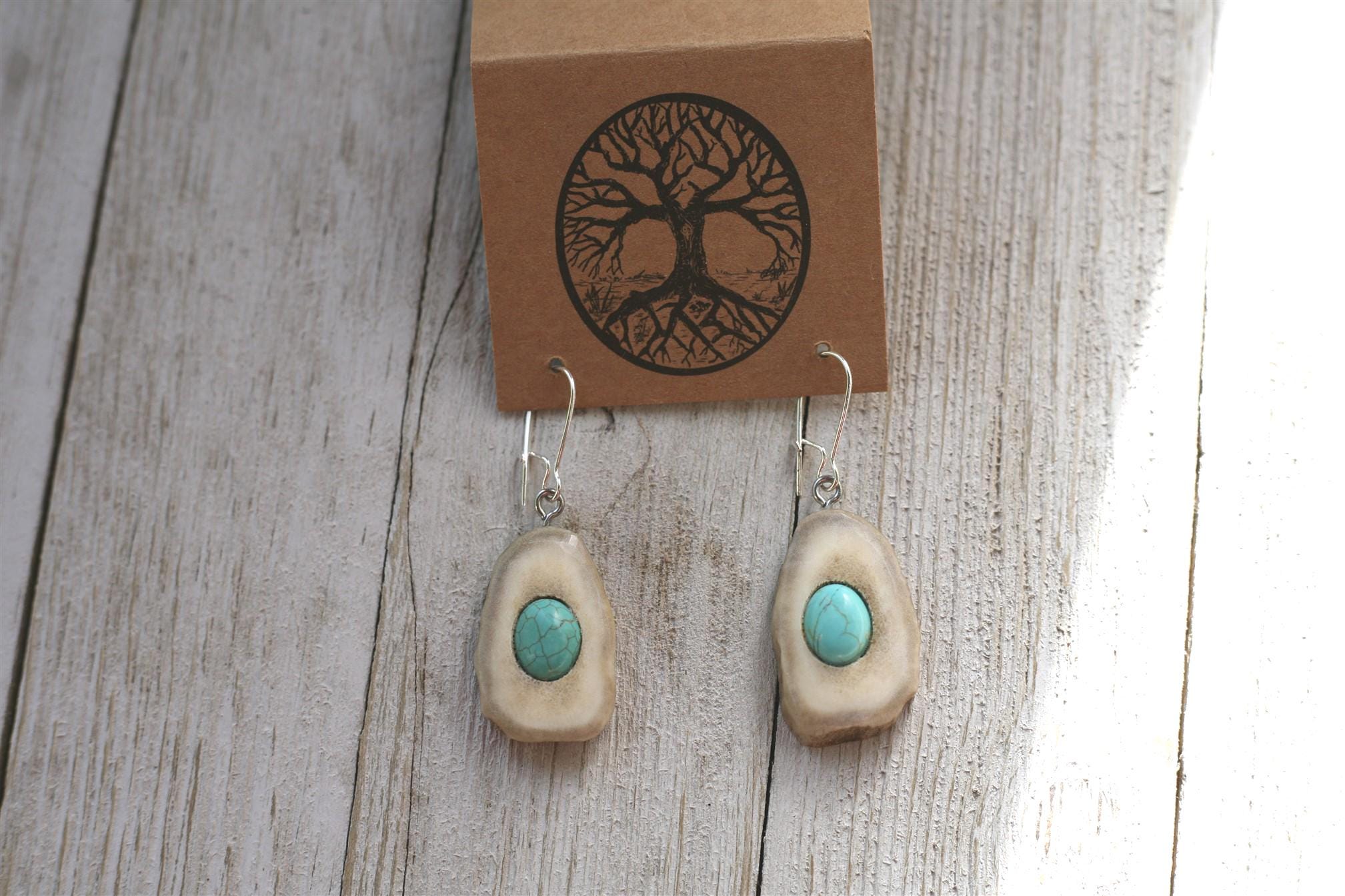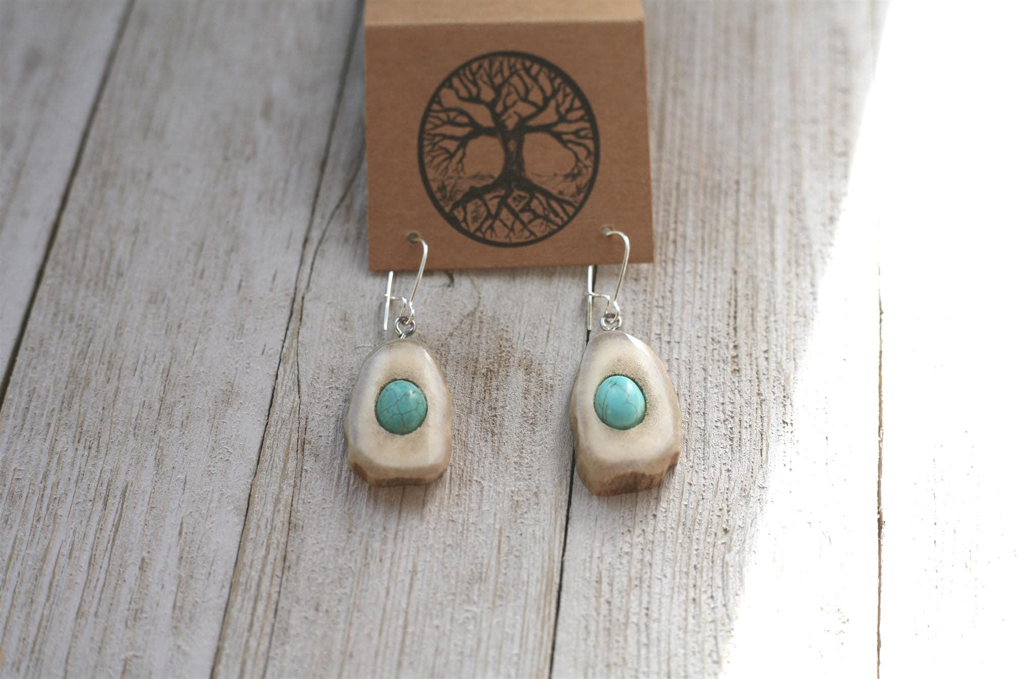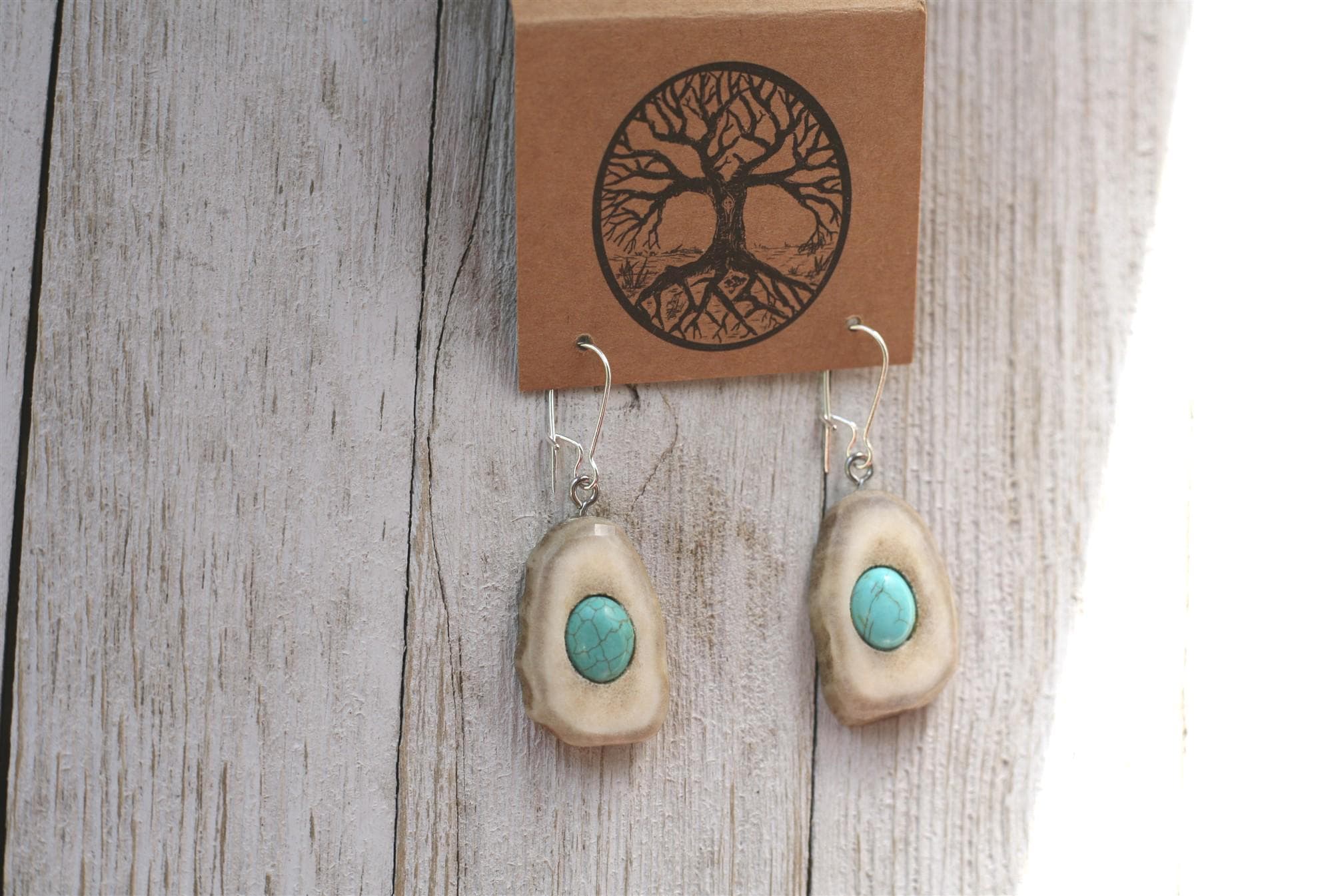 These earrings were created by my husband Jeff in shed deer antler. The shed antler feels so special to work with. This particular antler has a grey hue around the edges that I love. It's so beautiful. (This pair of earrings is one of my favorites...)