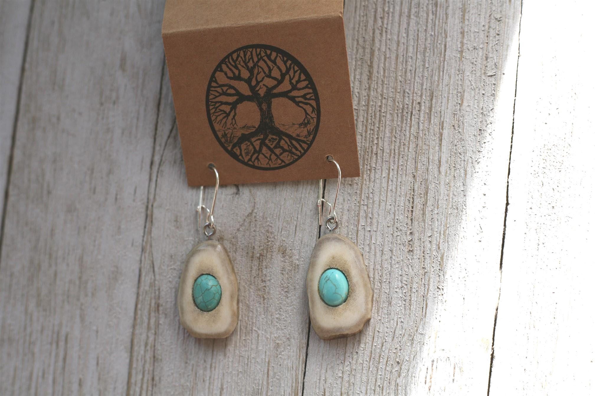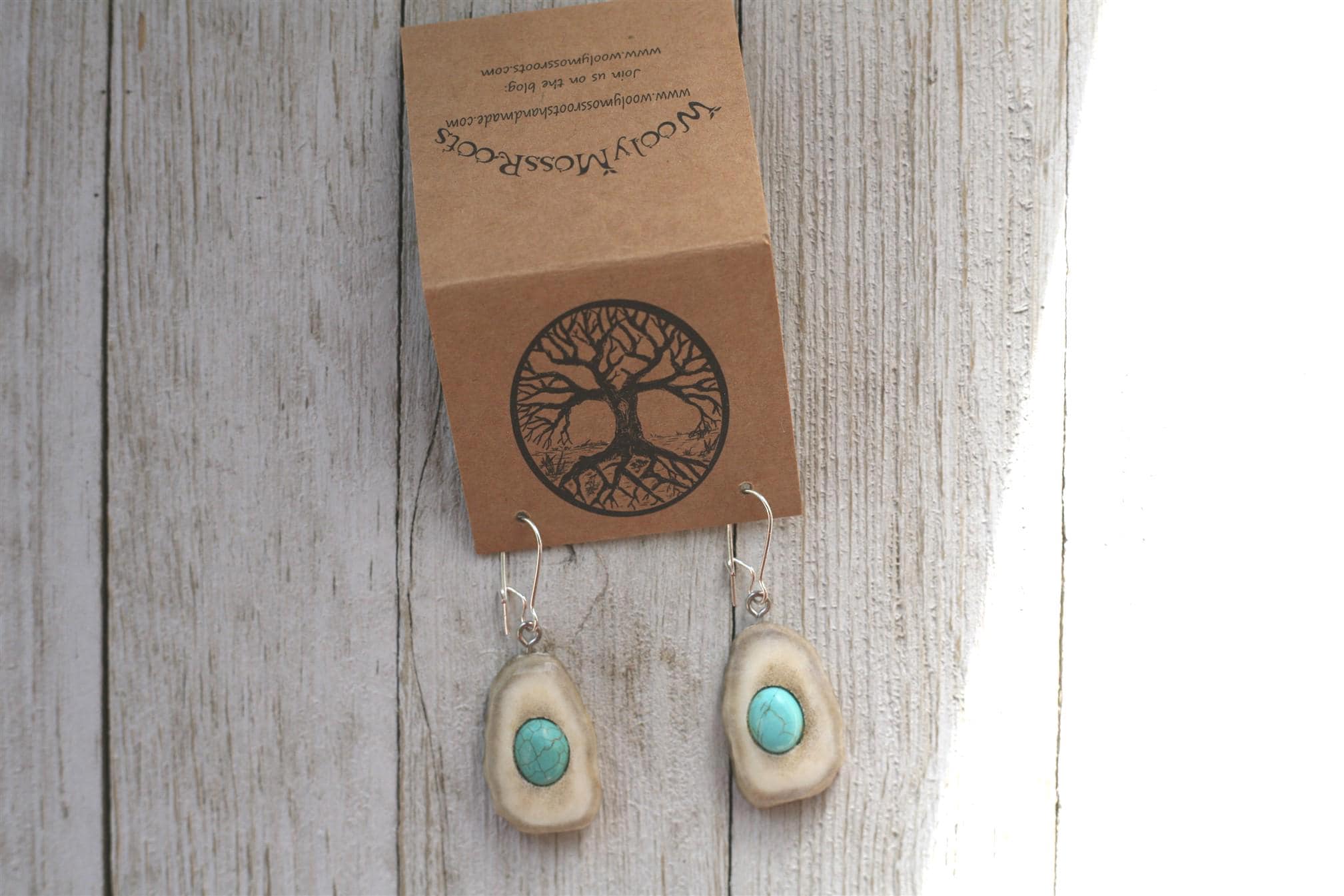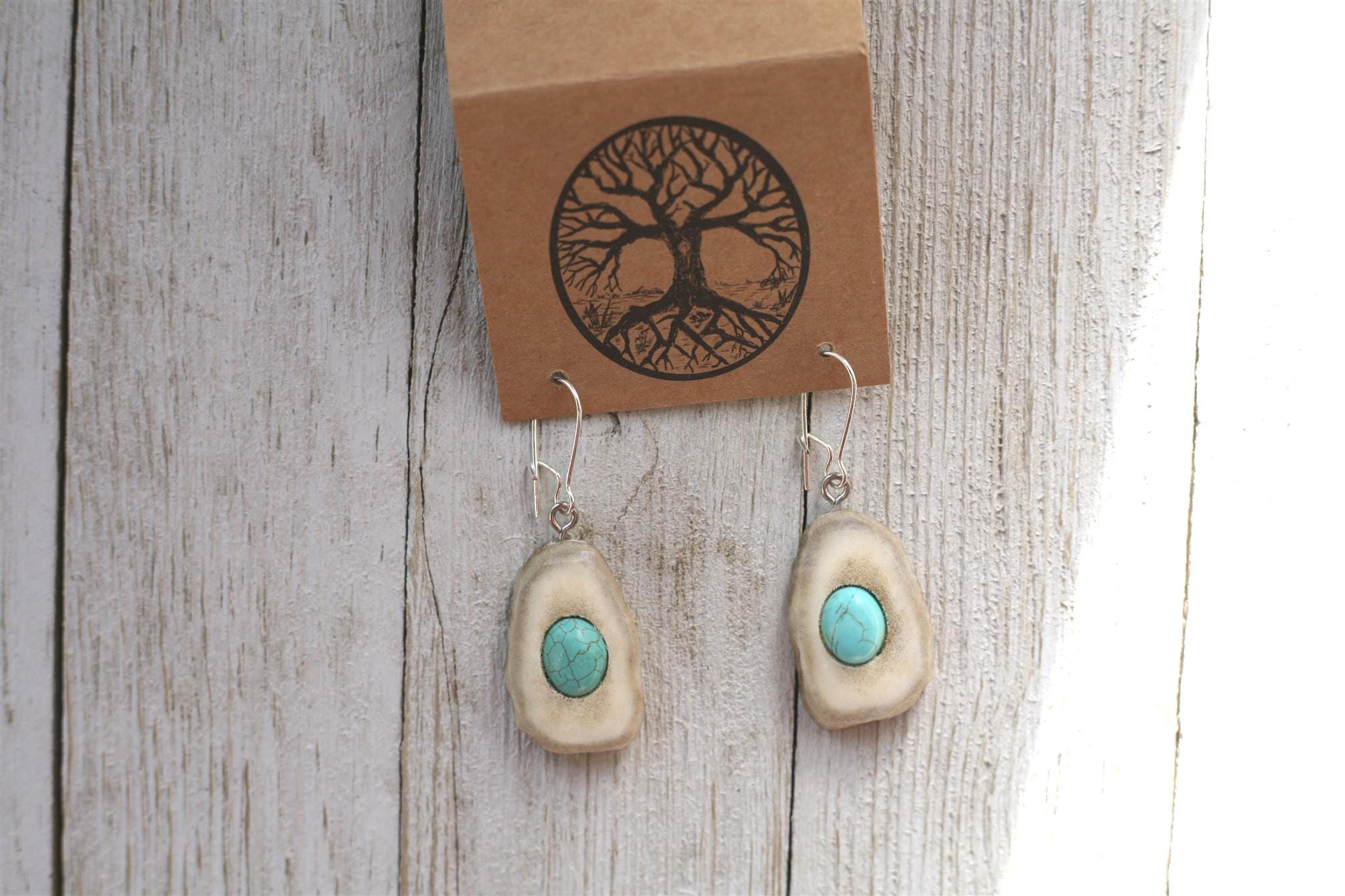 These earrings were created by my husband Jeff in shed deer antler. The shed antler feels so special to work with. This particular antler has a grey hue around the edges that I love. It's so beautiful. (This pair of earrings is one of my favorites...)