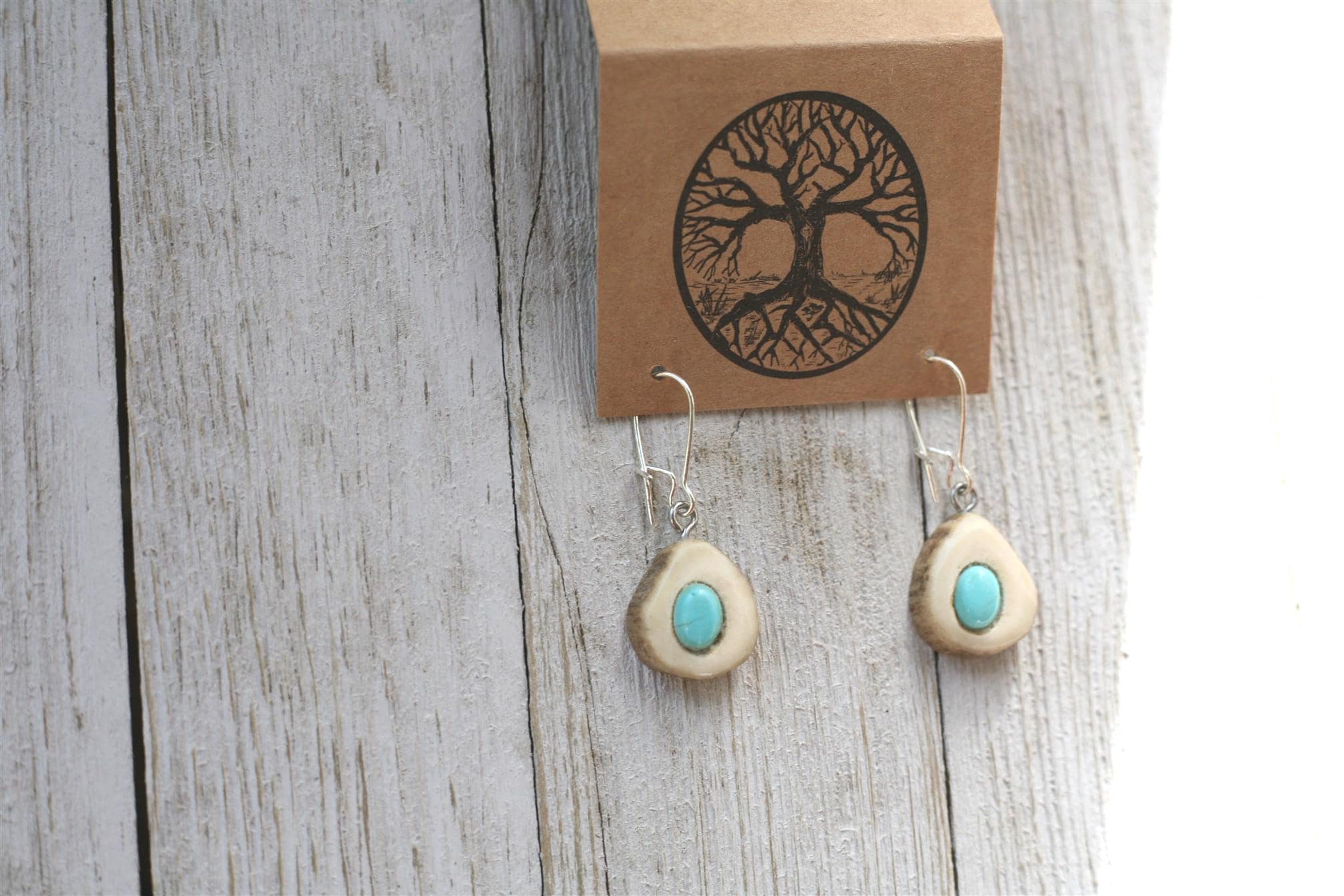 (Many of our earrings are surprisingly lightweight, even in the denser woods and antler, but if you are looking for our most lightweight earrings, the smaller size earrings and earrings in cedar wood are a good option.) These earrings come on sterling silver plated ear wires.