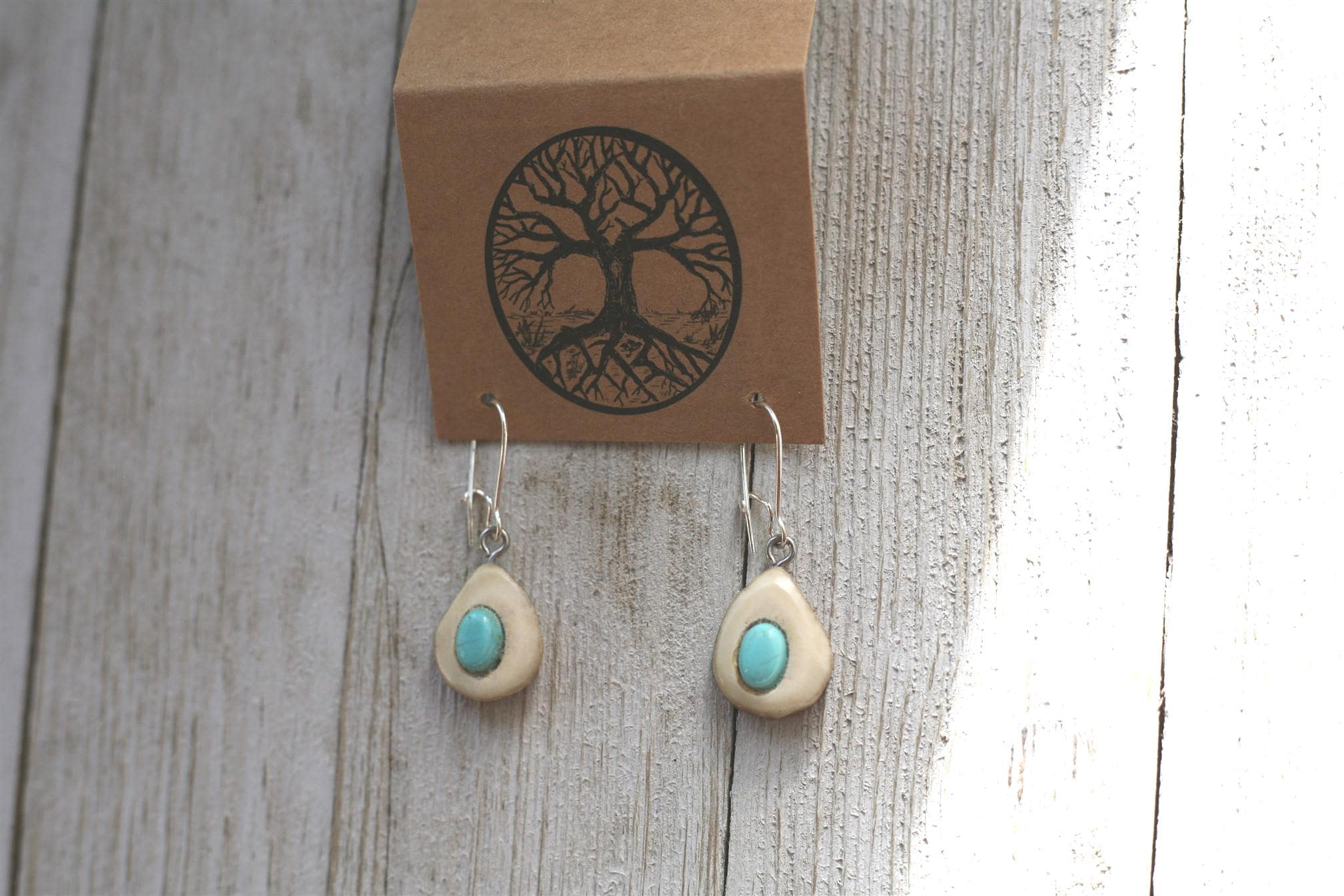 These earrings were created by my husband Jeff in shed deer antler. The shed antler feels so special to work with.