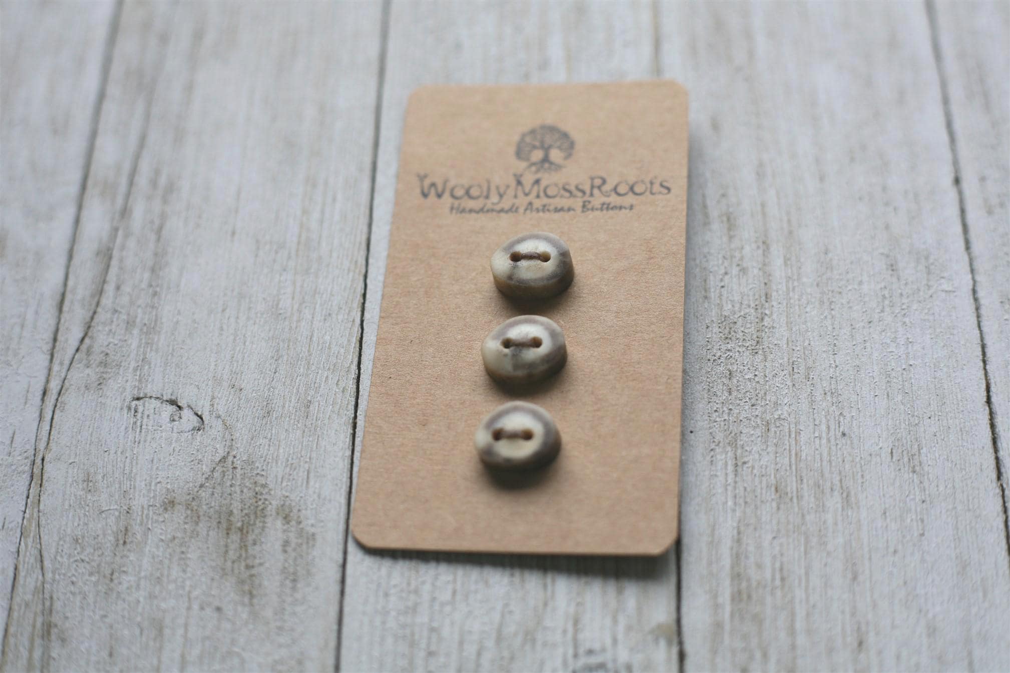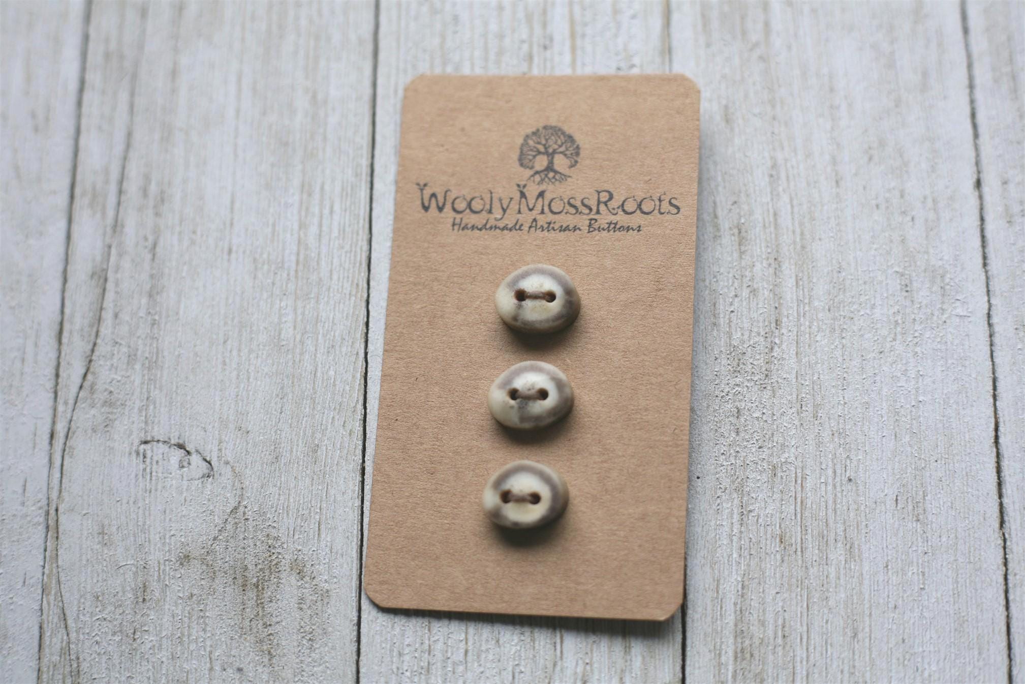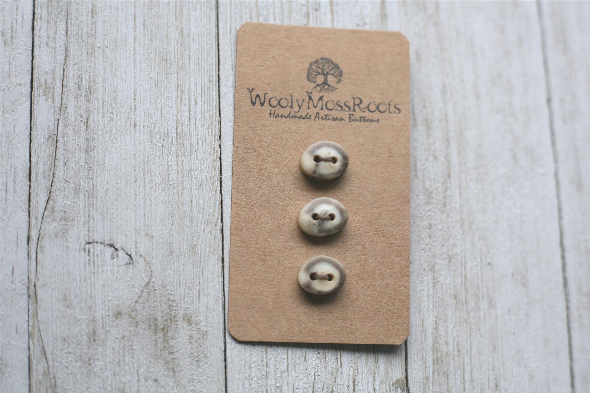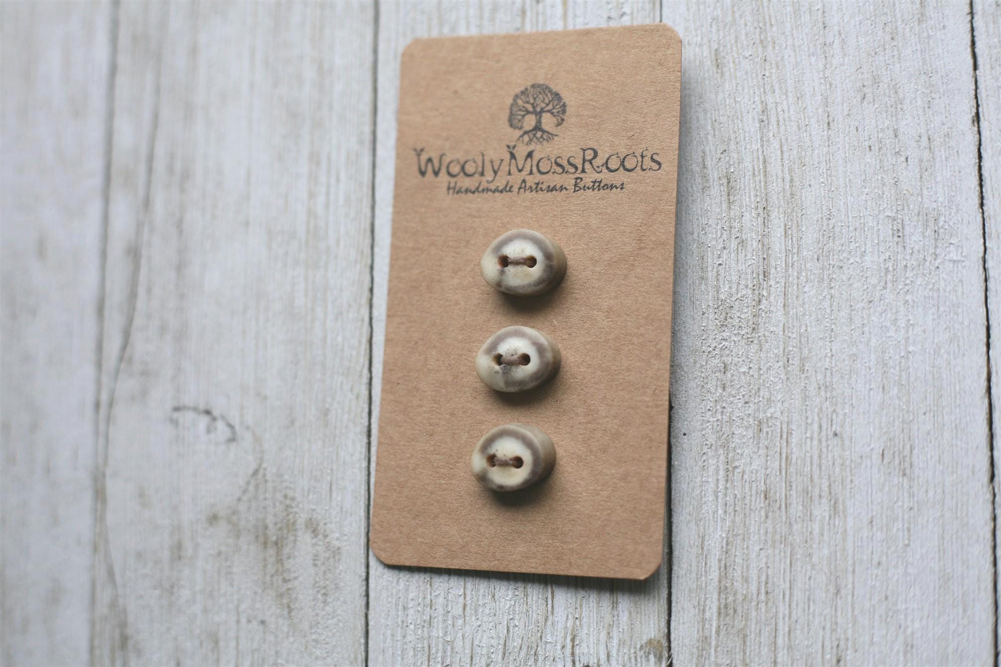 I absolutely love our antler buttons! These buttons were created by my husband Jeff in shed deer antler. Male deer shed their antlers once a year and grow back new ones. The antlers make incredible buttons, not only for how well they hold up, but also for how beautiful they are.