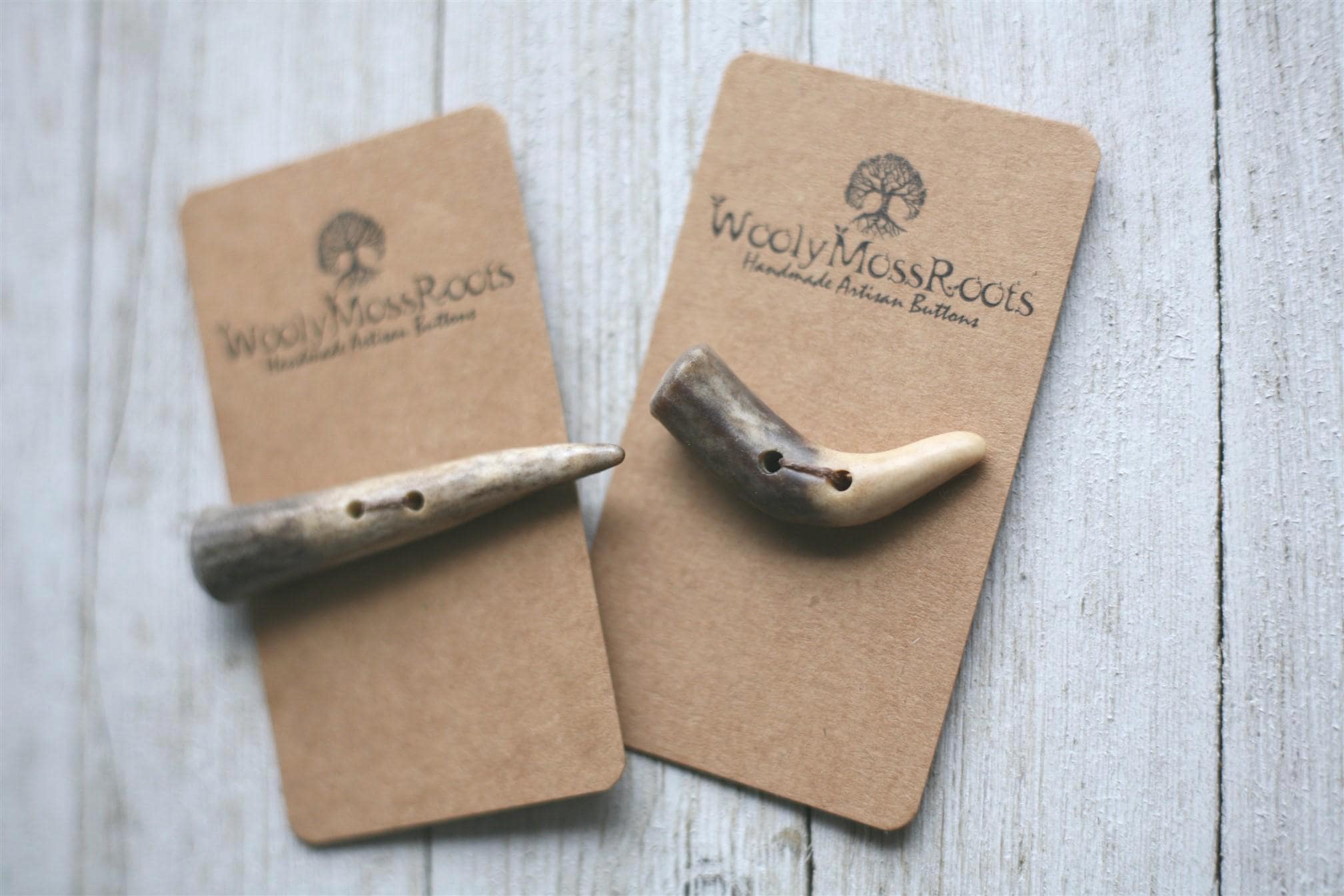 ~Care Instructions~ The antler buttons don't require the same care instructions as our wood buttons, which can dry out during washing. (Garments with the antler buttons can be turned inside out to protect the buttons- if planning to use the washing machine.)