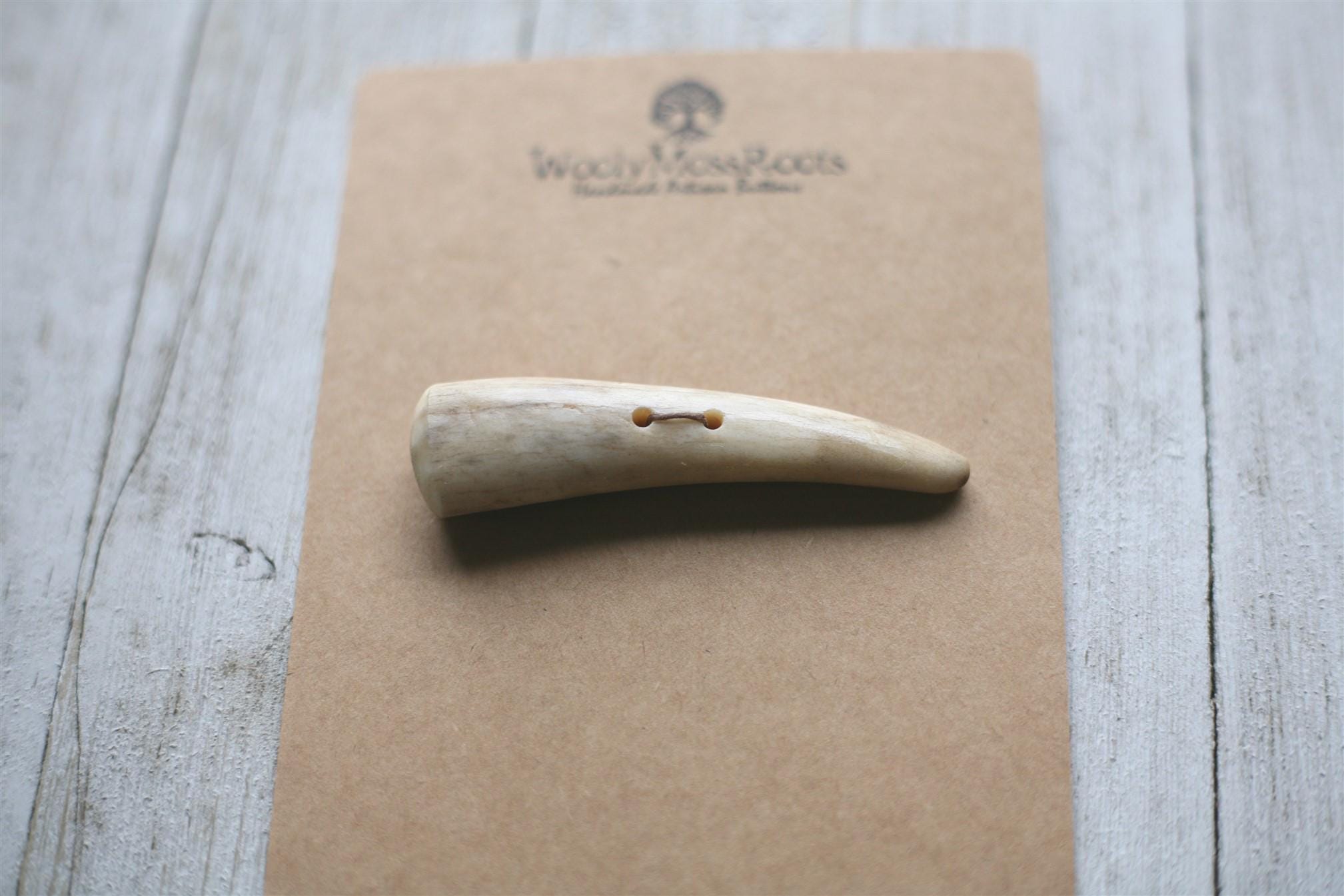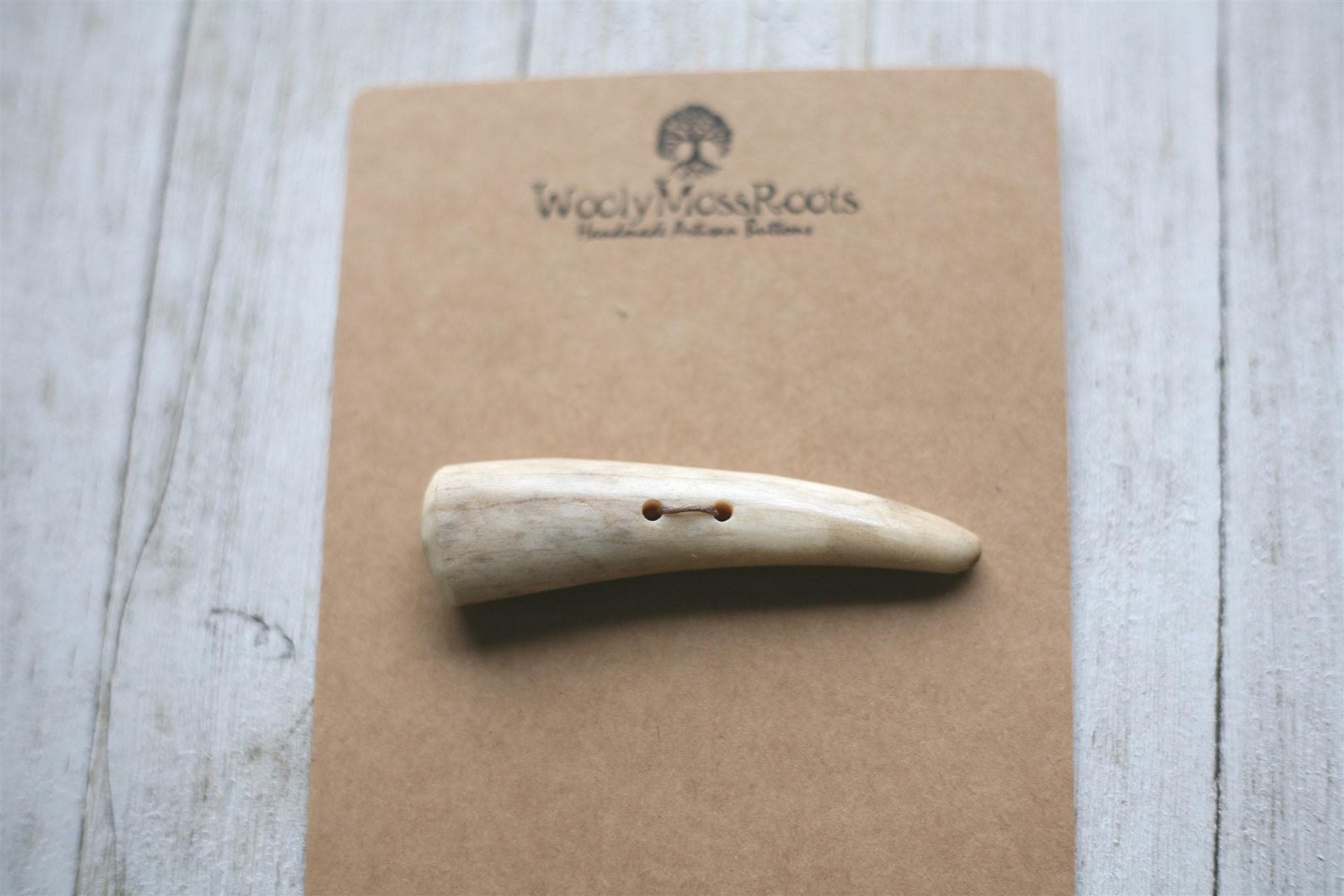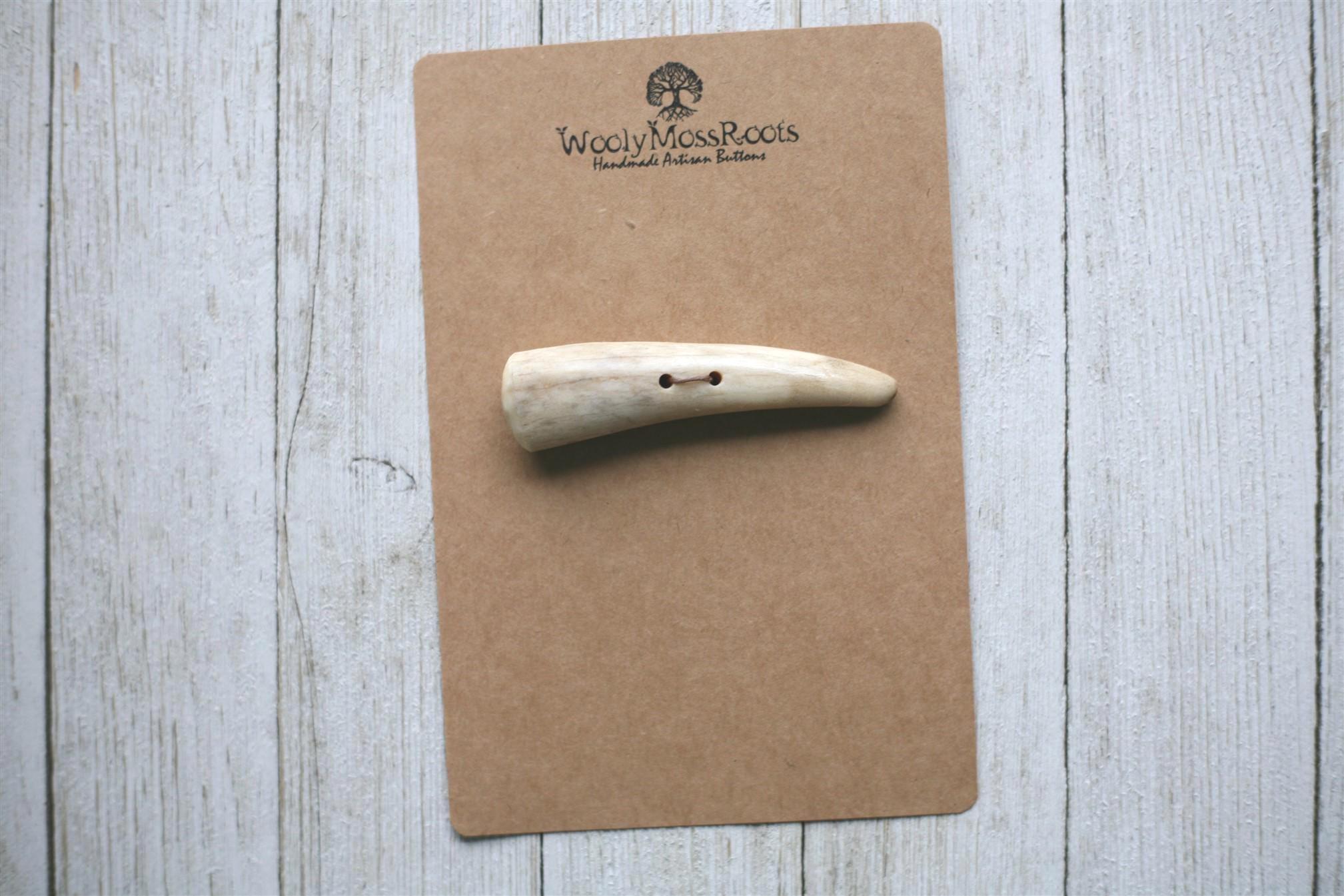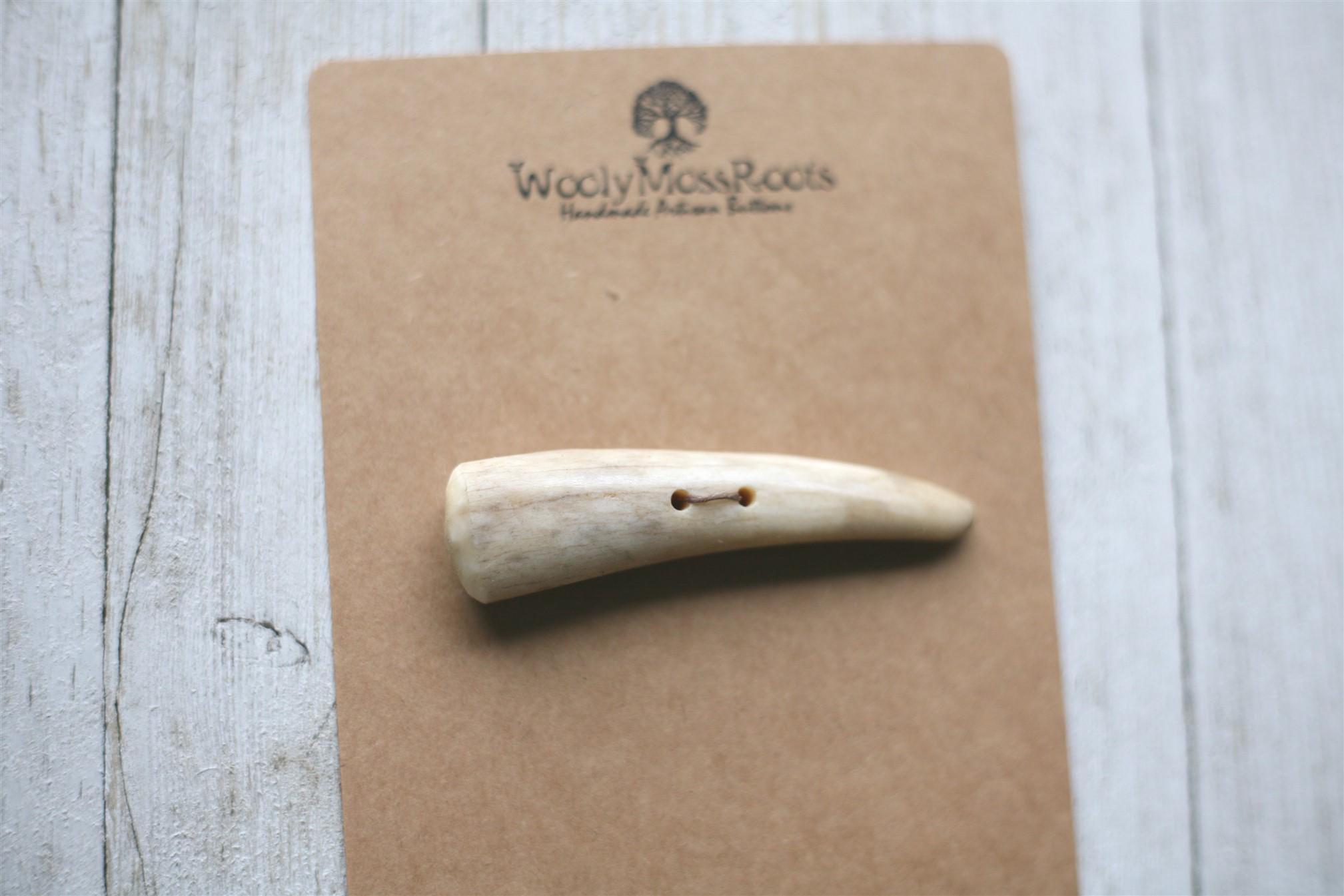 I absolutely love our antler toggle buttons! My husband Jeff and I (Taryn) create these toggles together in shed deer antler. Male deer shed their antlers once a year and grow back new ones. The antlers make incredible buttons, not only for how well they hold up, but also for how beautiful they are.