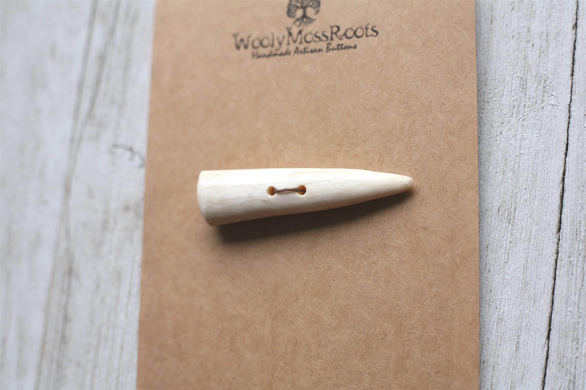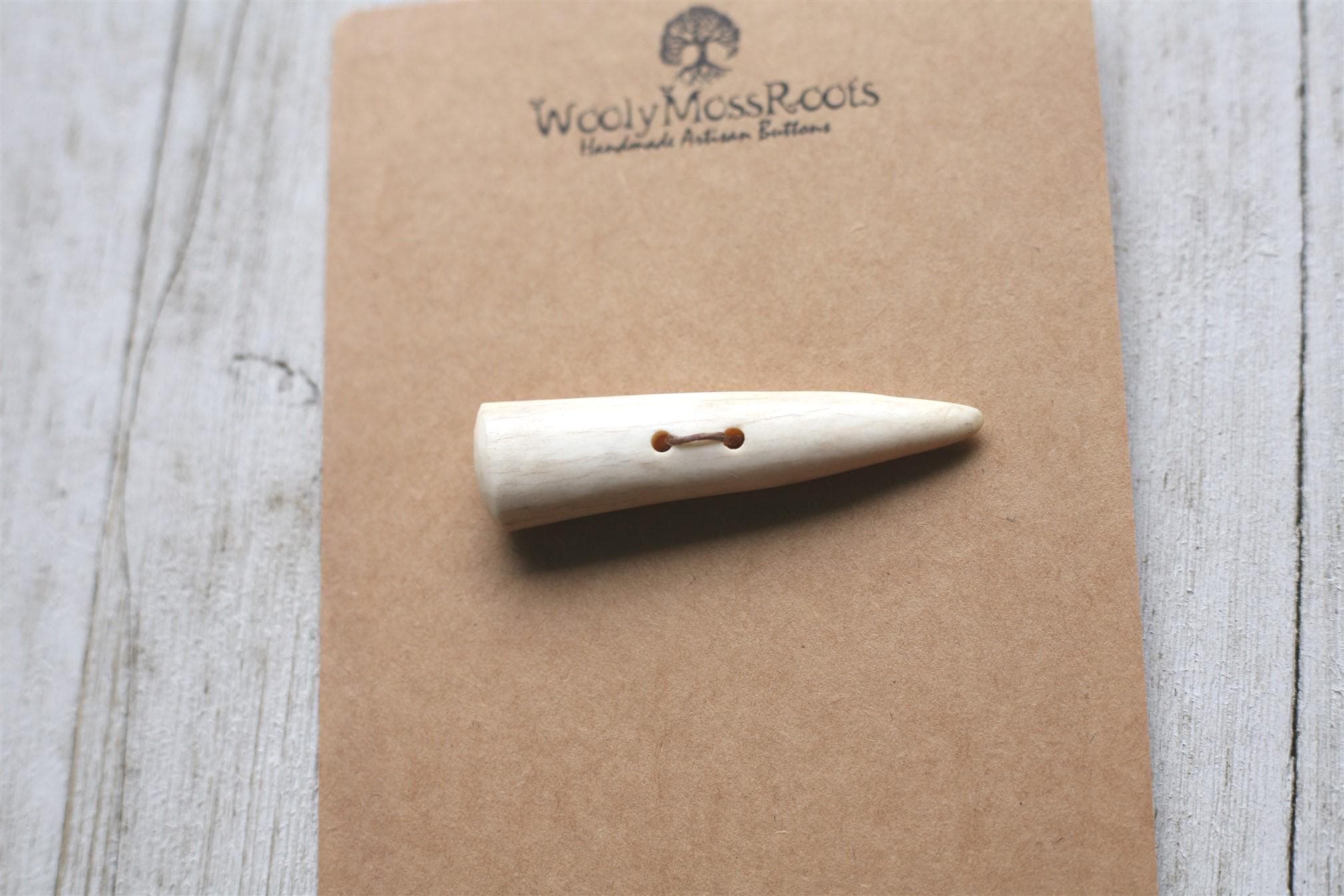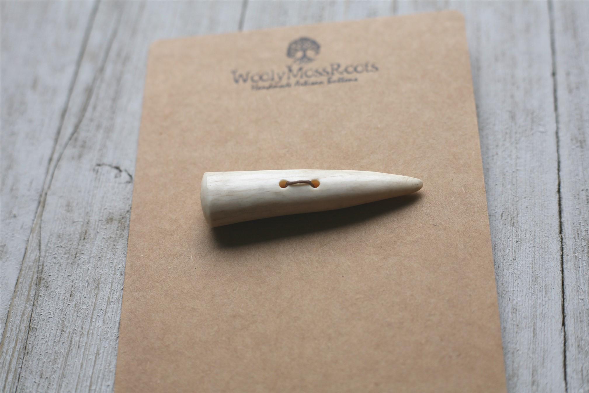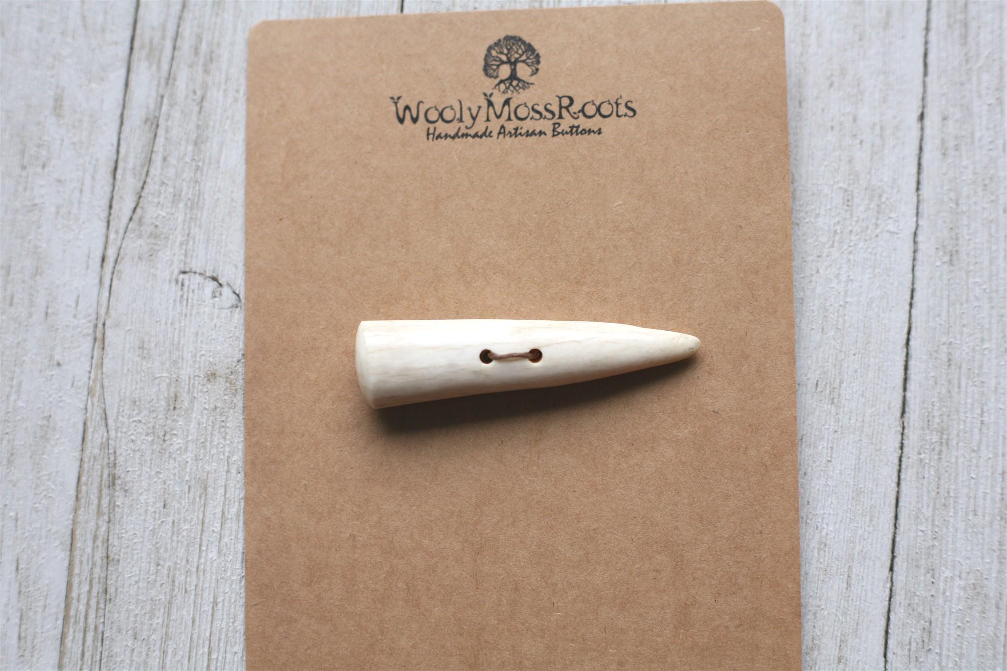 We absolutely love our antler toggle buttons! My husband Jeff and I (Taryn) create these toggles together in shed deer antler. Male deer shed their antlers once a year and grow back new ones. The antlers make incredible buttons, not only for how well they hold up, but also for how beautiful they are.