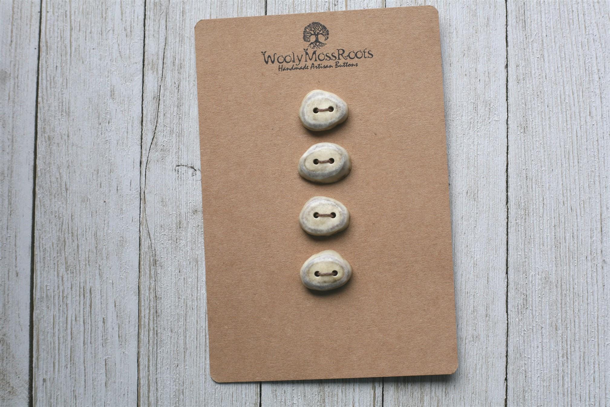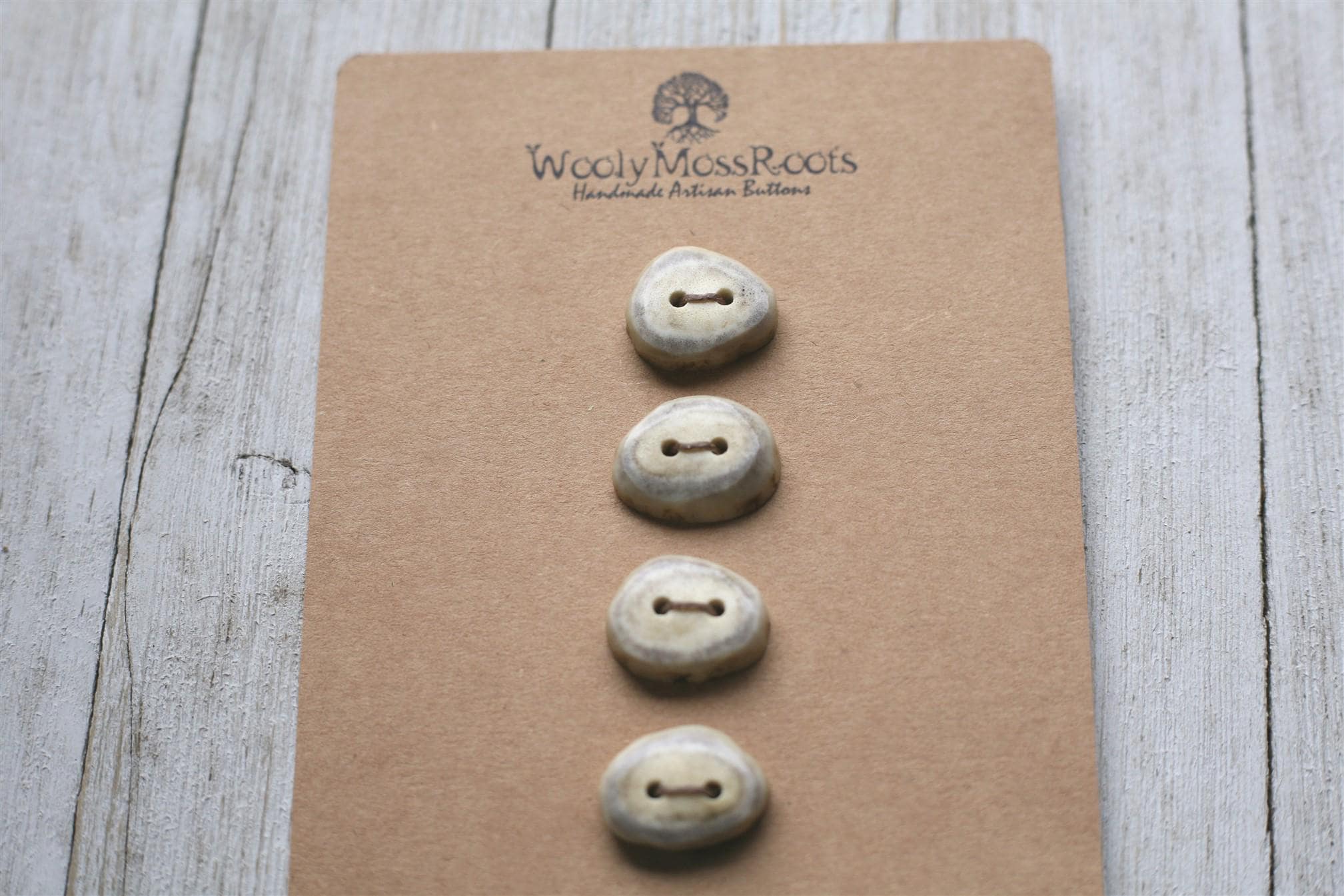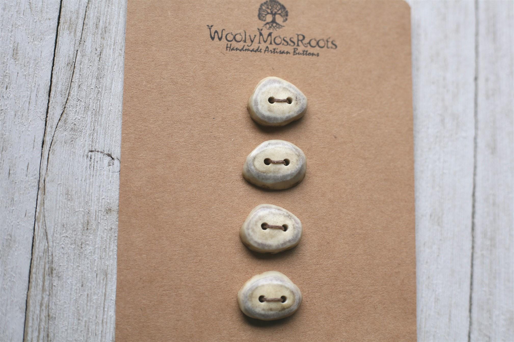 We absolutely love the antler buttons we offer! These buttons were created by my husband Jeff and I (Taryn) in shed deer antler. Male deer shed their antlers once a year and grow back new ones. The antlers make incredible buttons, not only for how well they hold up, but also for how beautiful they are.