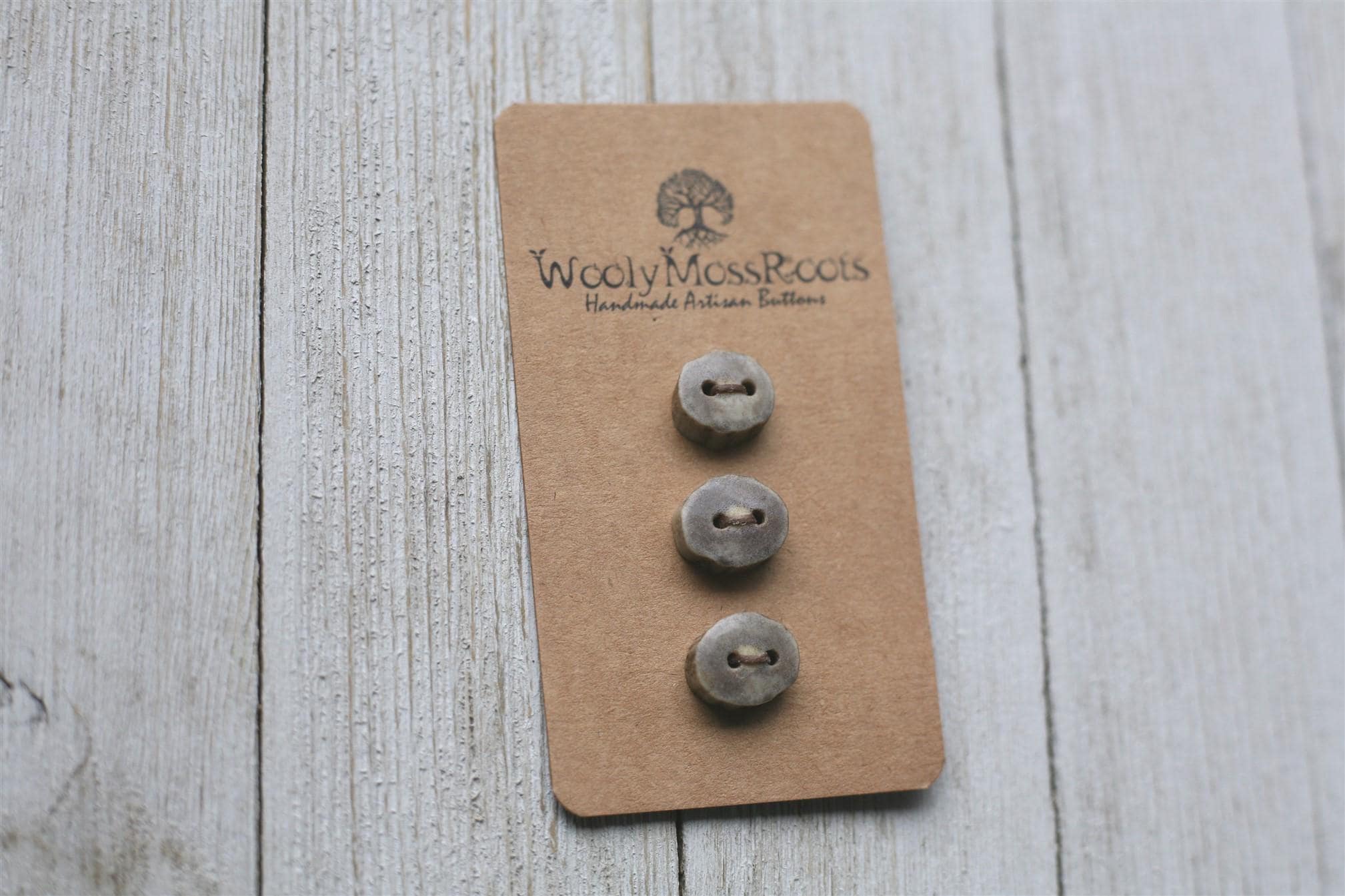 These are among the tiniest antler buttons that we've made, and they are quite challenging to sand at that size. The extra efforts make for some amazing buttons!