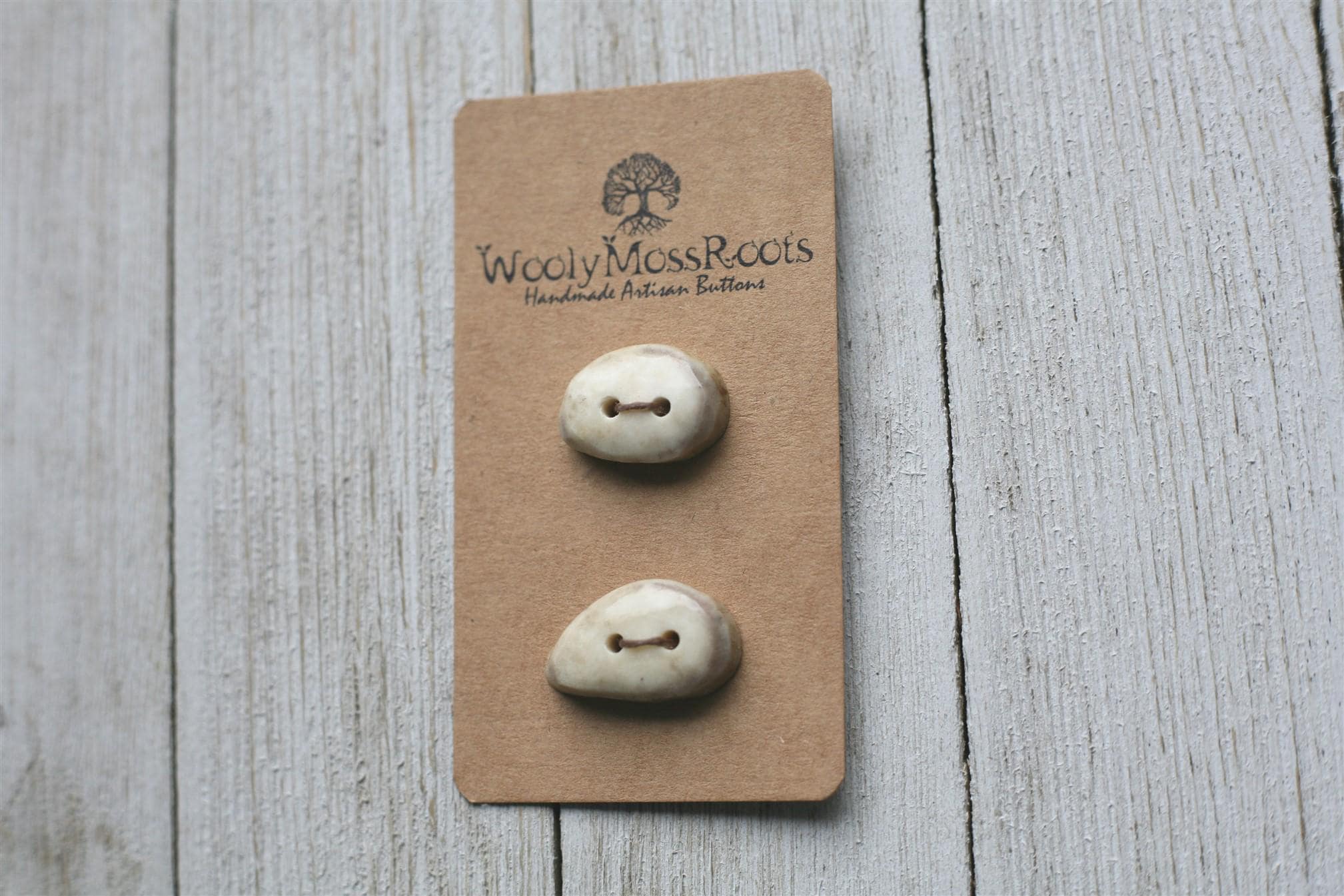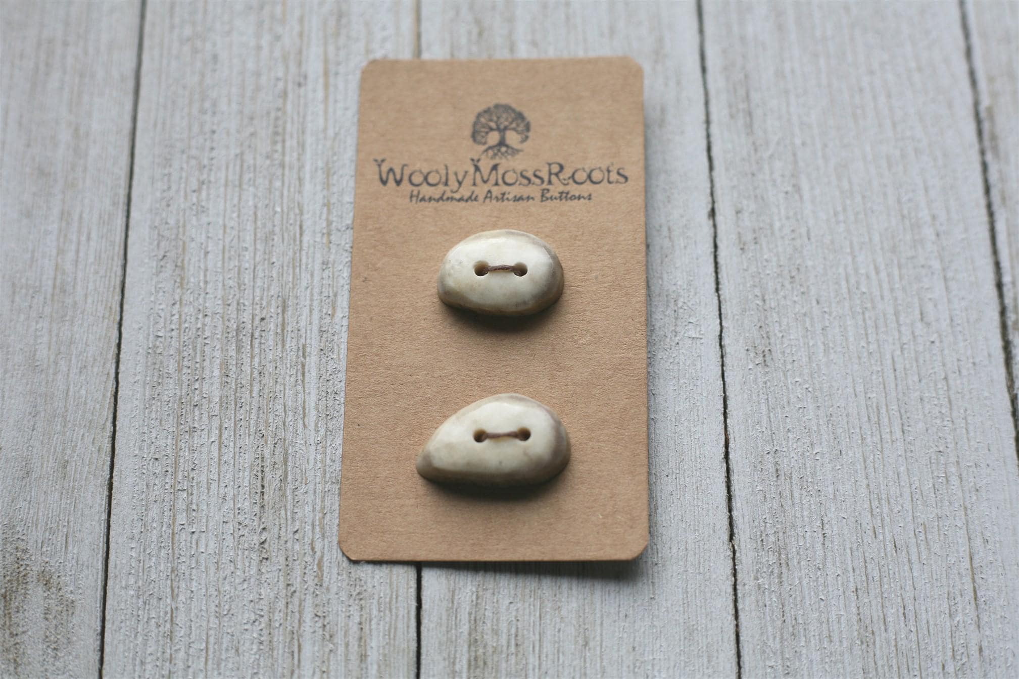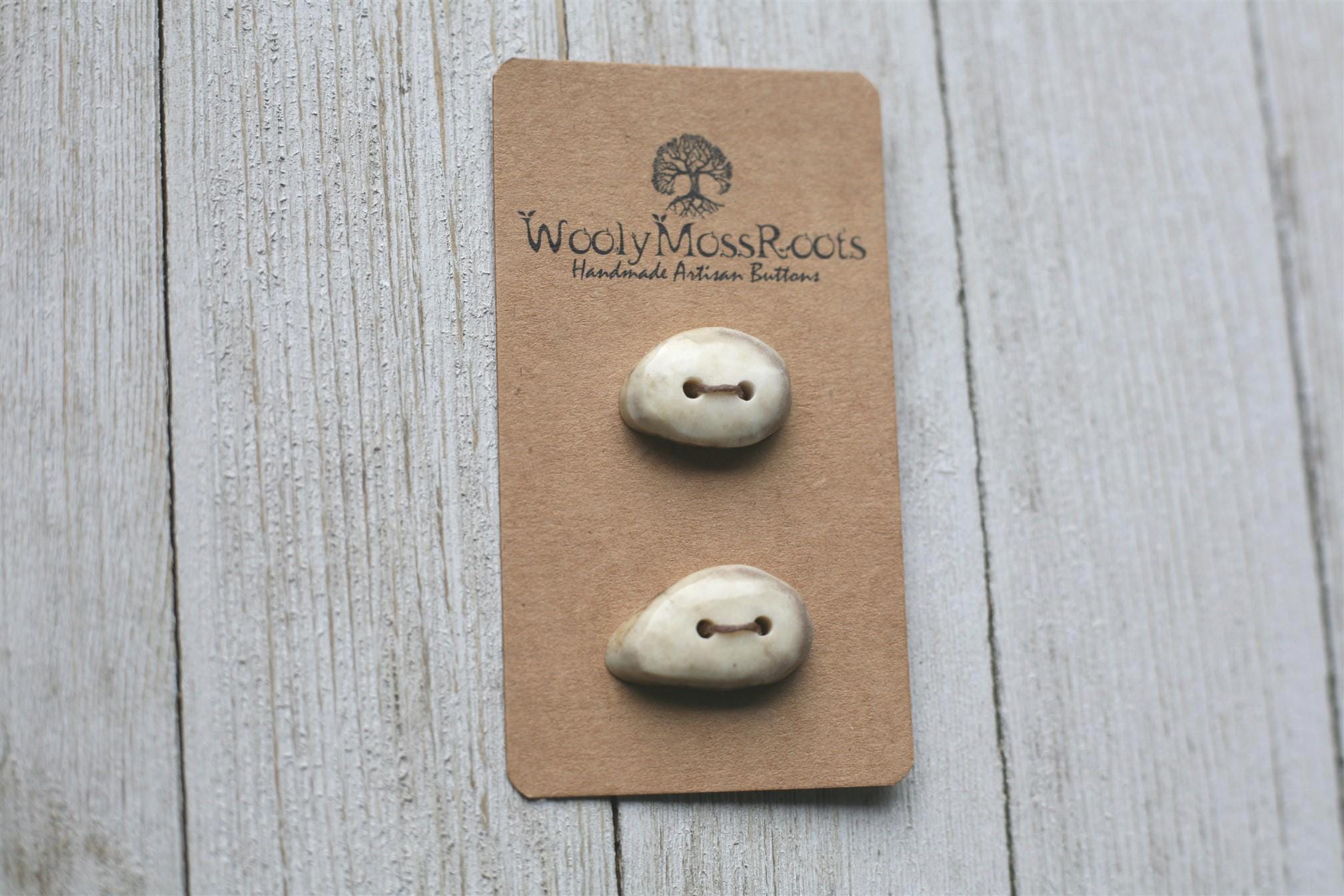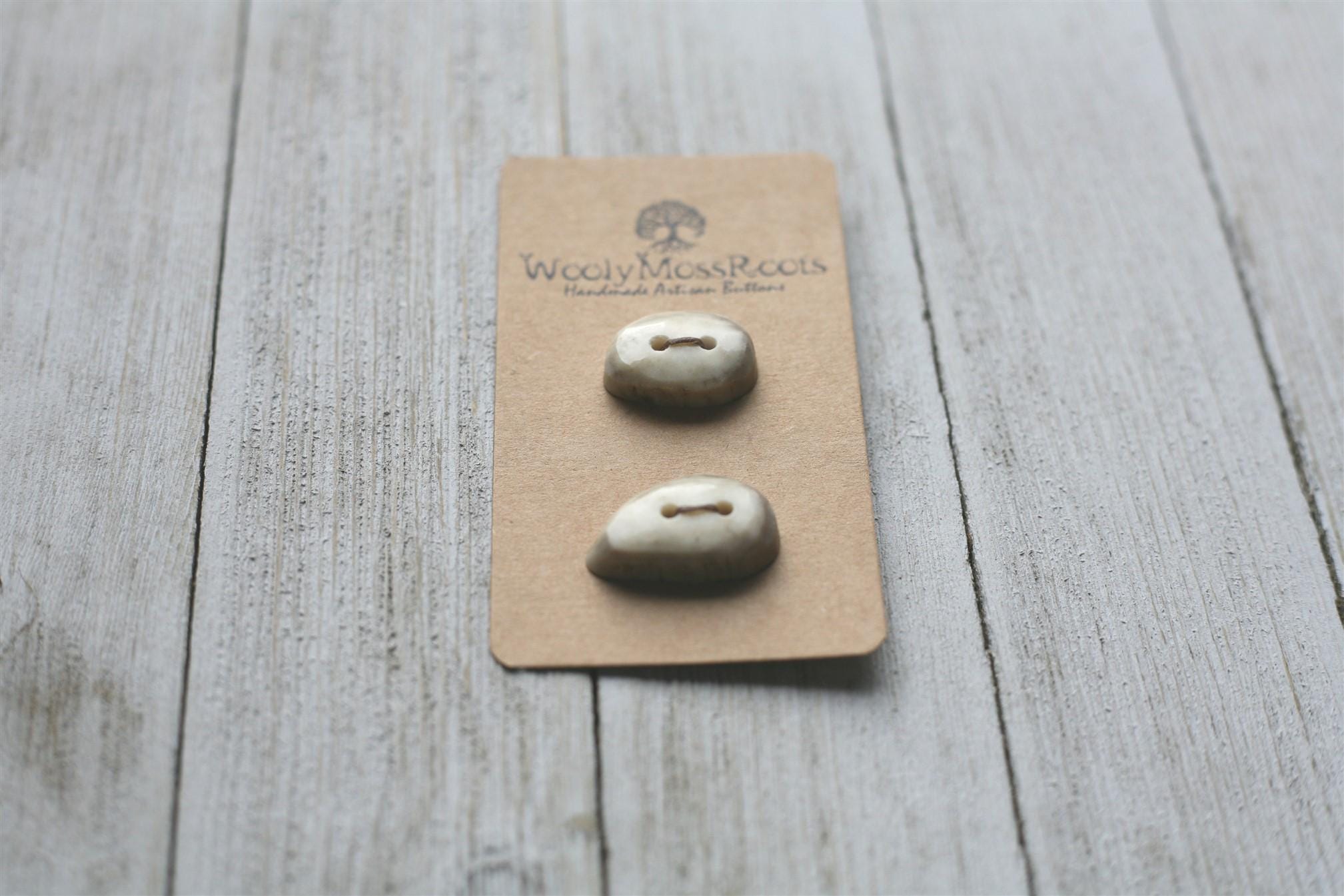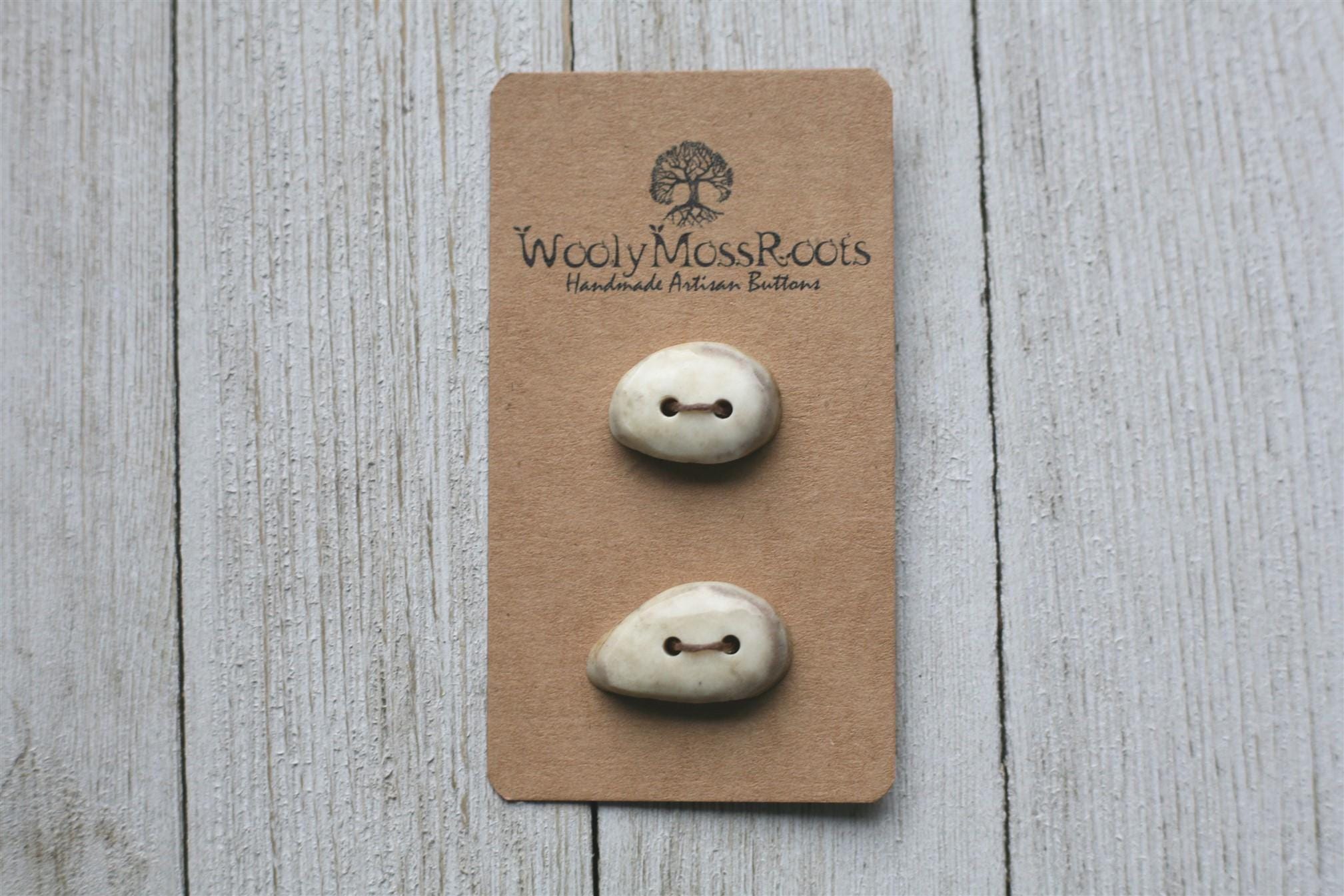 We absolutely love the antler buttons we offer! These buttons were created by my husband Jeff and I (Taryn) in shed deer antler. Male deer shed their antlers once a year and grow back new ones. The antlers make incredible buttons, not only for how well they hold up, but also for how beautiful they are.