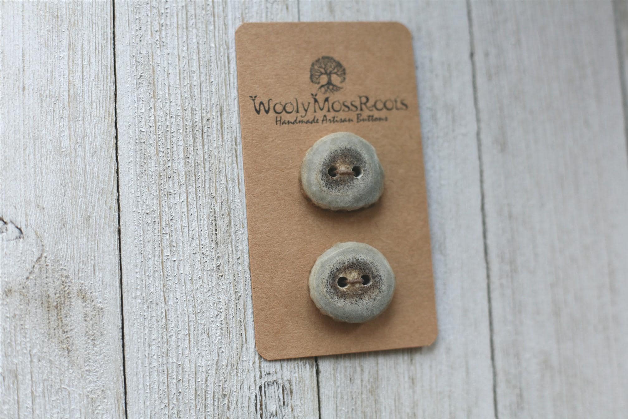 We absolutely love the antler buttons we offer! These buttons were created by my husband Jeff and I (Taryn) in shed deer antler. Male deer shed their antlers once a year and grow back new ones. The antlers make incredible buttons, not only for how well they hold up, but also for how beautiful they are.
