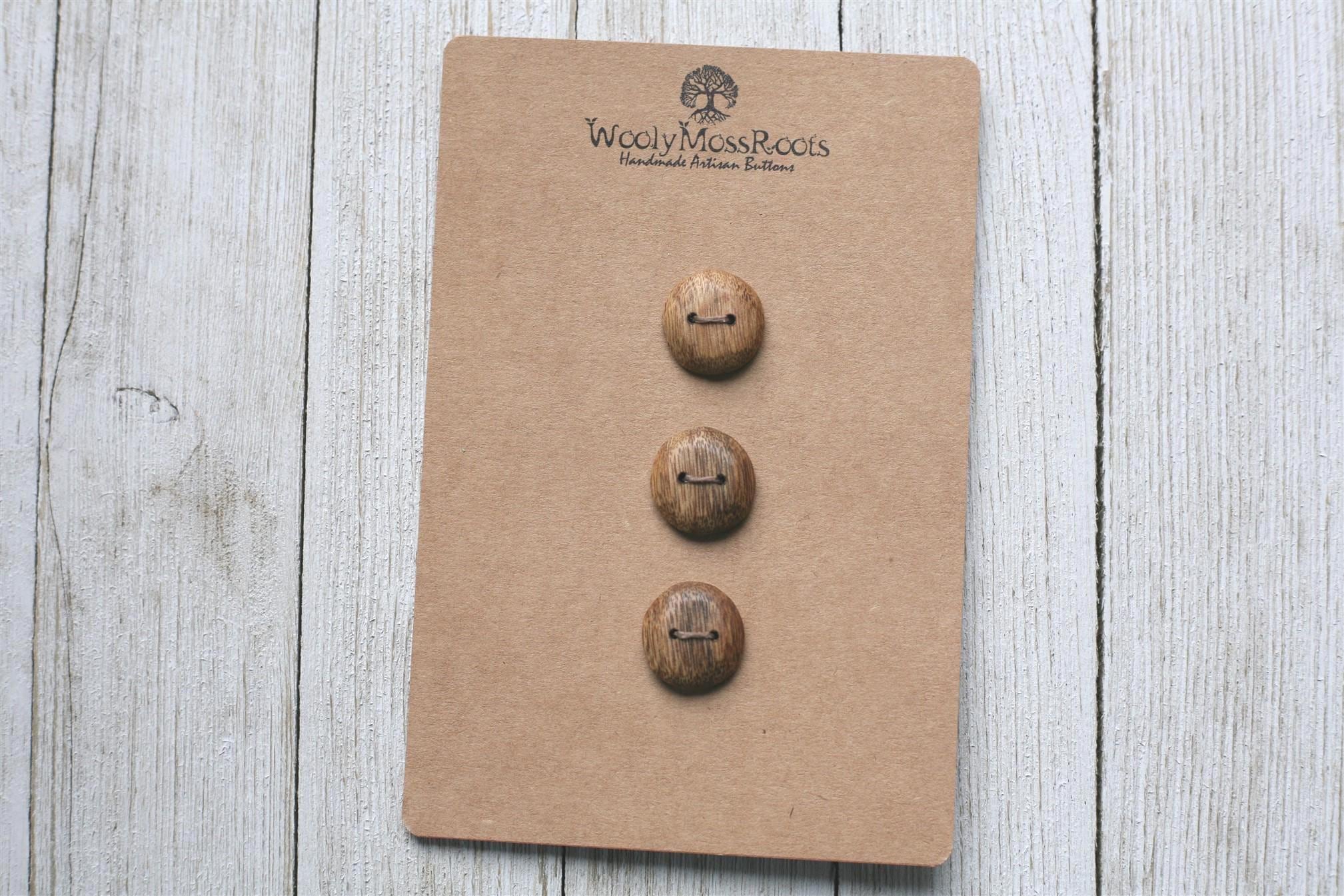 These wooden buttons were created by my husband Jeff in Oregon myrtlewood. This type of Myrtlewood is special in that it only grows in southern Oregon and northern California, along the coast.