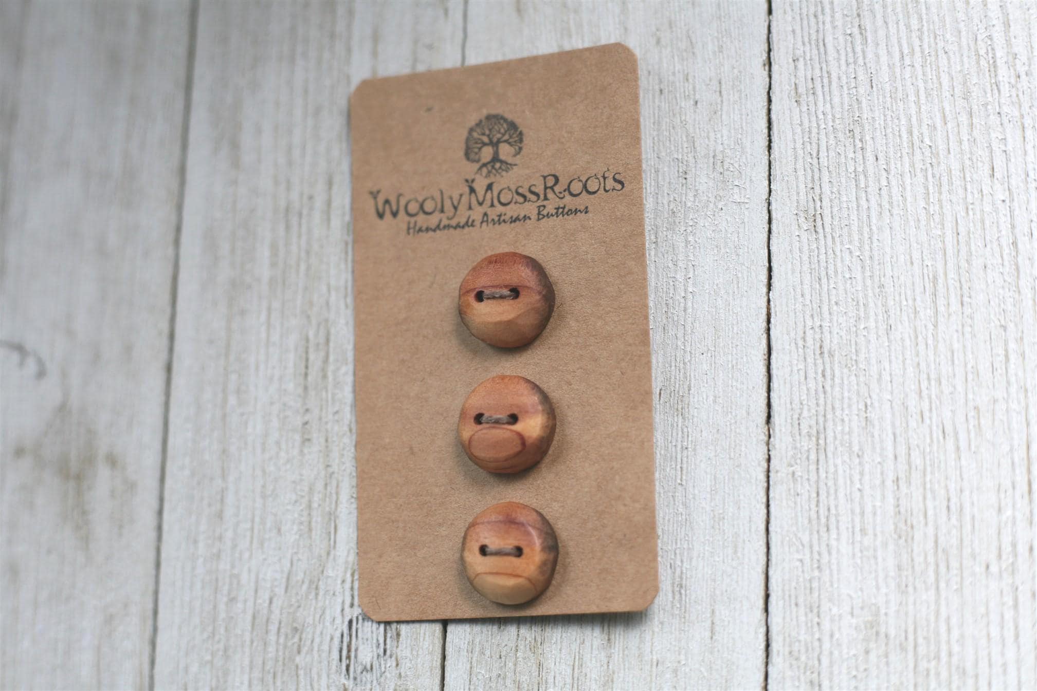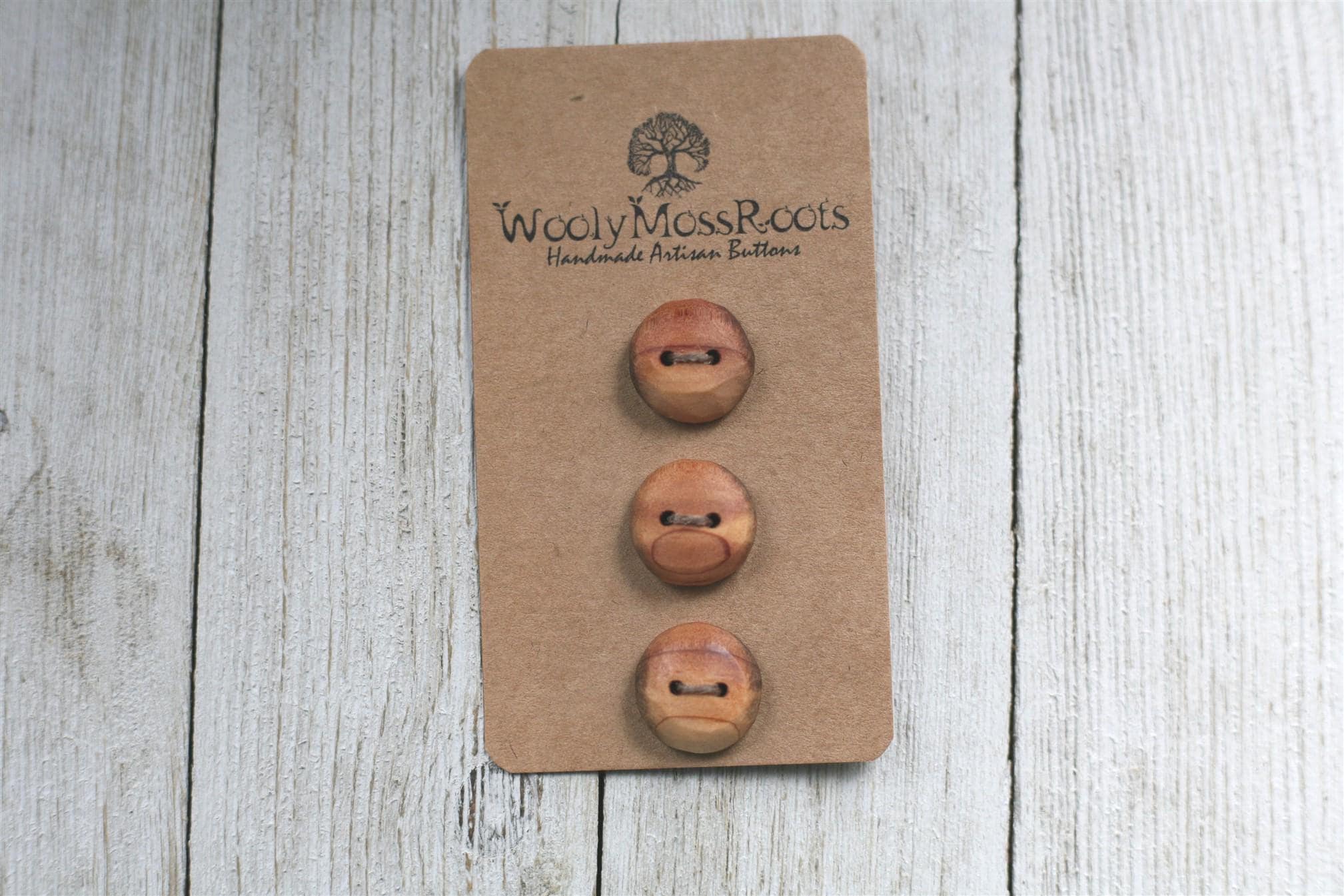 *Our Rustic Wood Buttons are a line of buttons that are not sanded on as many grits (or shaped) as our buttons usually are, and also do not have the same finish. We are glad to offer a broader price range and a greater variety of button options.