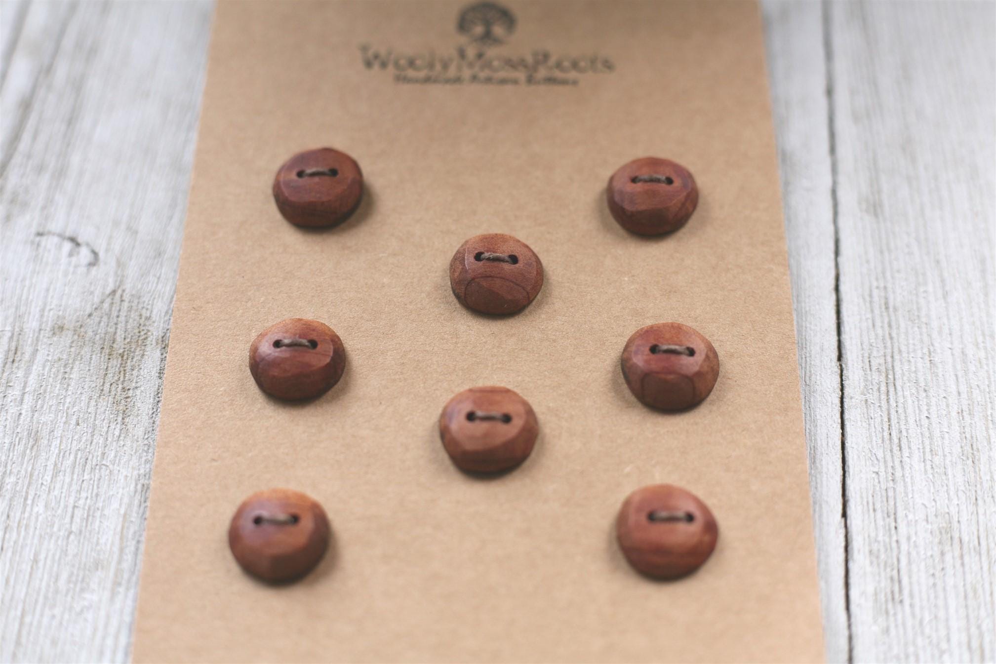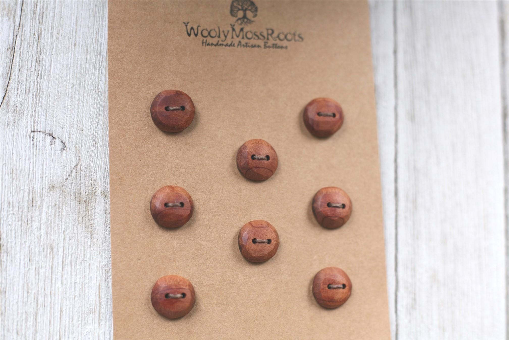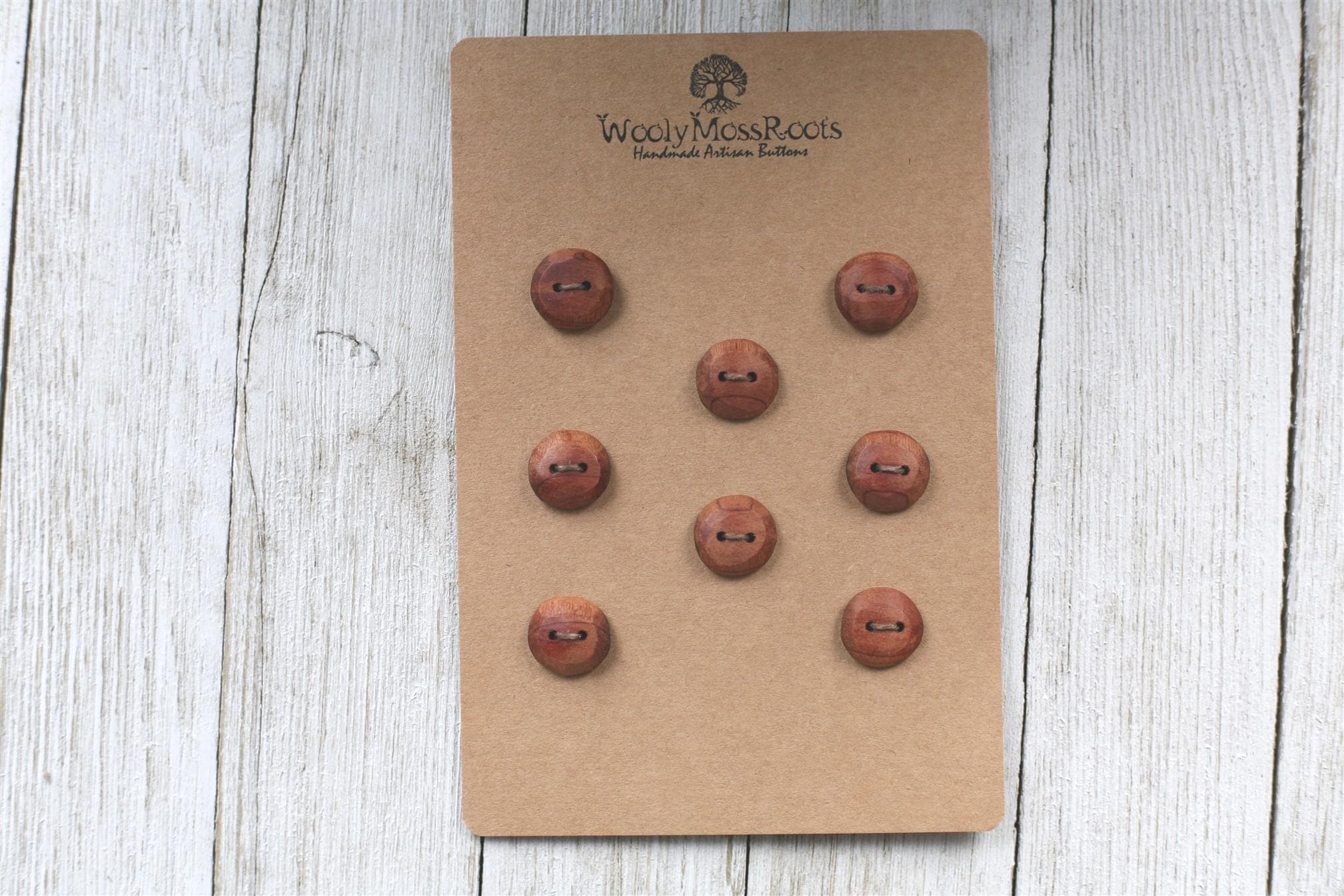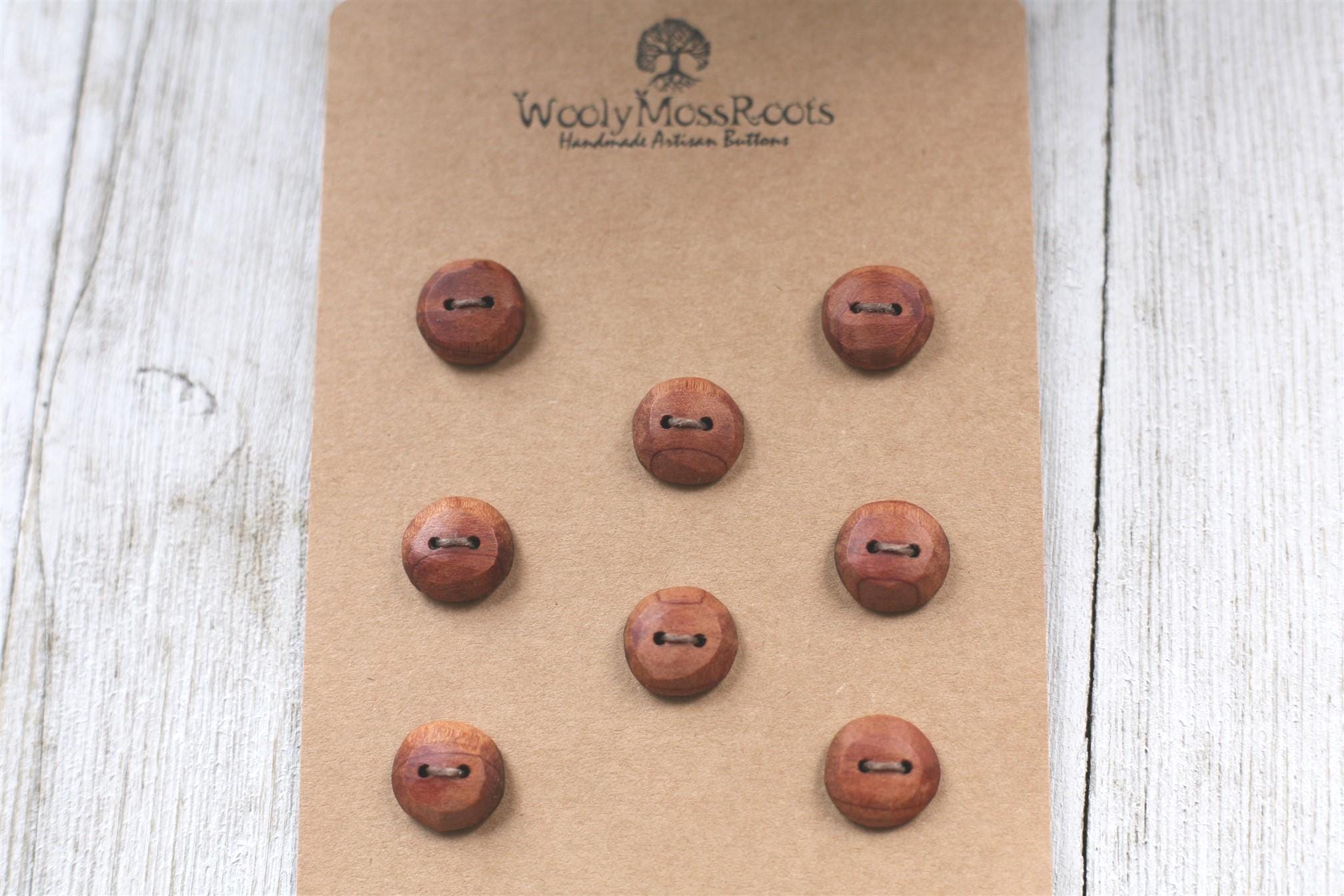These wooden buttons were created by my husband Jeff in red cedar wood. Red cedar is so beautiful with it's rosy hue.