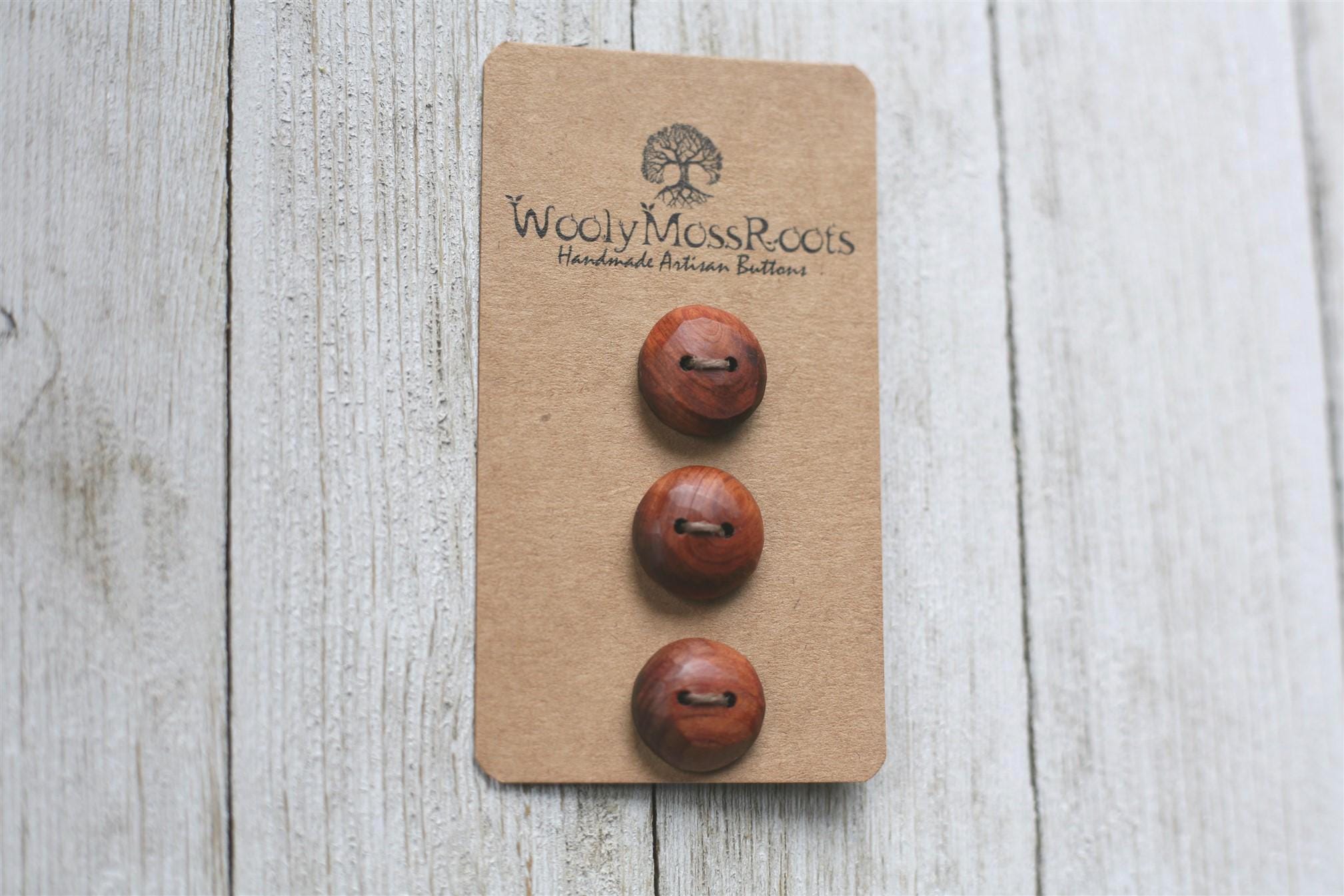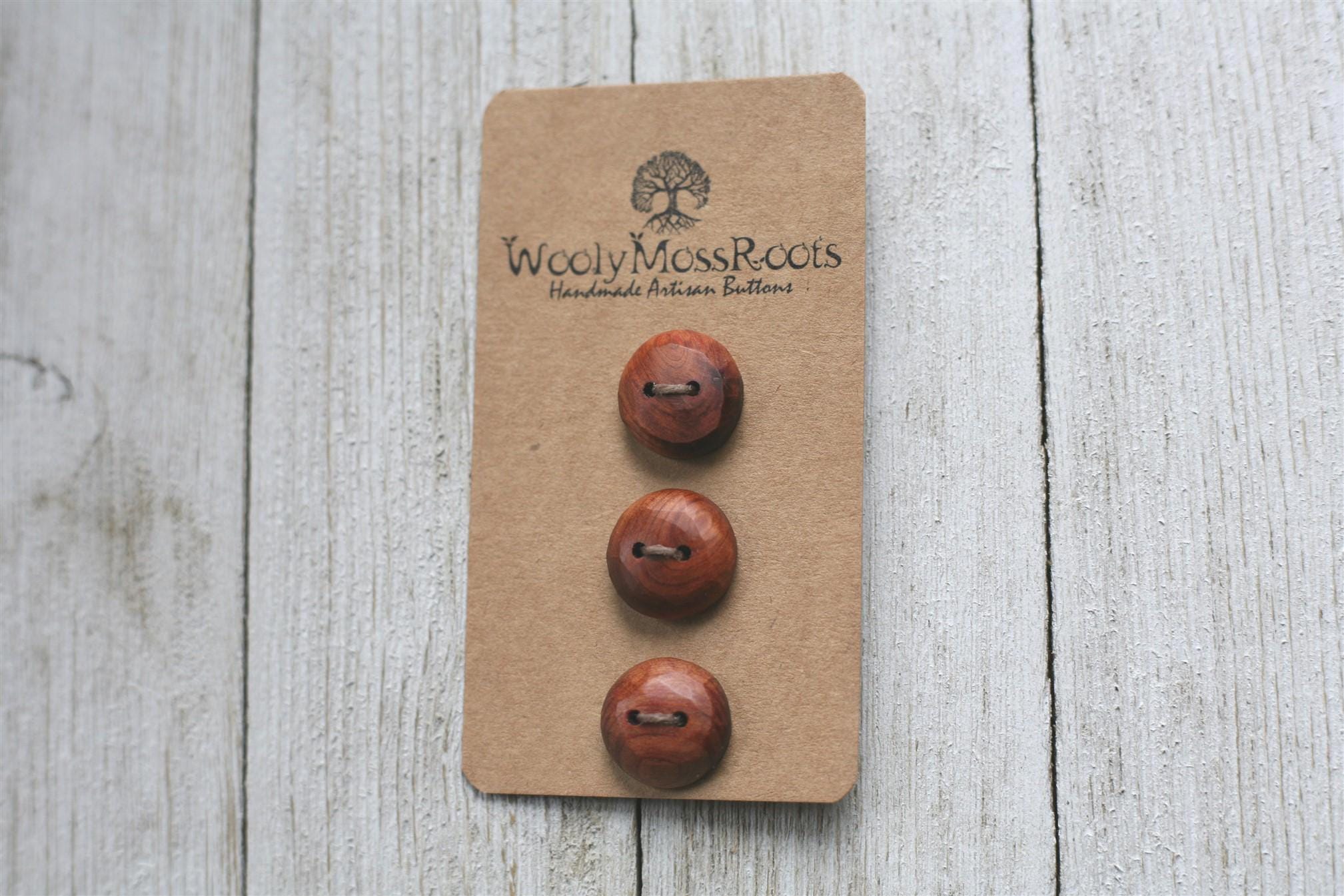 These wooden buttons were created by my husband Jeff in red cedar wood. Red cedar is so beautiful with it's rosy hue.