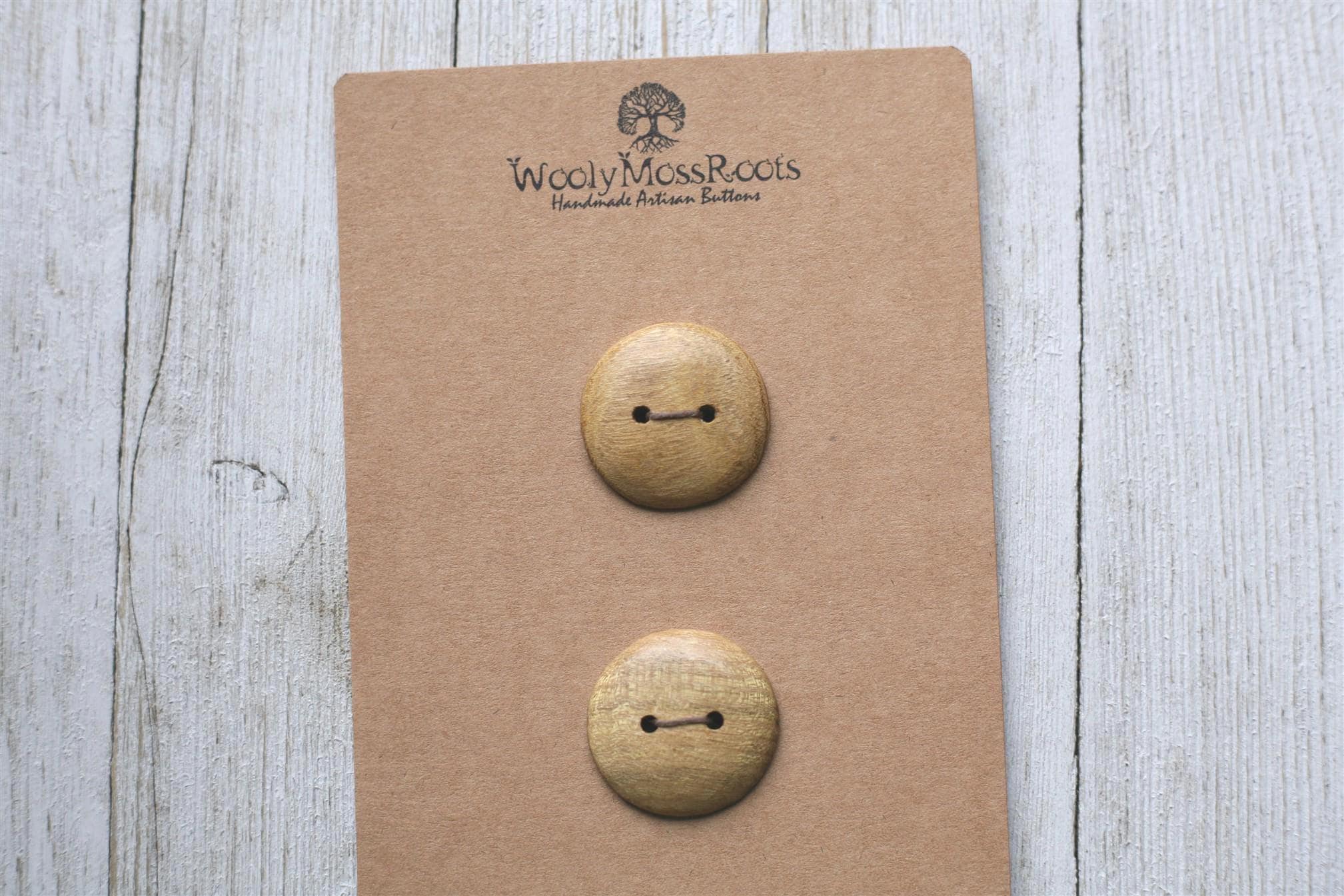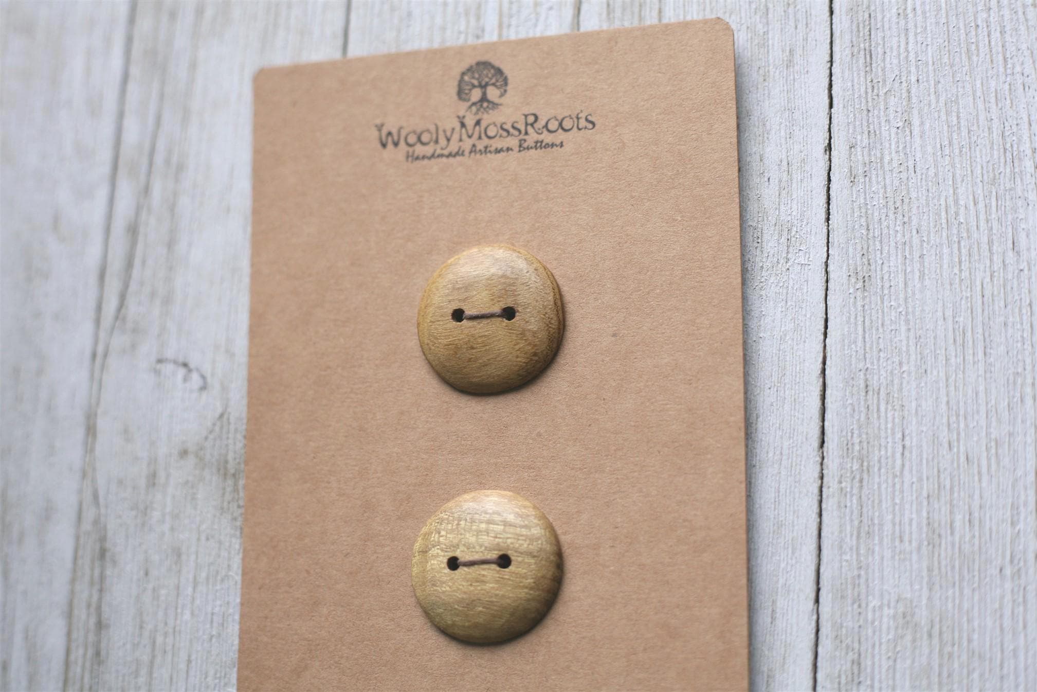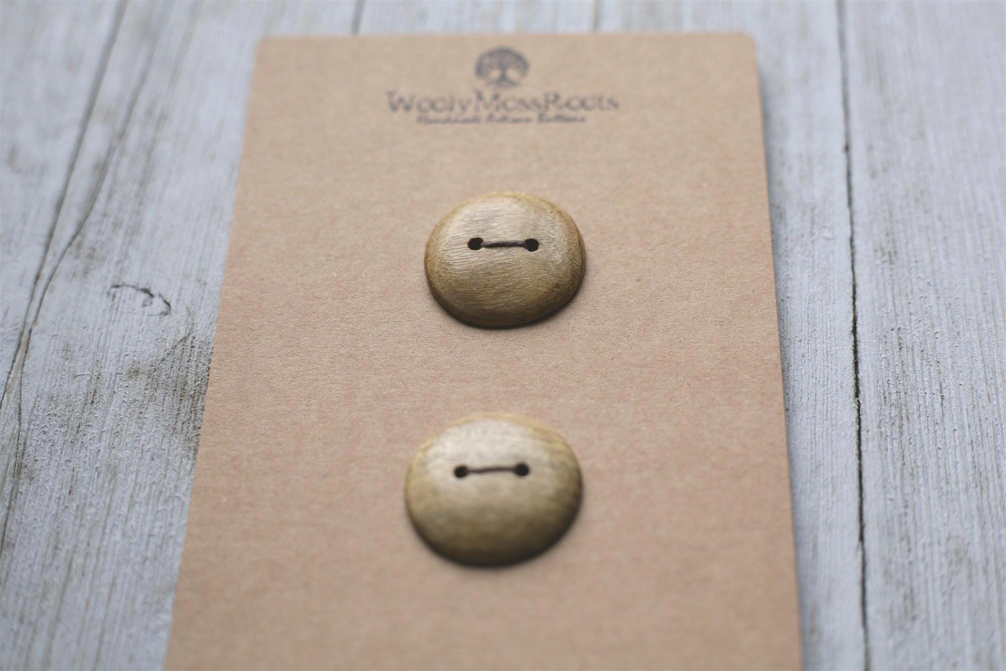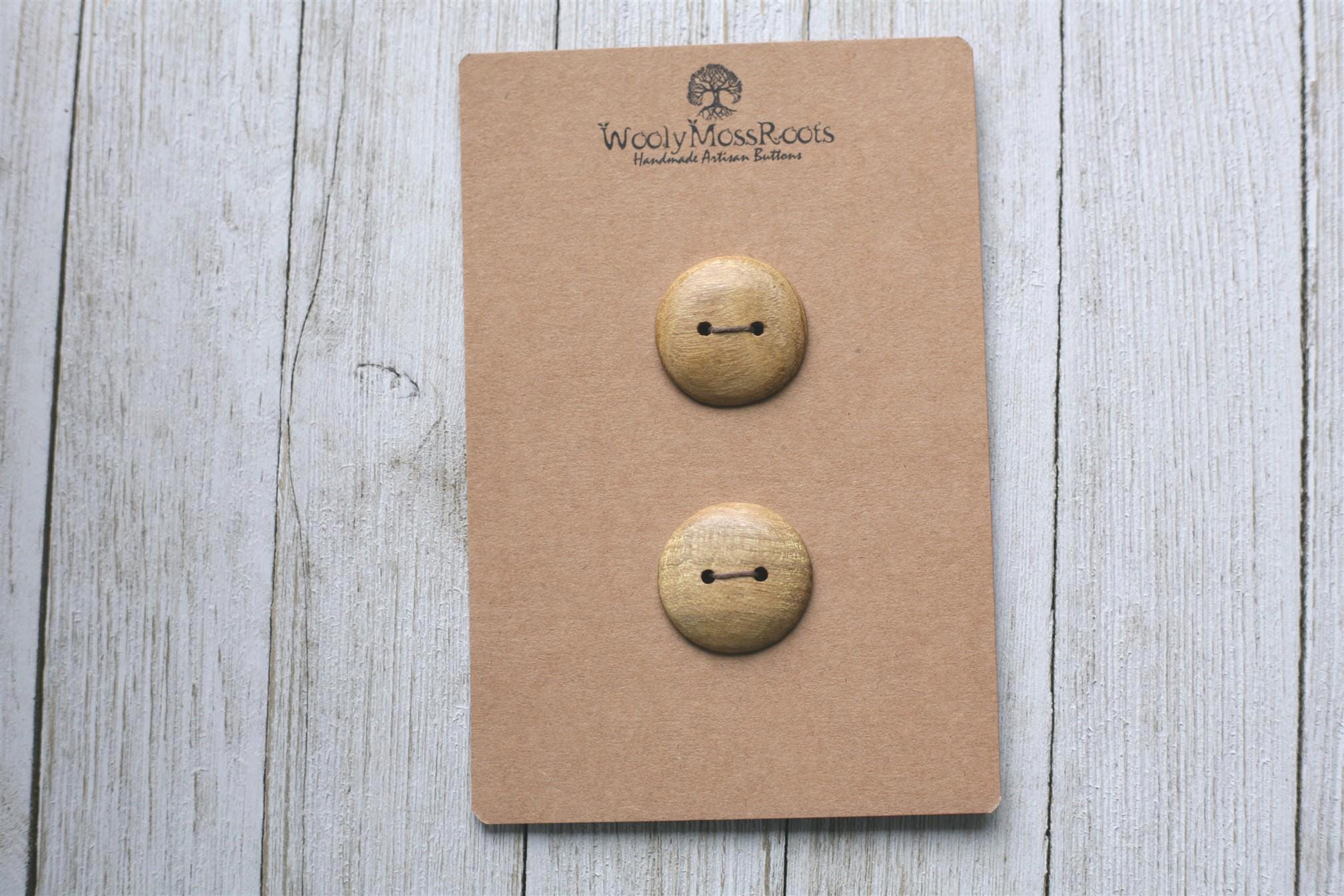 These handmade wooden buttons were created by my husband Jeff in osage orange wood. This wood is naturally this beautiful yellow color! Osage orange wood is often used for natural dyeing.