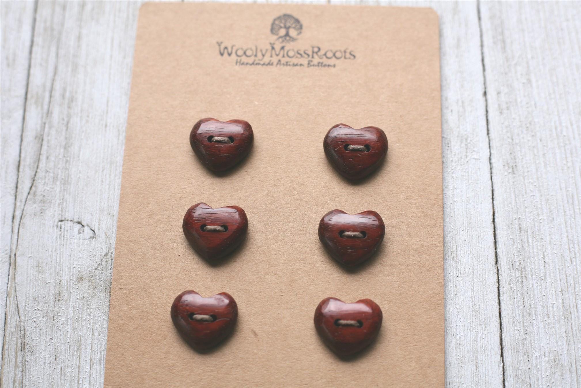 Our carved heart buttons are some of our most beloved buttons. They are so sweet, and make such a heartfelt addition to projects.