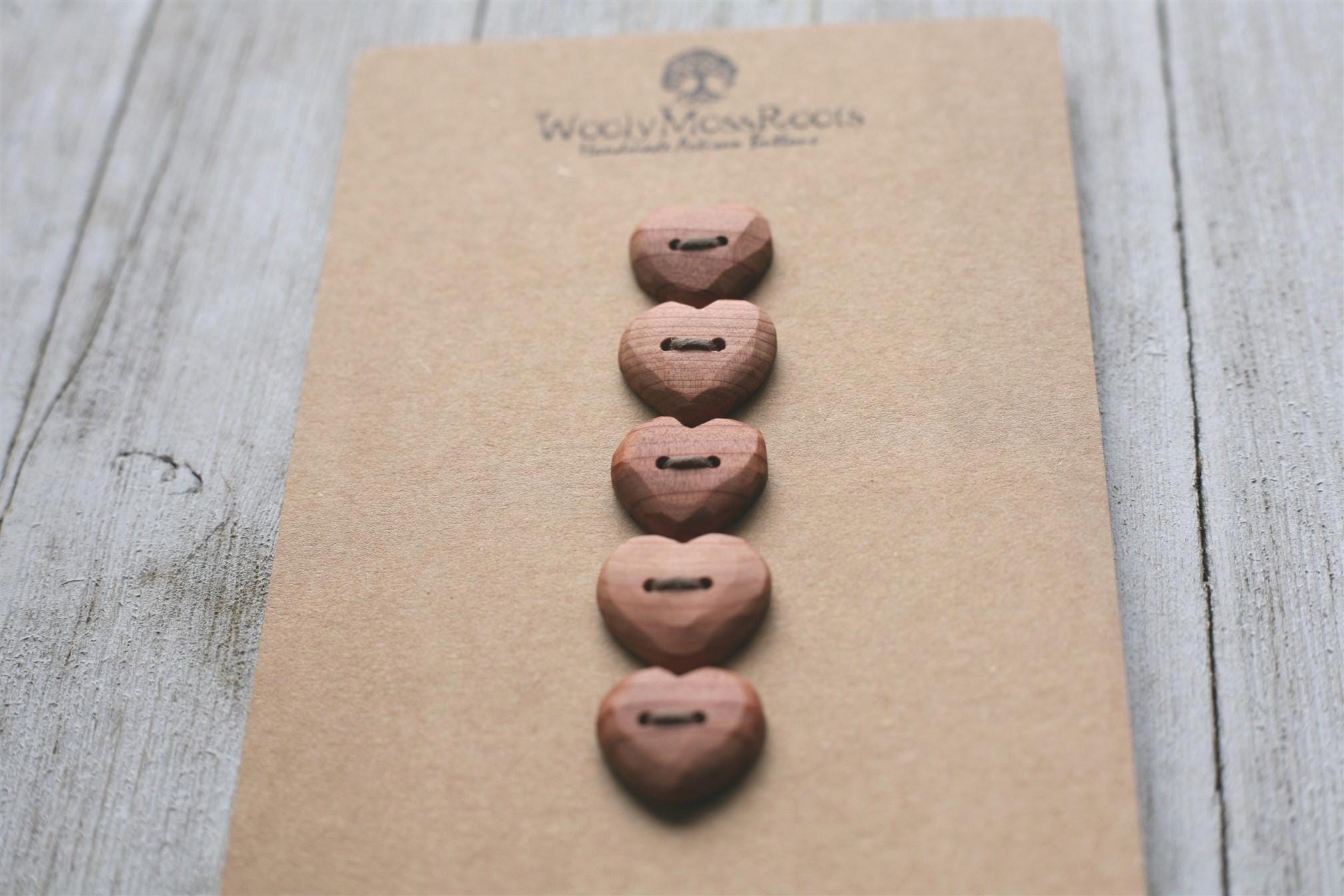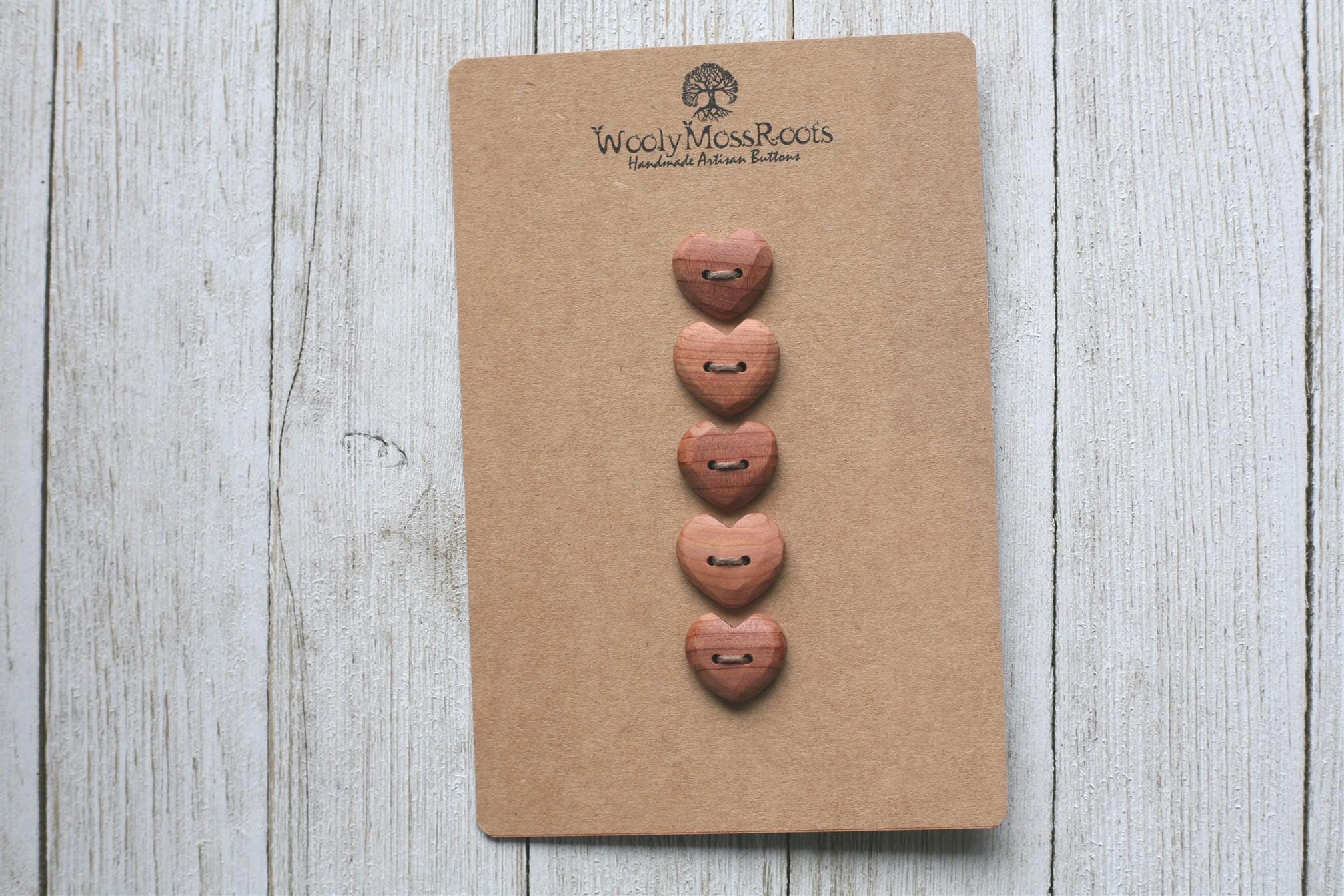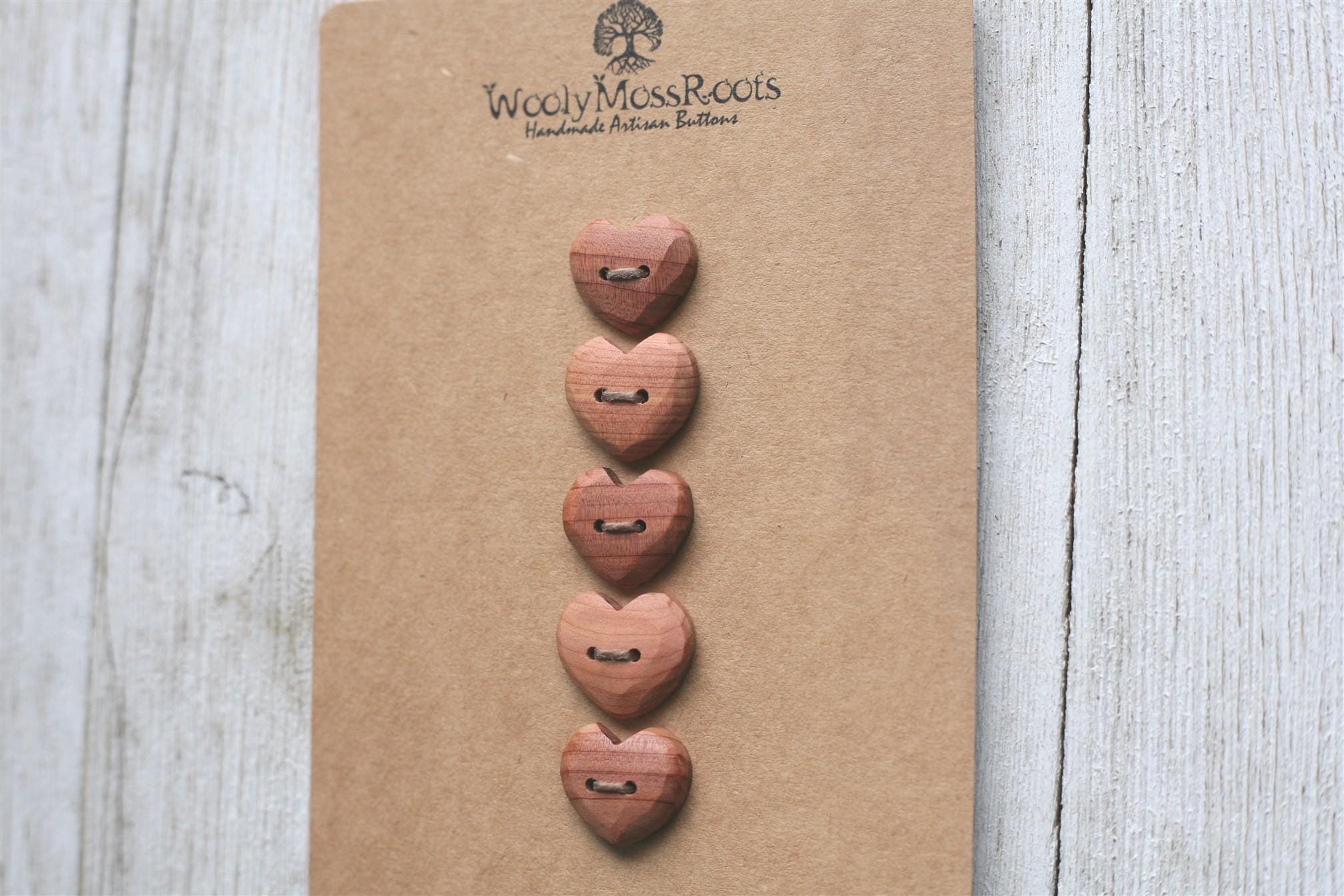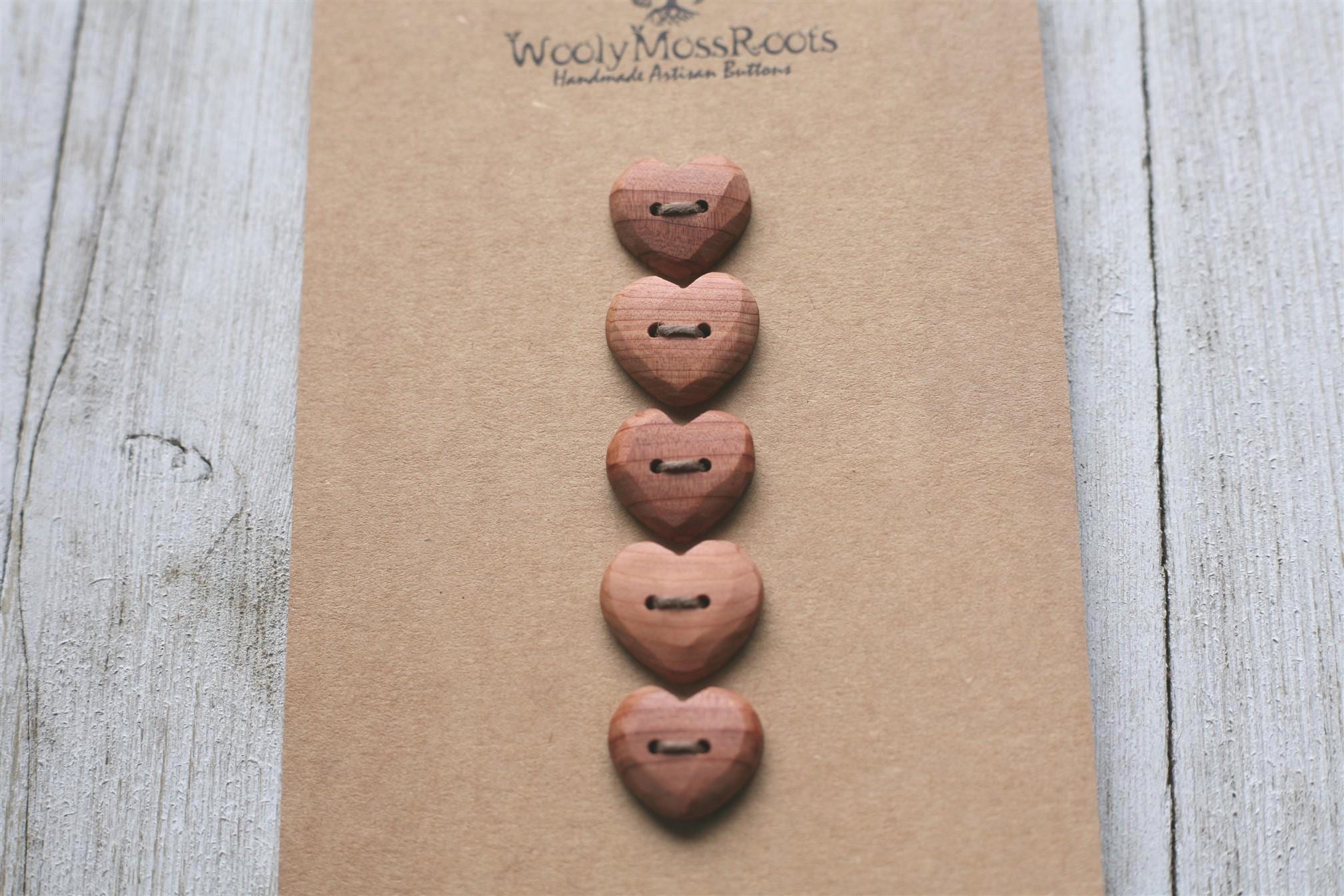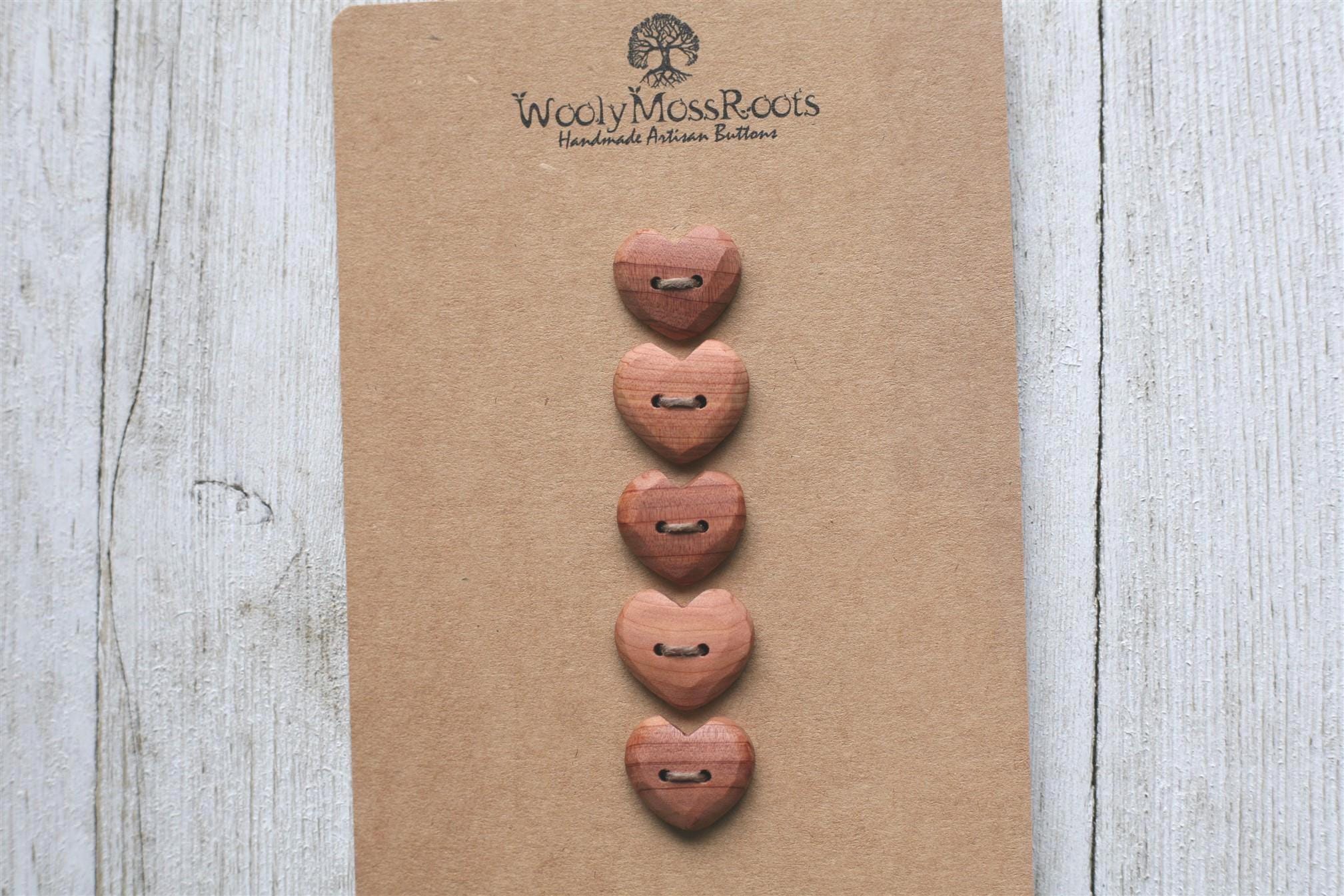 Our carved heart buttons are some of our most beloved buttons. They are so sweet, and make such a heartfelt addition to projects. The hearts take more time to create with that shape, but the results are so worth it. Sanded smooth, you'll love the way they feel.