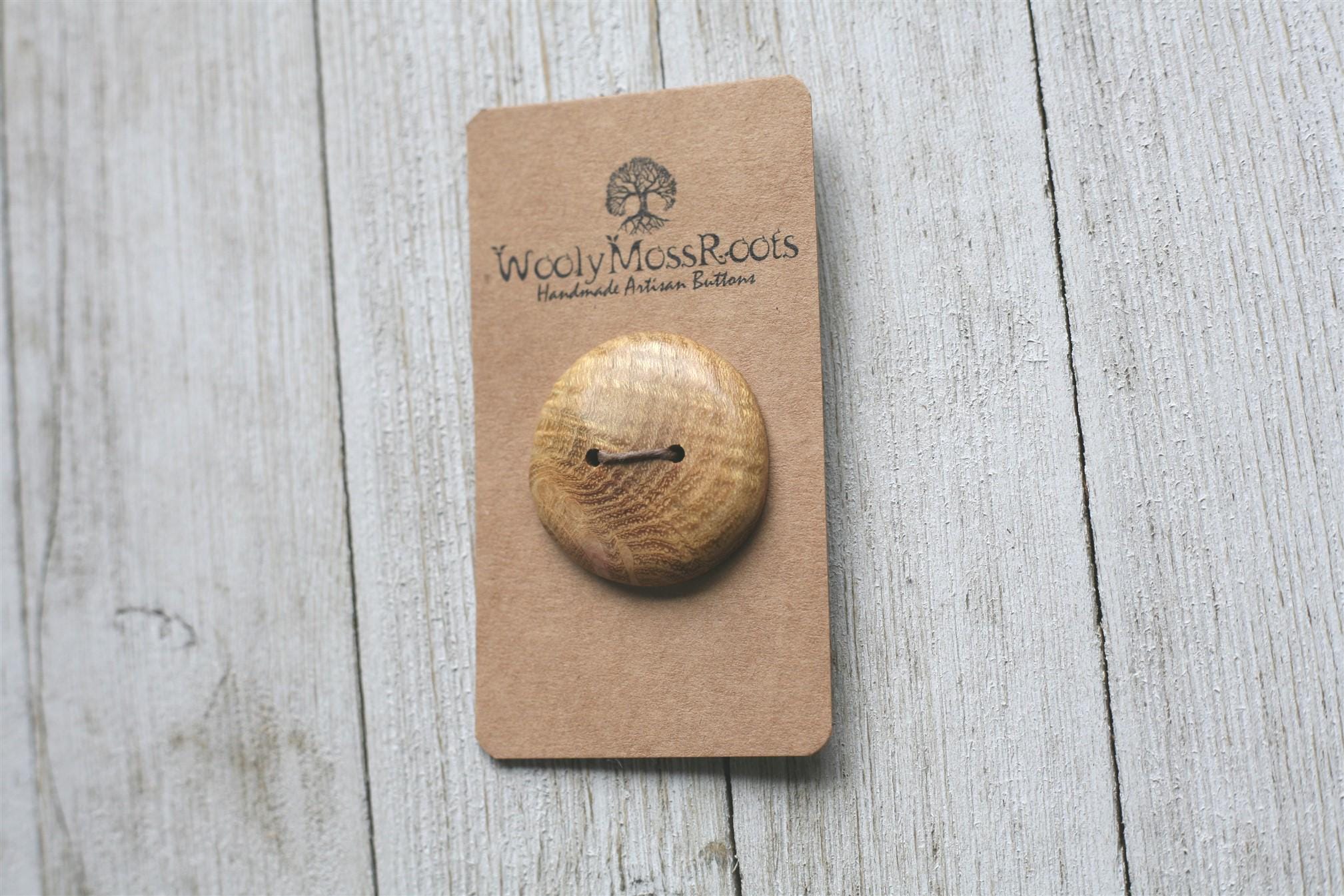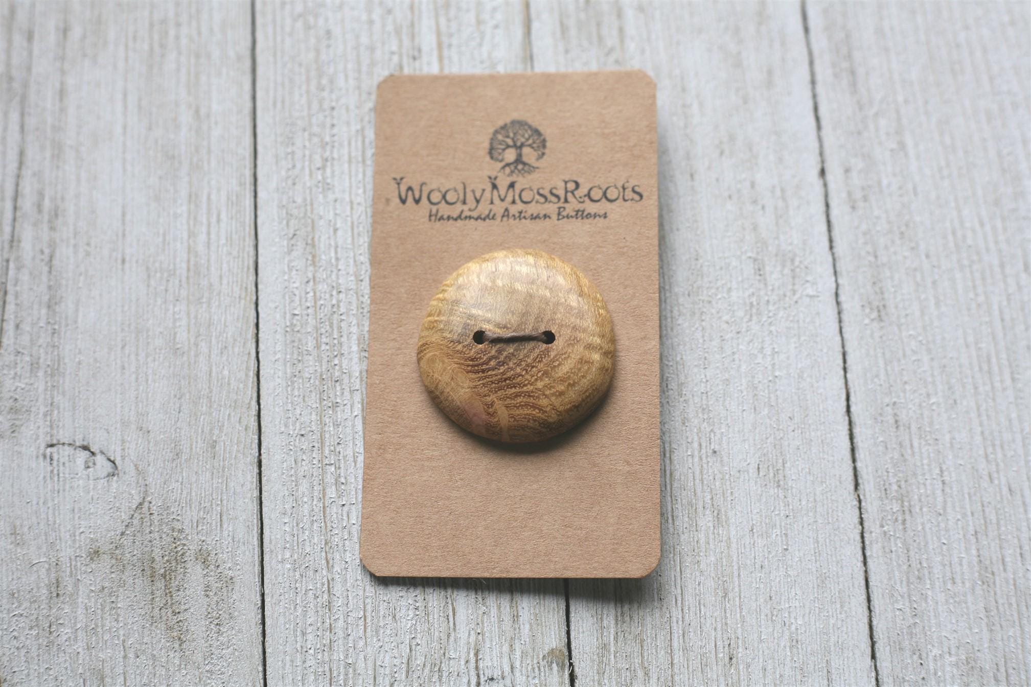 Beautiful wood + lots of sanding + natural oil finish + polishing on the buffing wheel + a whole lotta love = some gorgeous buttons for your special projects. Created with the intention to spread JOY!