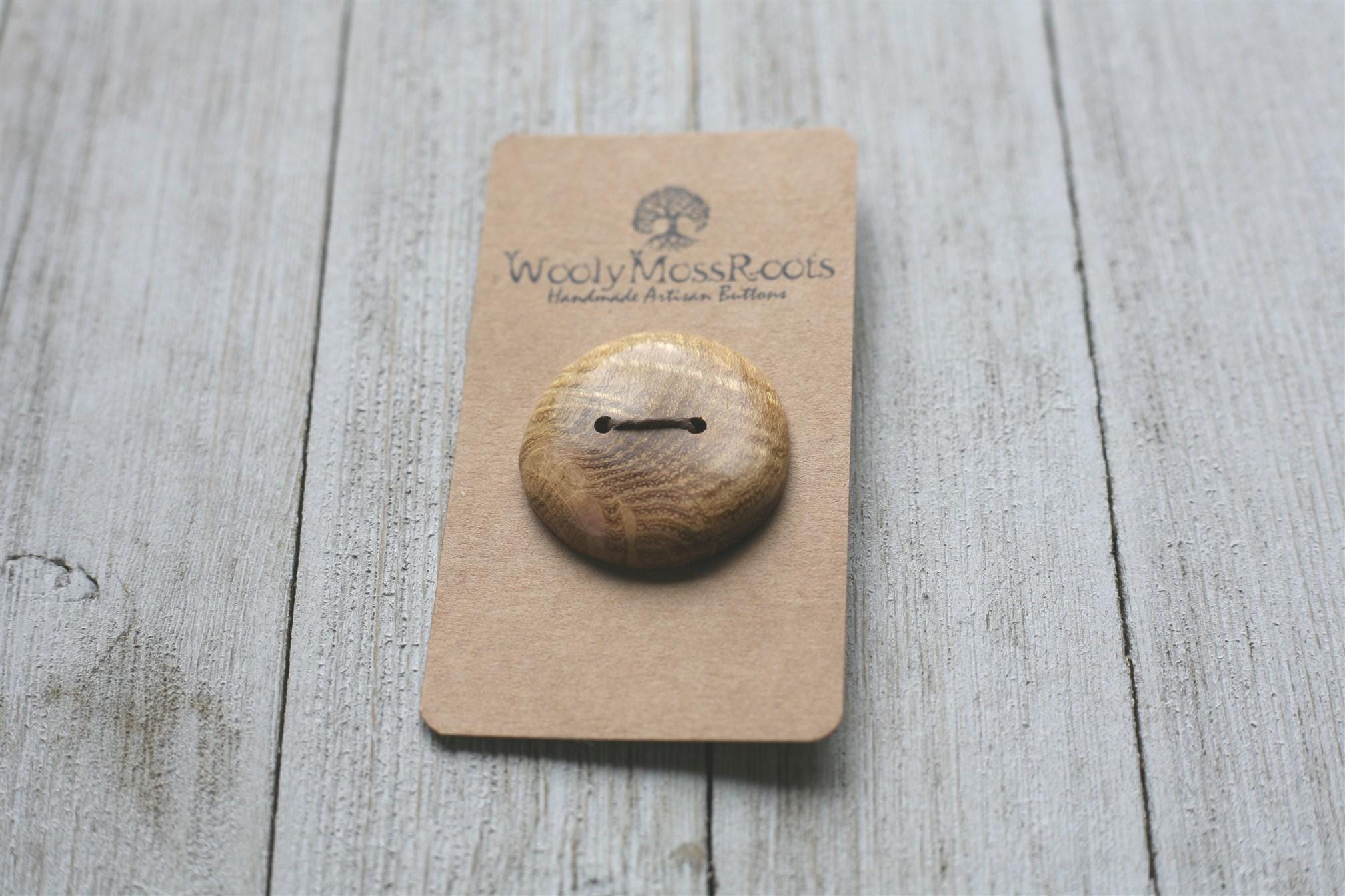 This wood is really something special, it has a glow to it, the wood looks luminescent when you tilt it in the light. And the grain design in this particular button is really stunning.