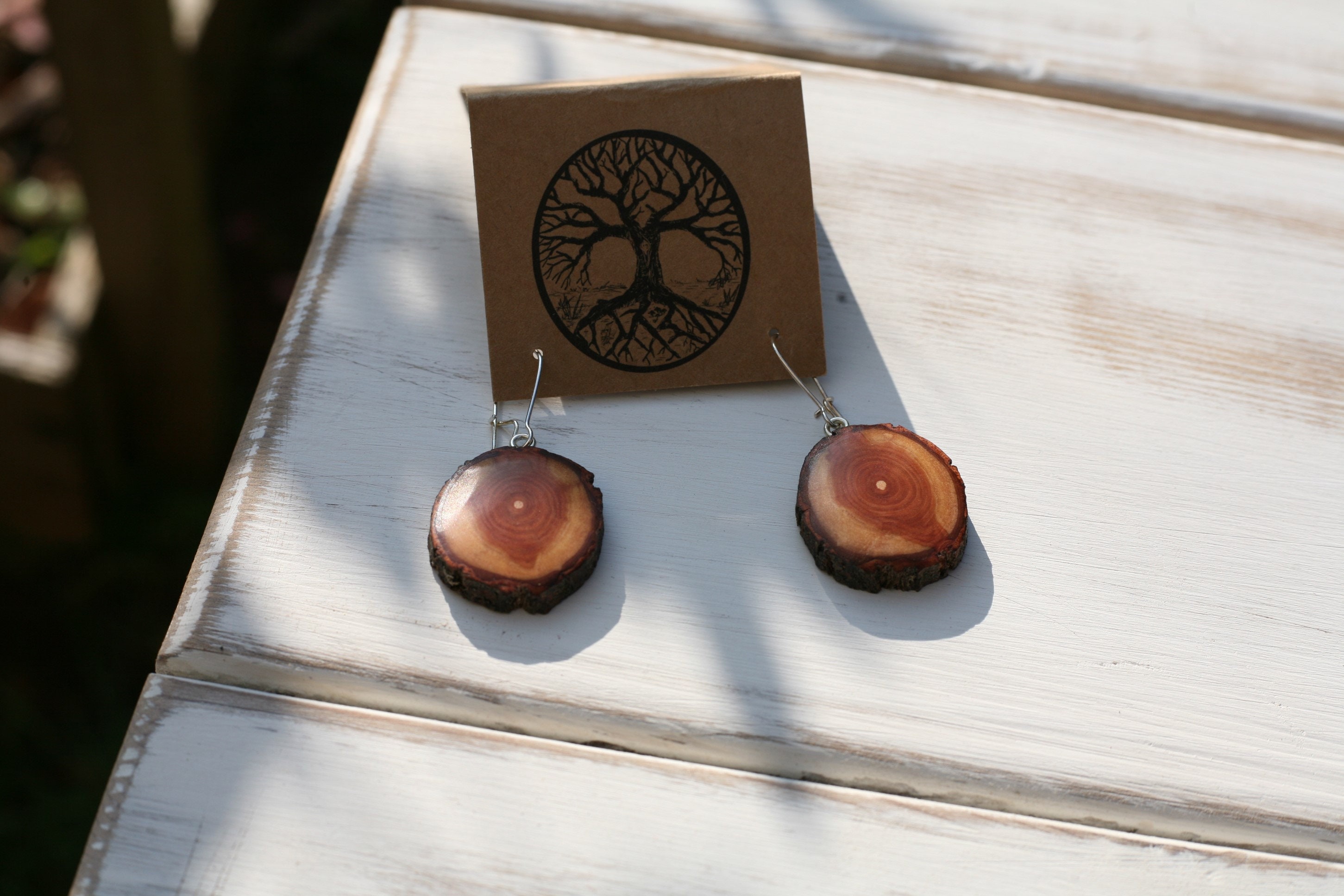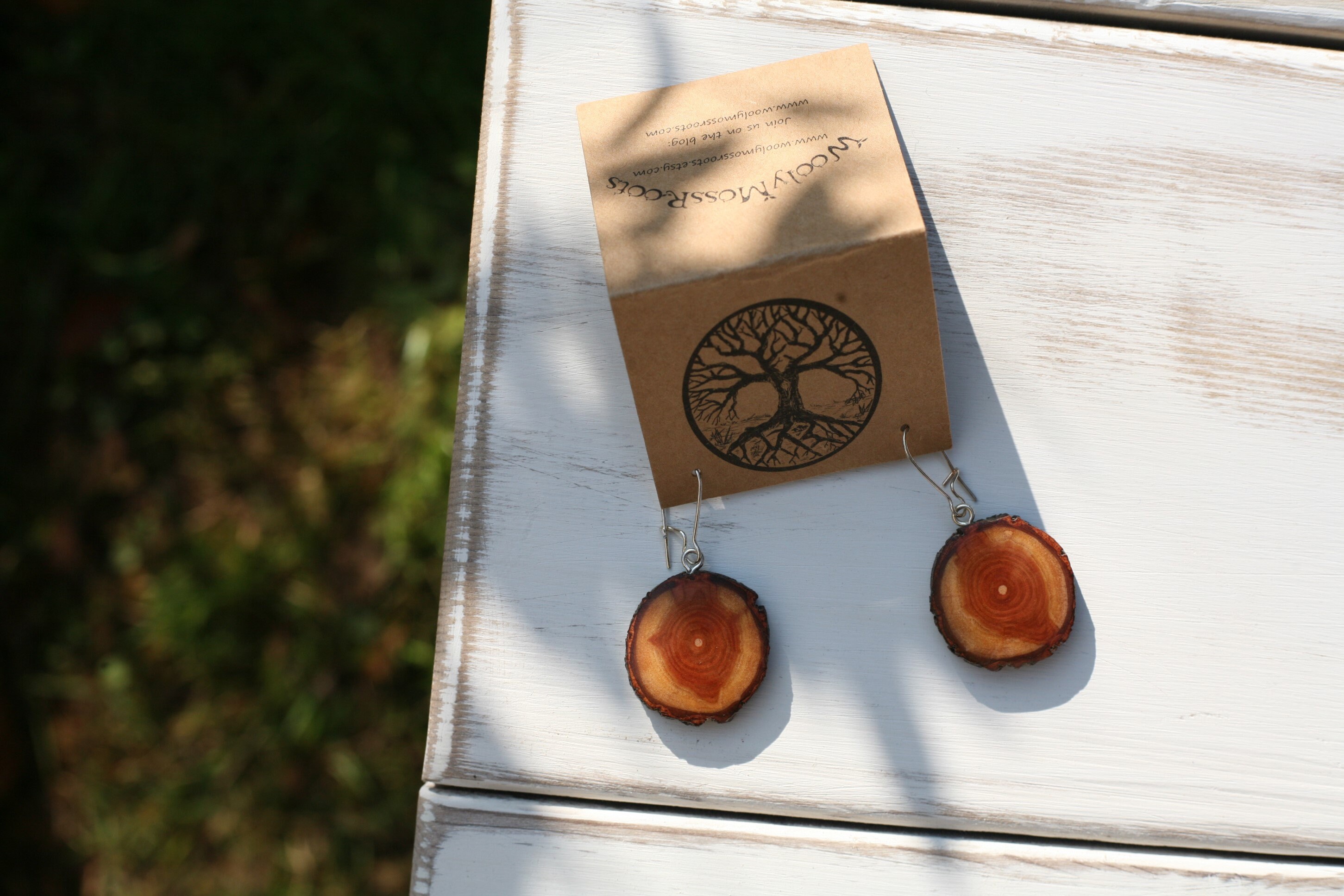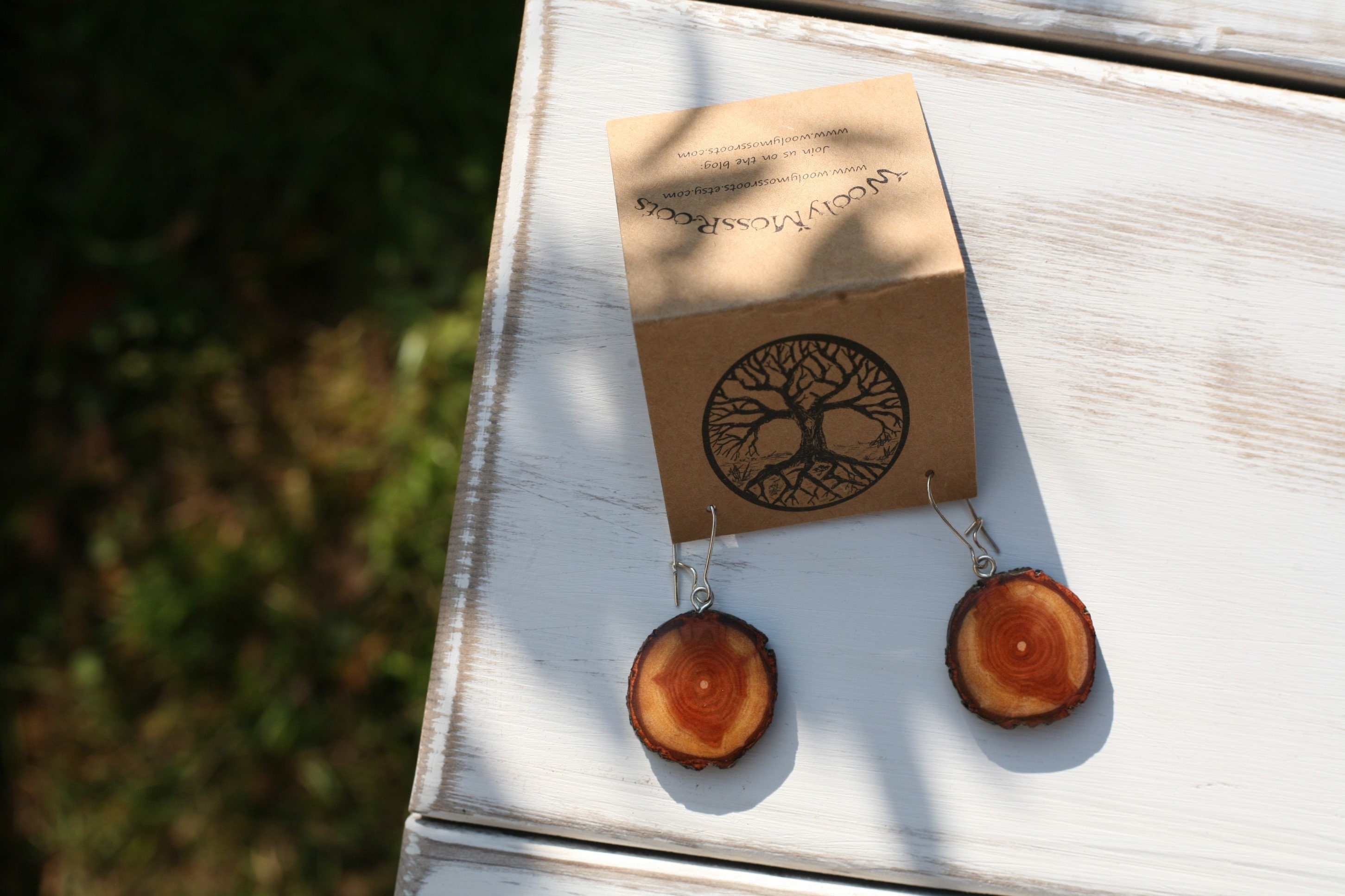 Beautiful wood + lots of sanding + natural oil finish + polishing on the buffing wheel + a whole lotta love = some gorgeous and unique jewelry for you to enjoy. With so many fun designs and variations to choose from, we hope you'll find something you'll love!