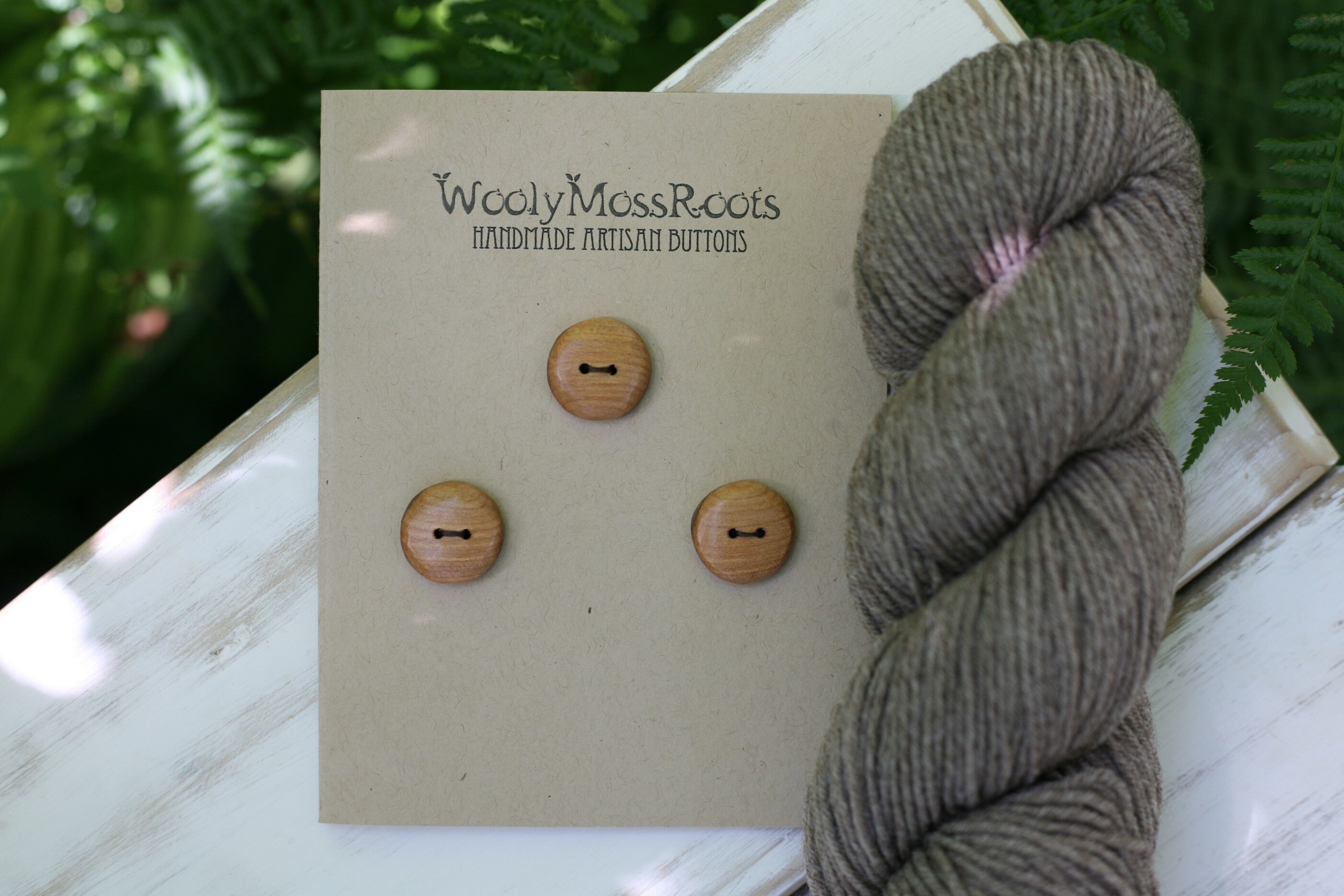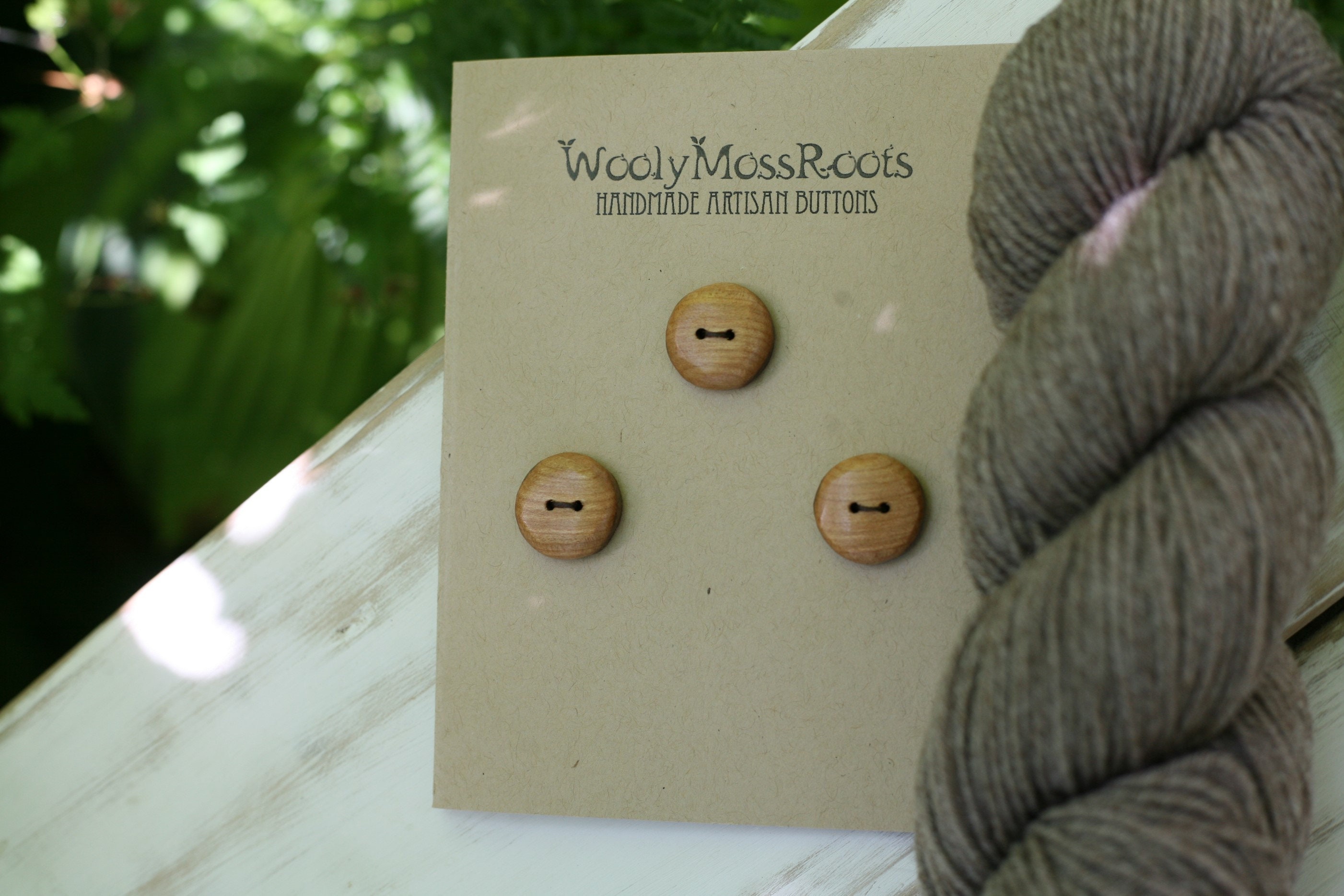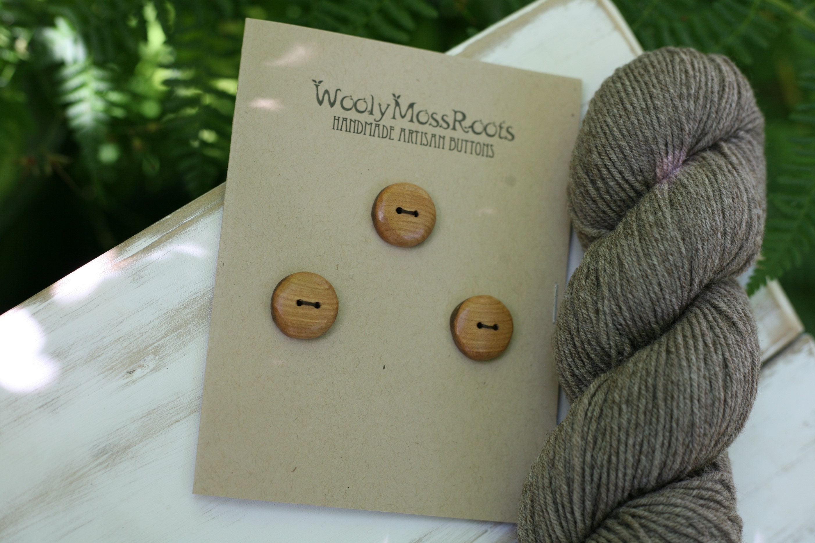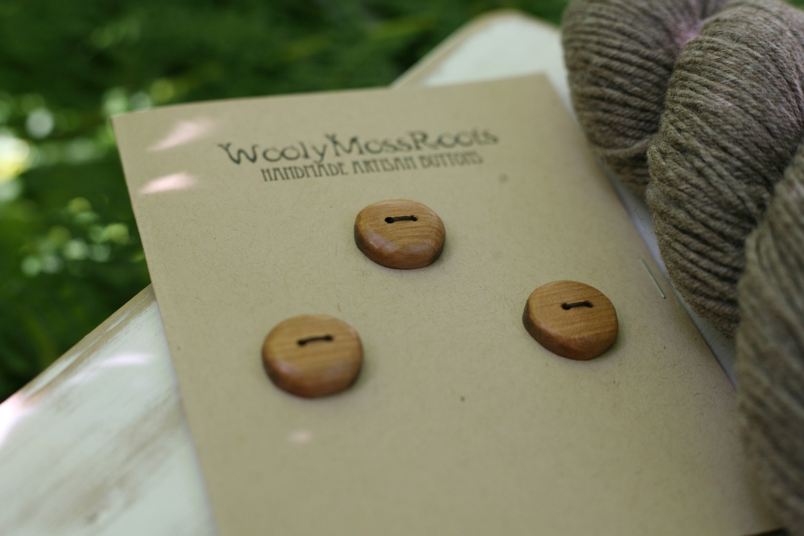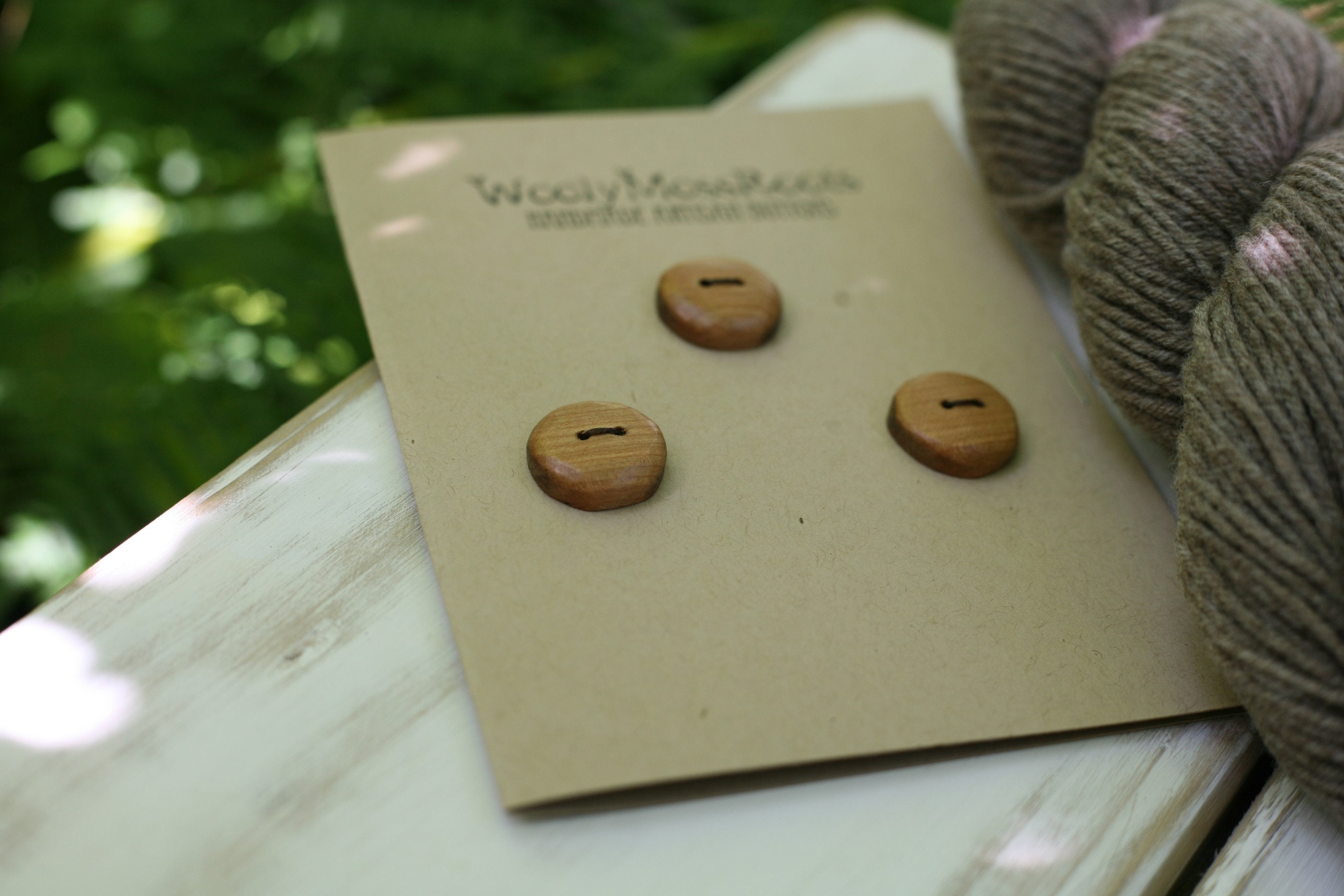 These wooden buttons were created by my husband Jeff in cherry wood. I love the warm hue of this wood. With all the sanding and polishing he does to bring out the beauty of the wood, these buttons are so smooth, you'll love the way they feel. He even sanded them smooth around the edges. The sanding and polishing also makes the wood glow. Pictured with grey yarn, these buttons would pair nicely with many different colors.